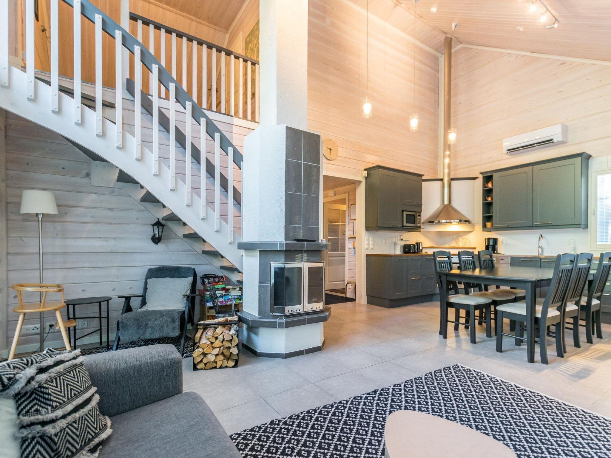 Classy and modern log cabin on a good spot in the center of Pyhä, close to the services of the whole ski resort, no own car needed. Slopes and skiing tracks are very near by the cabin.