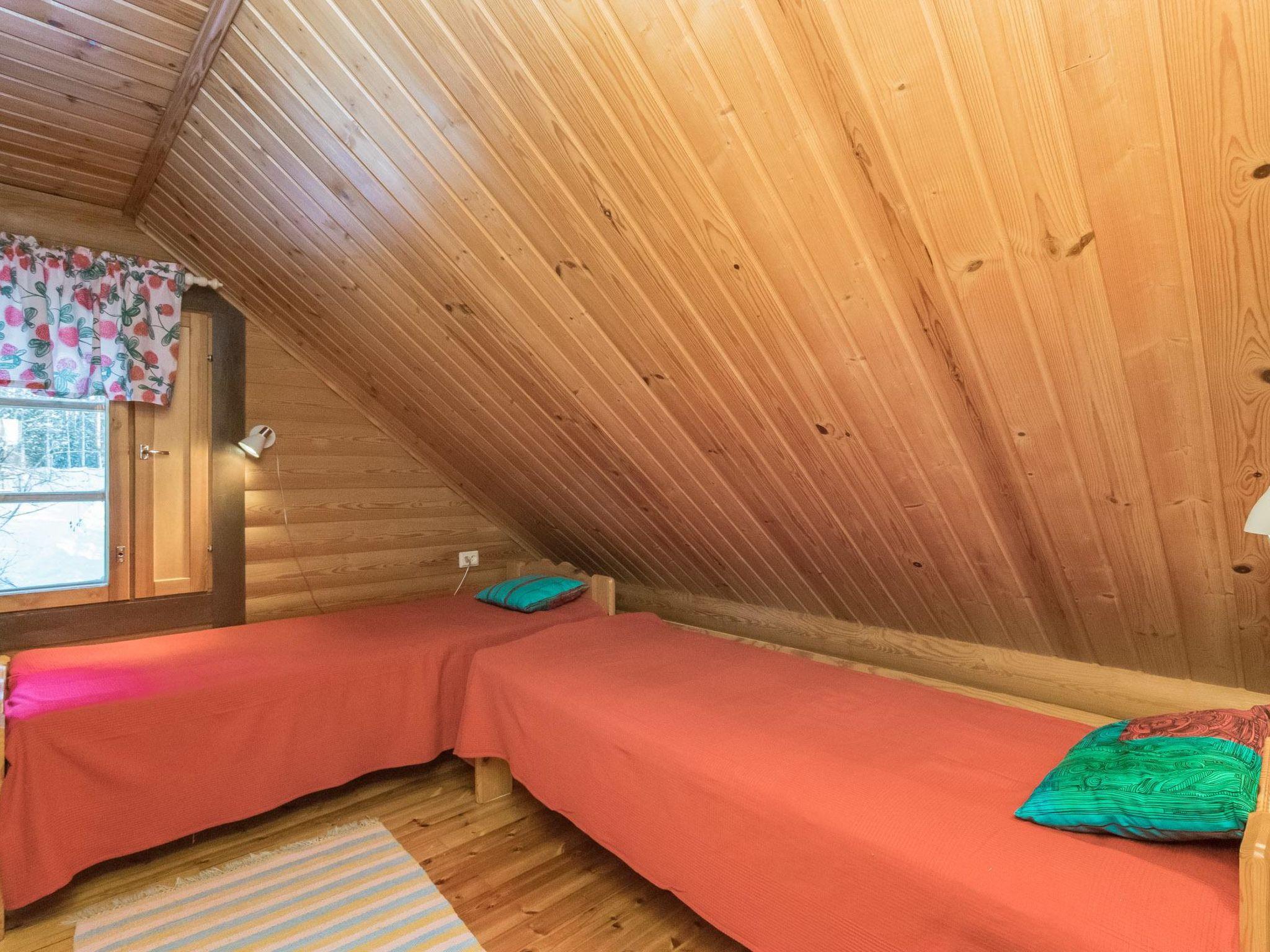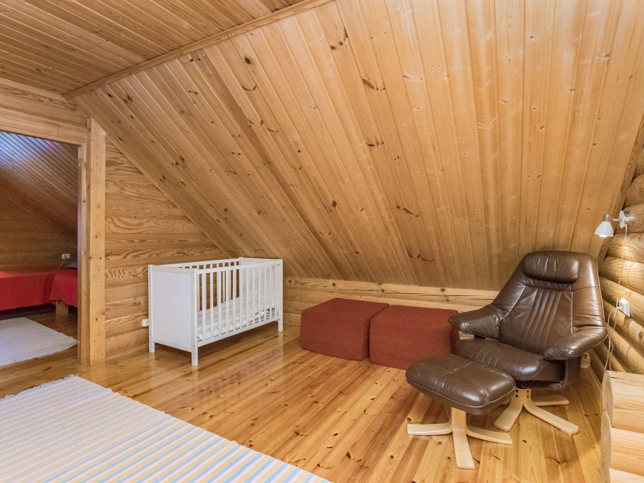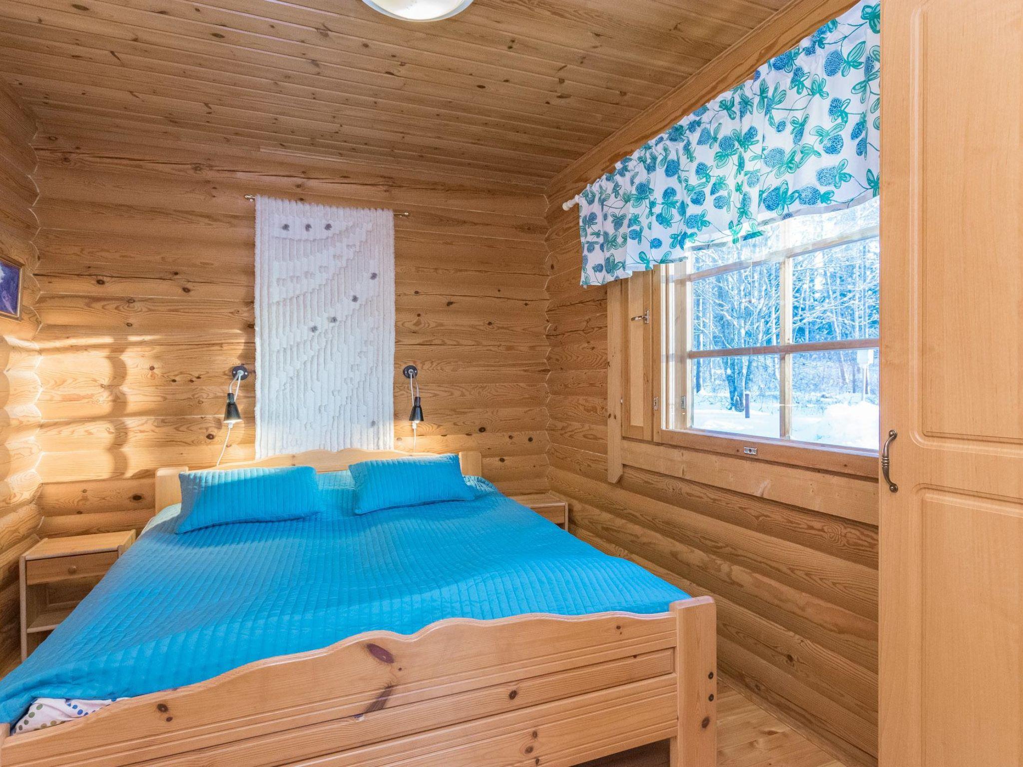 Log cabin 1994, kitchen, living room, bedroom (8.5 m²) with double bed, washroom, WC, sauna (wood-burning sauna stove), on the upper floor bedroom (9.5 m²) with 2 beds, sleeping alcove (6 m²), 2 extra beds in the lobby by using mattresses, balcony. Covered porch.
