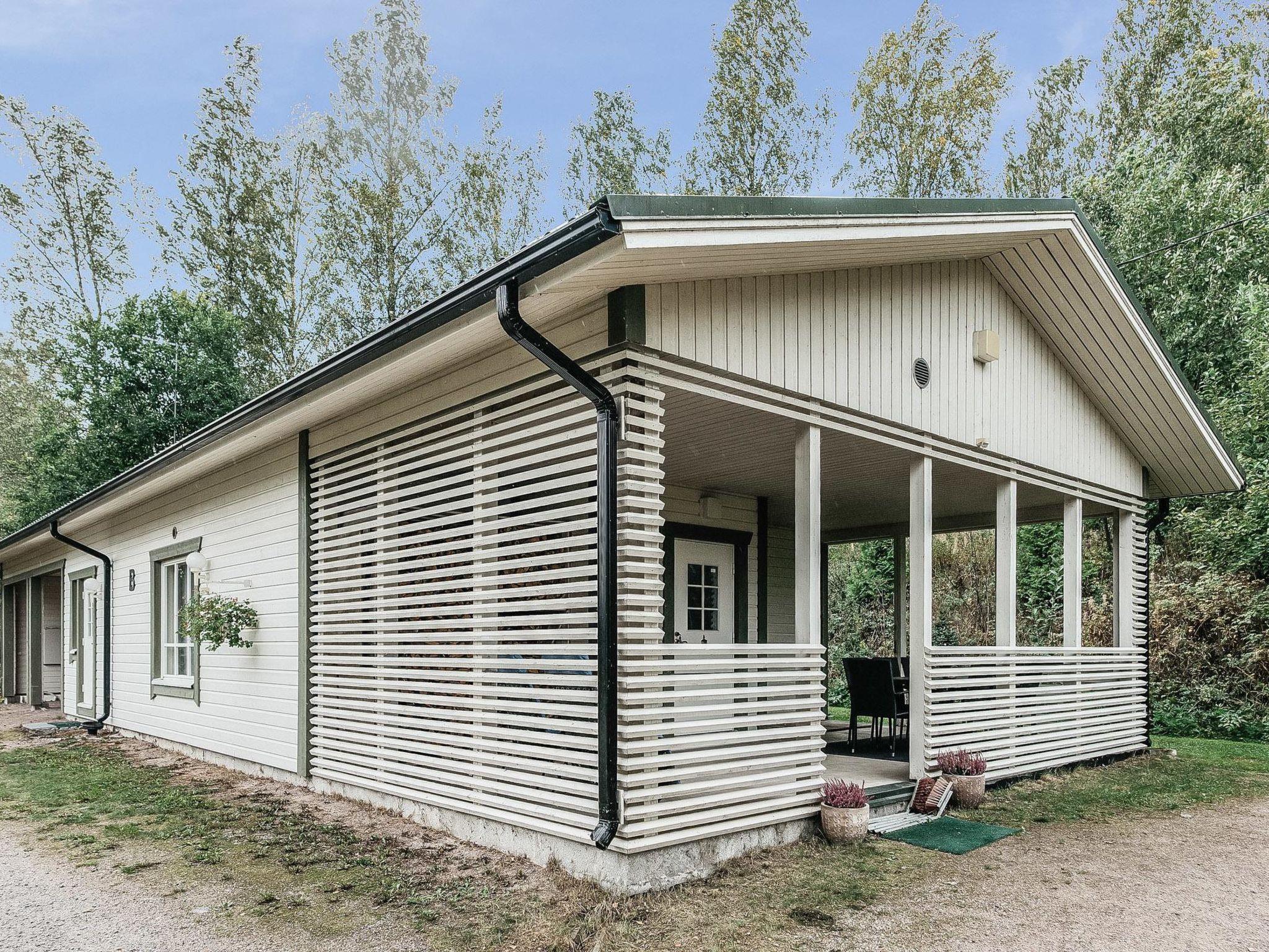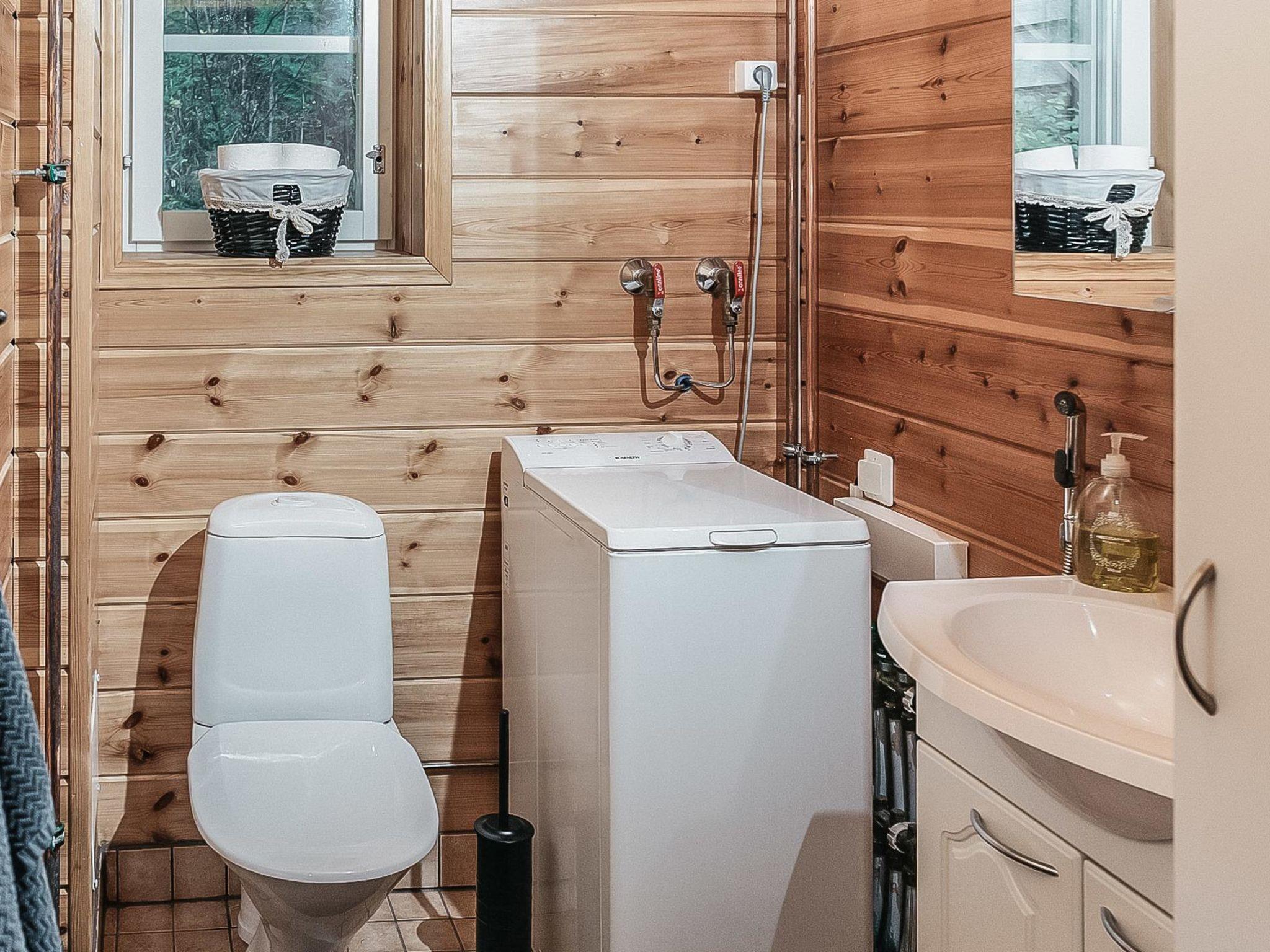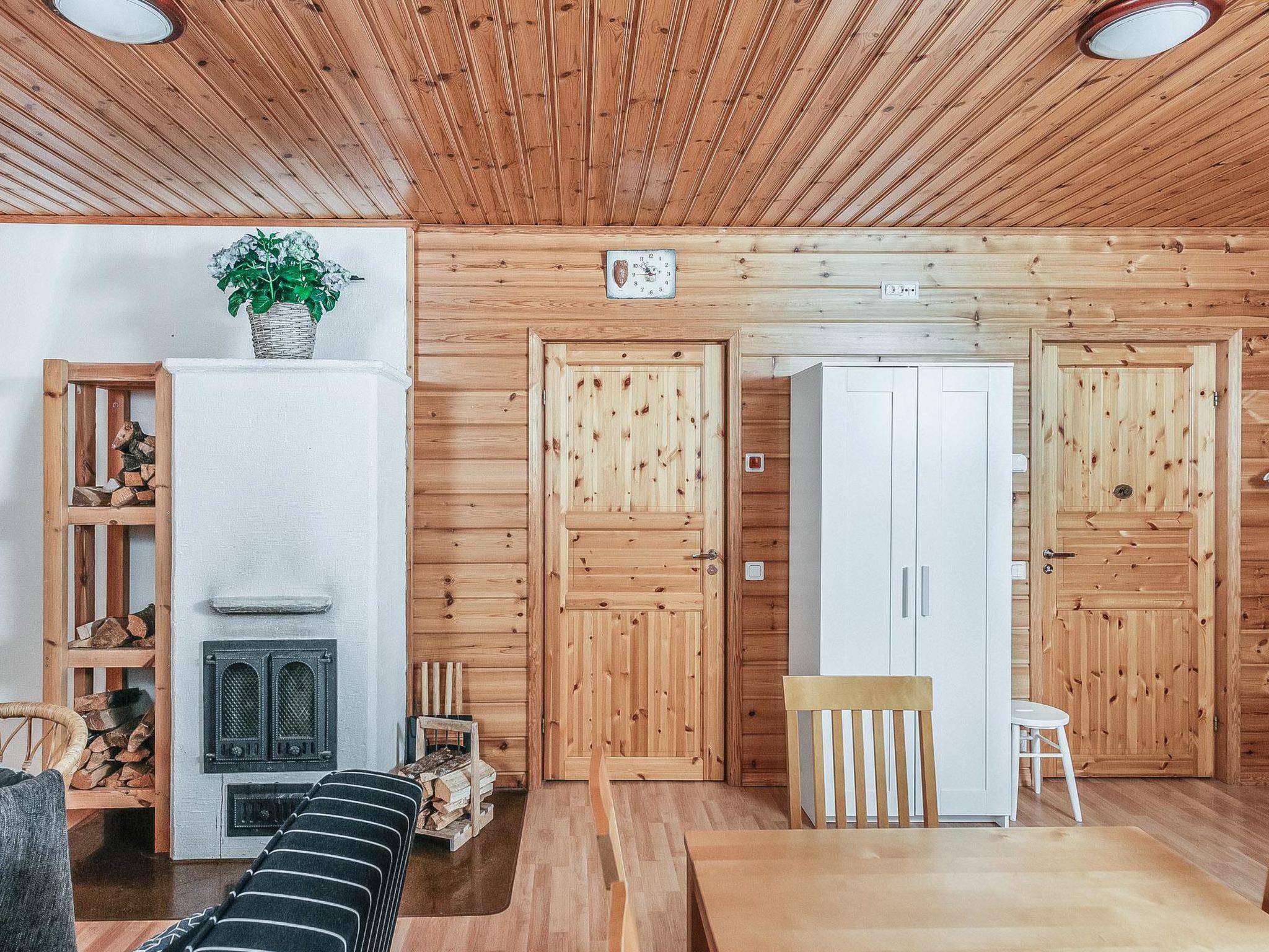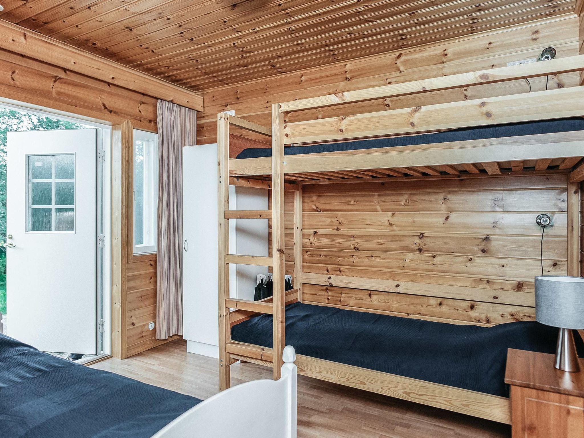Wooden cabin 2006, living room/kitchen with a spreadable sofa (two extra beds), bedroom (10 m²) with two beds, another bedroom (10 m²) with one bed and bunk bed, separate WC, washroom and sauna with electric sauna stove wood burning sauna stove. Covered terrace with dining group for eight. Carport for one car.