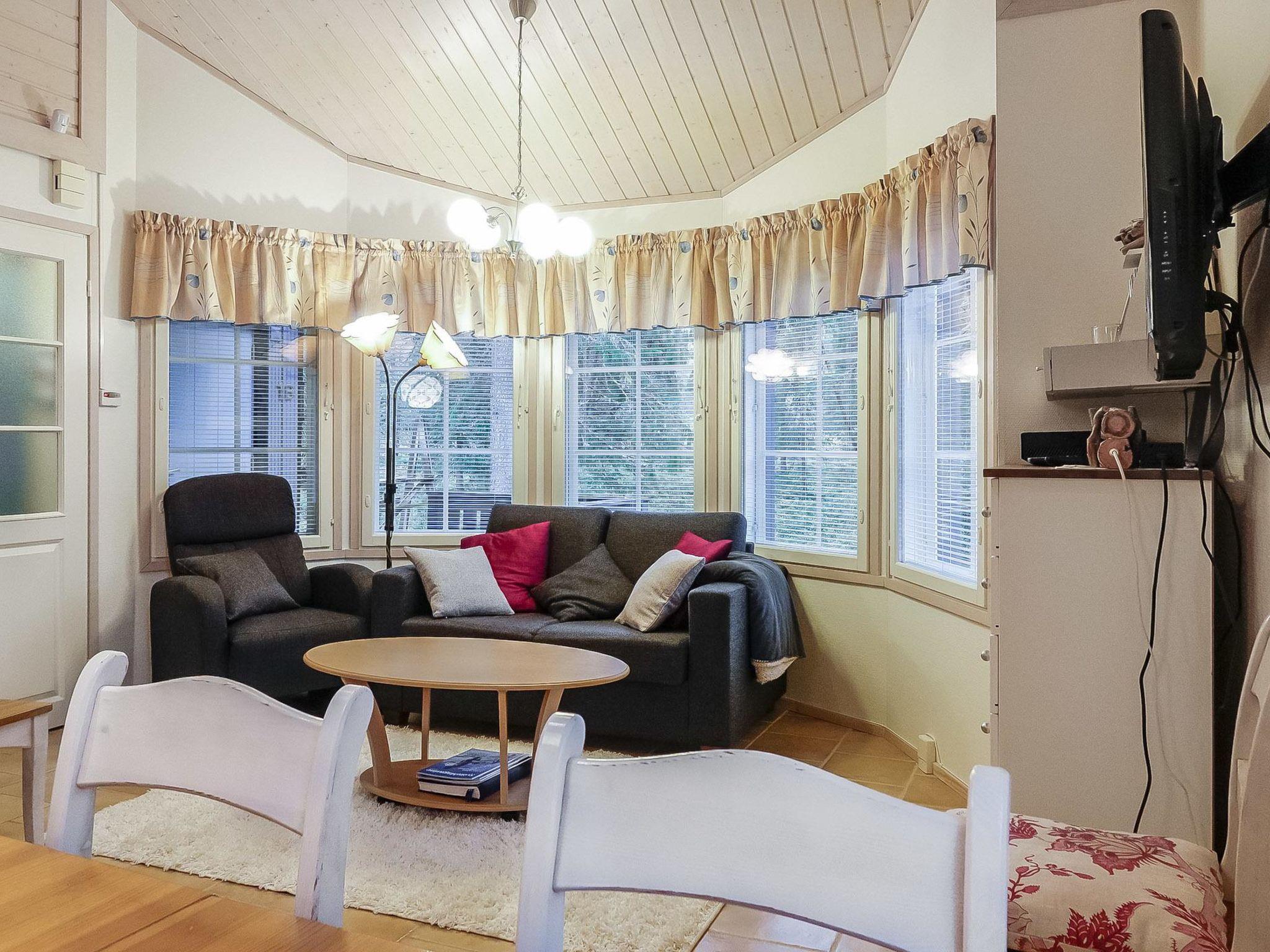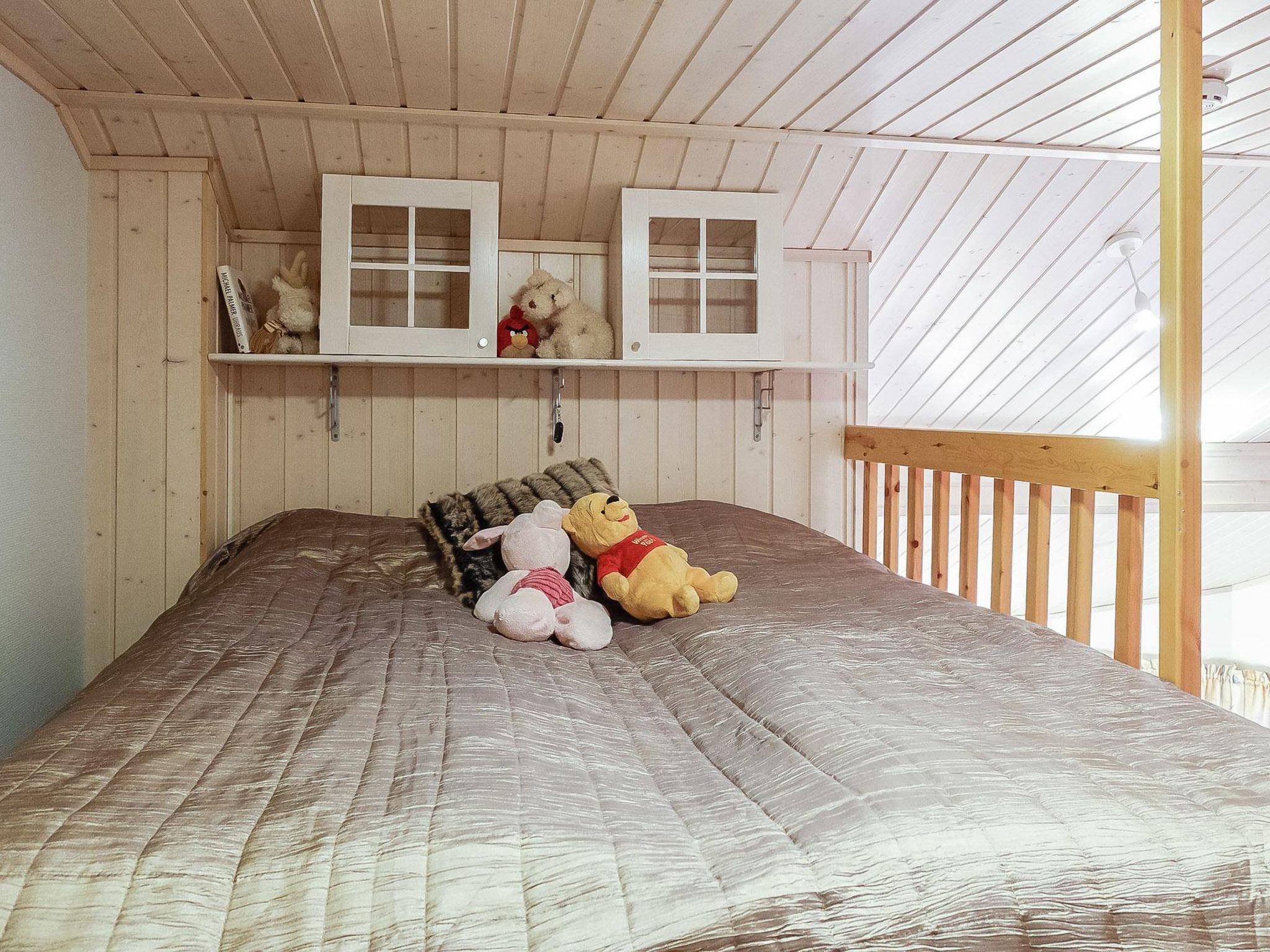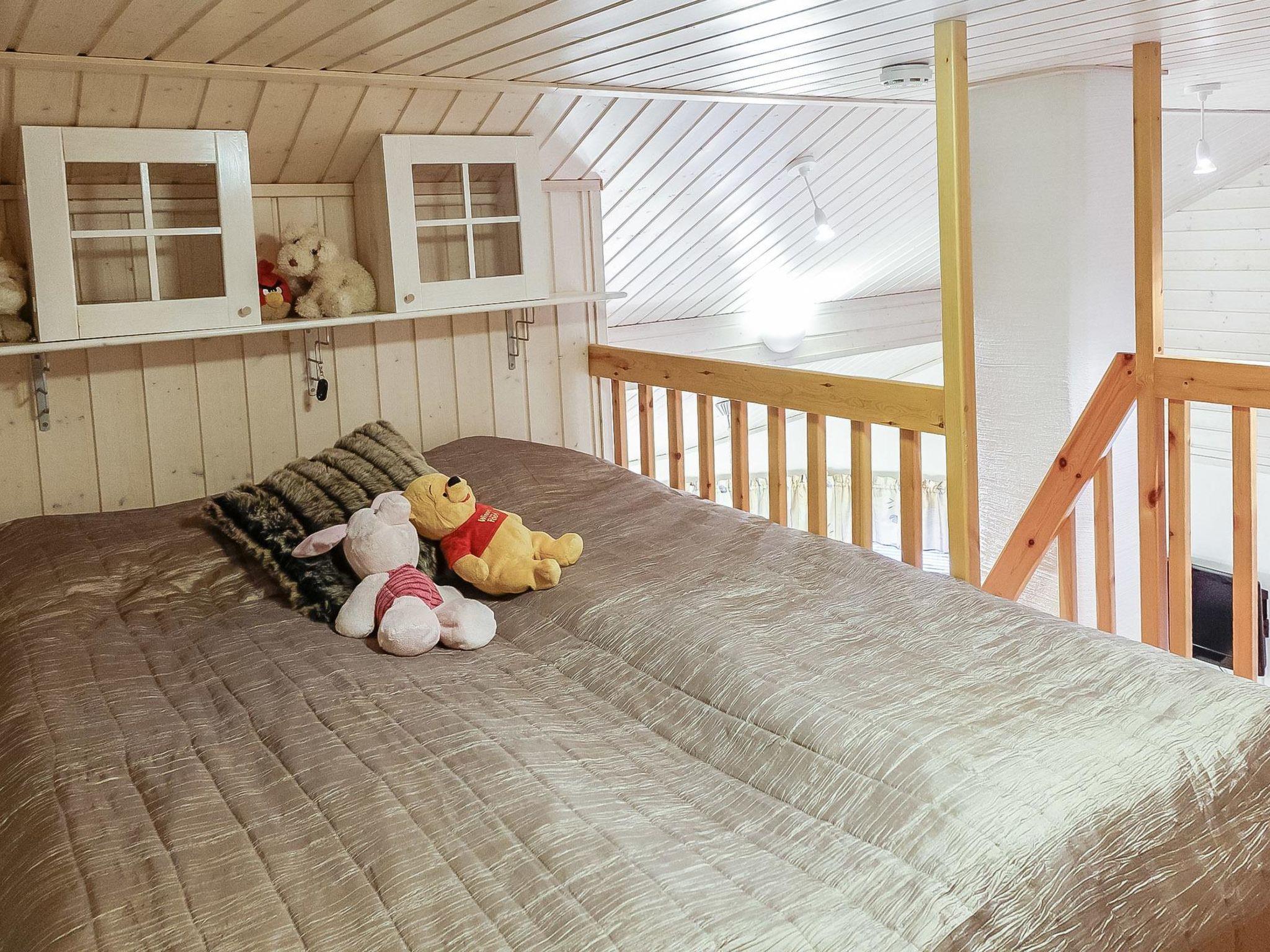 Living room/kitchen with sofa bed, bedroom with double bed (can be separated to single beds), 2 beds in the loft, steep stairs to the loft, sauna, washroom/WC and small storage.