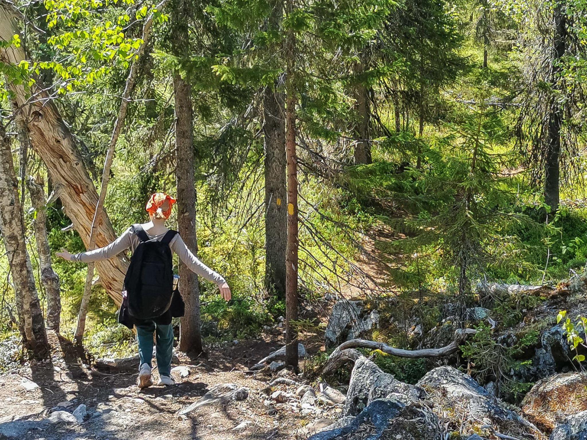 140 km to the northeast from Oulu, located in a village of mountain lodges. Apartment in a kelo log-built semi-detached house, built in 1985.