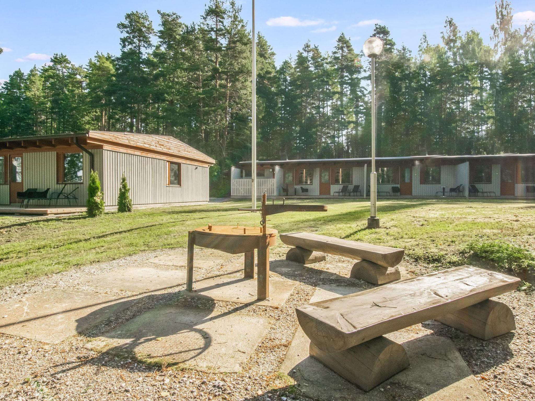 Apartment in wood-built row house, house is built in 1980 and renovated in 2022. Apartment has kitchen, living room, 2 bedrooms with 2 beds in each, washroom with shower, WC and terrace.