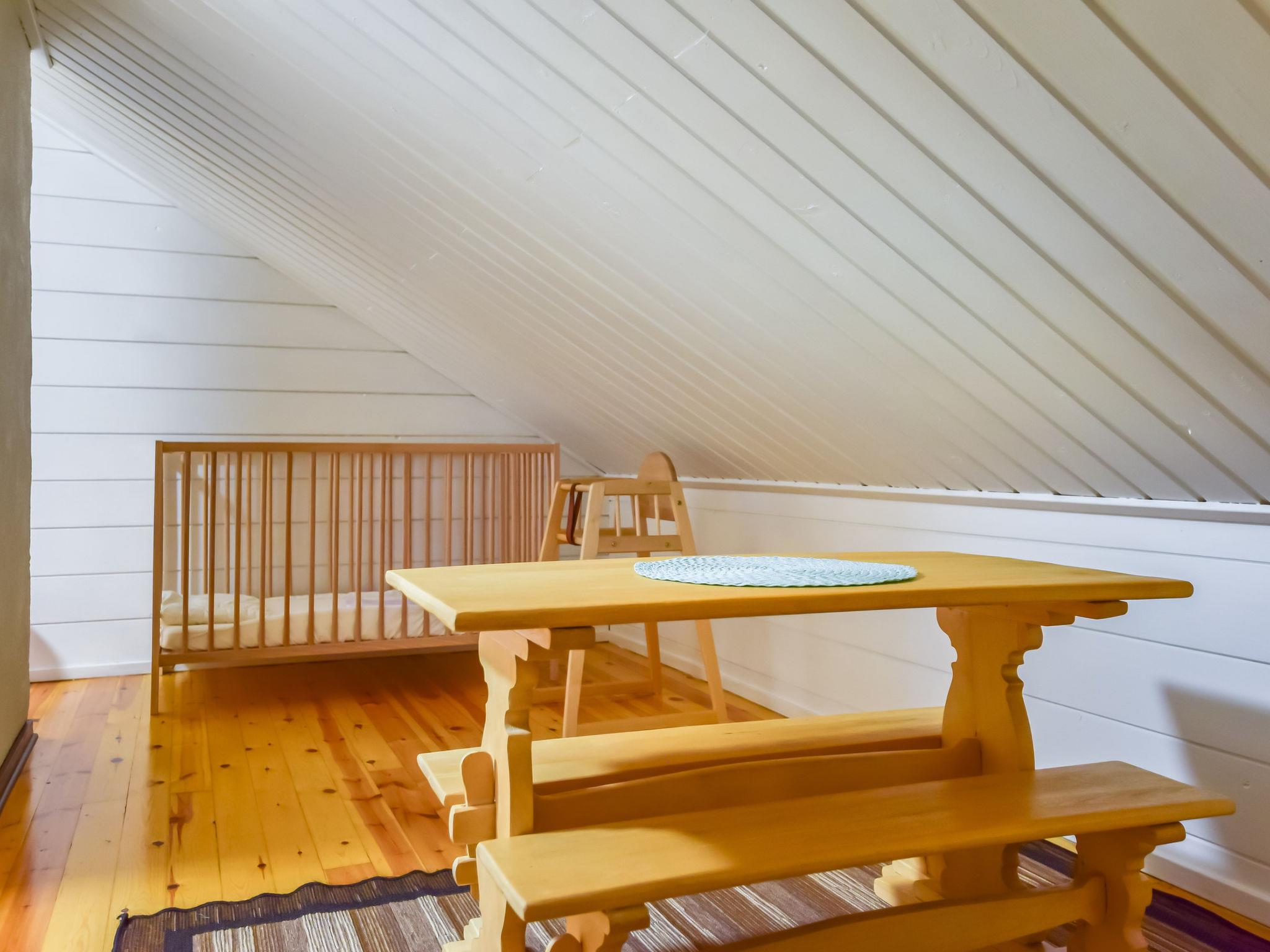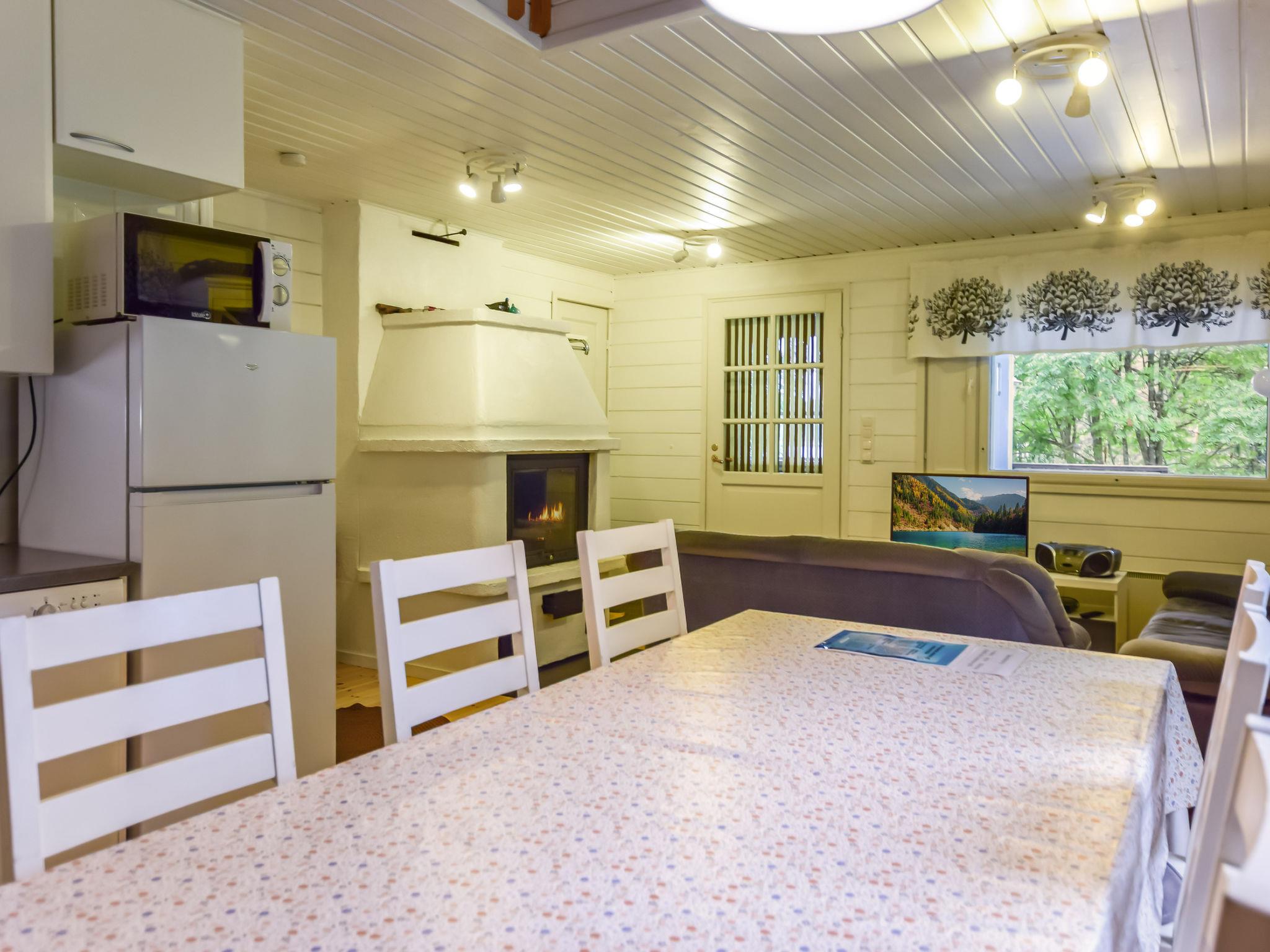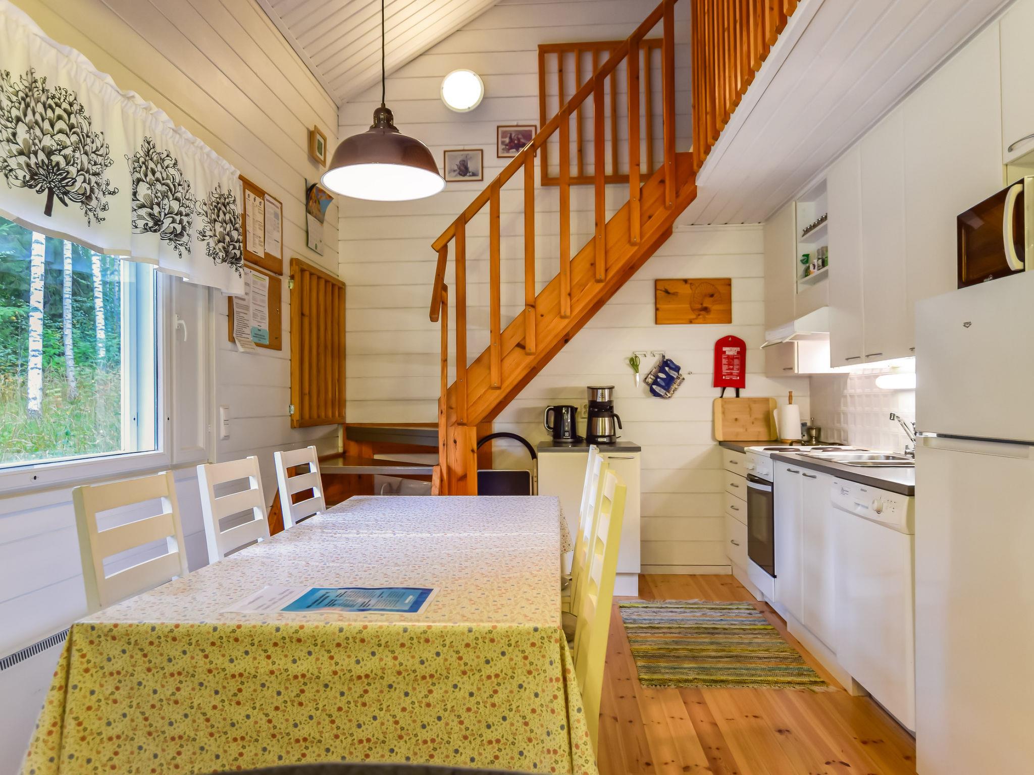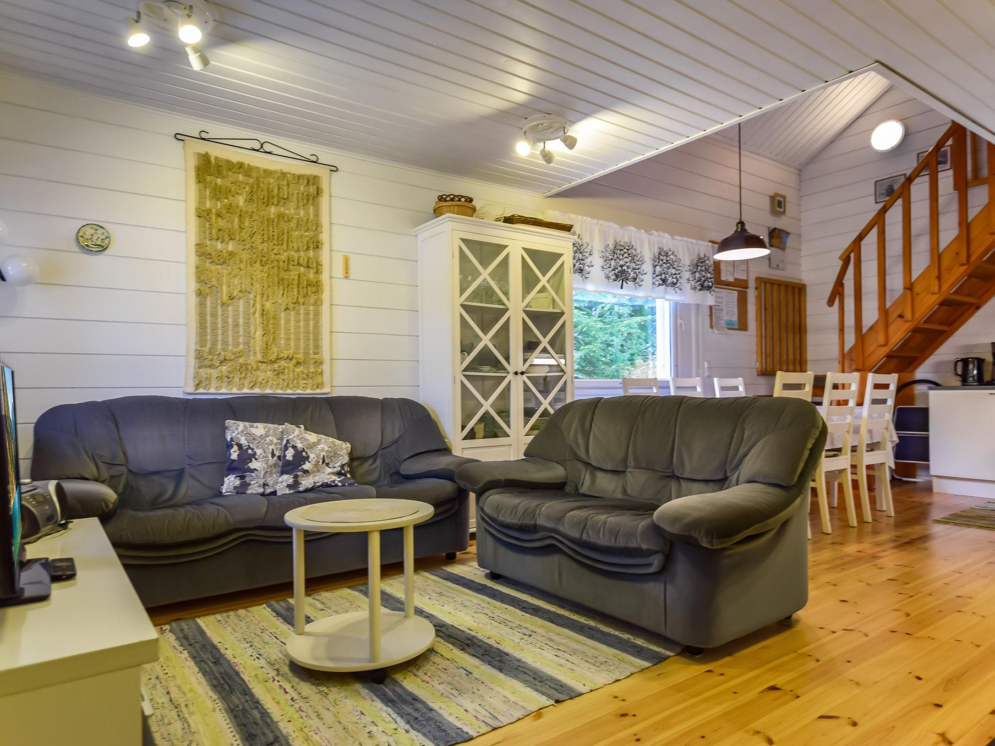 Log cottage 1998, kitchen-living room, bedroom with double bed, sauna (wood-burning stove), bathroom, dressing room and terrace. Upstairs bedroom with double bed, loft with double bed, balcony.