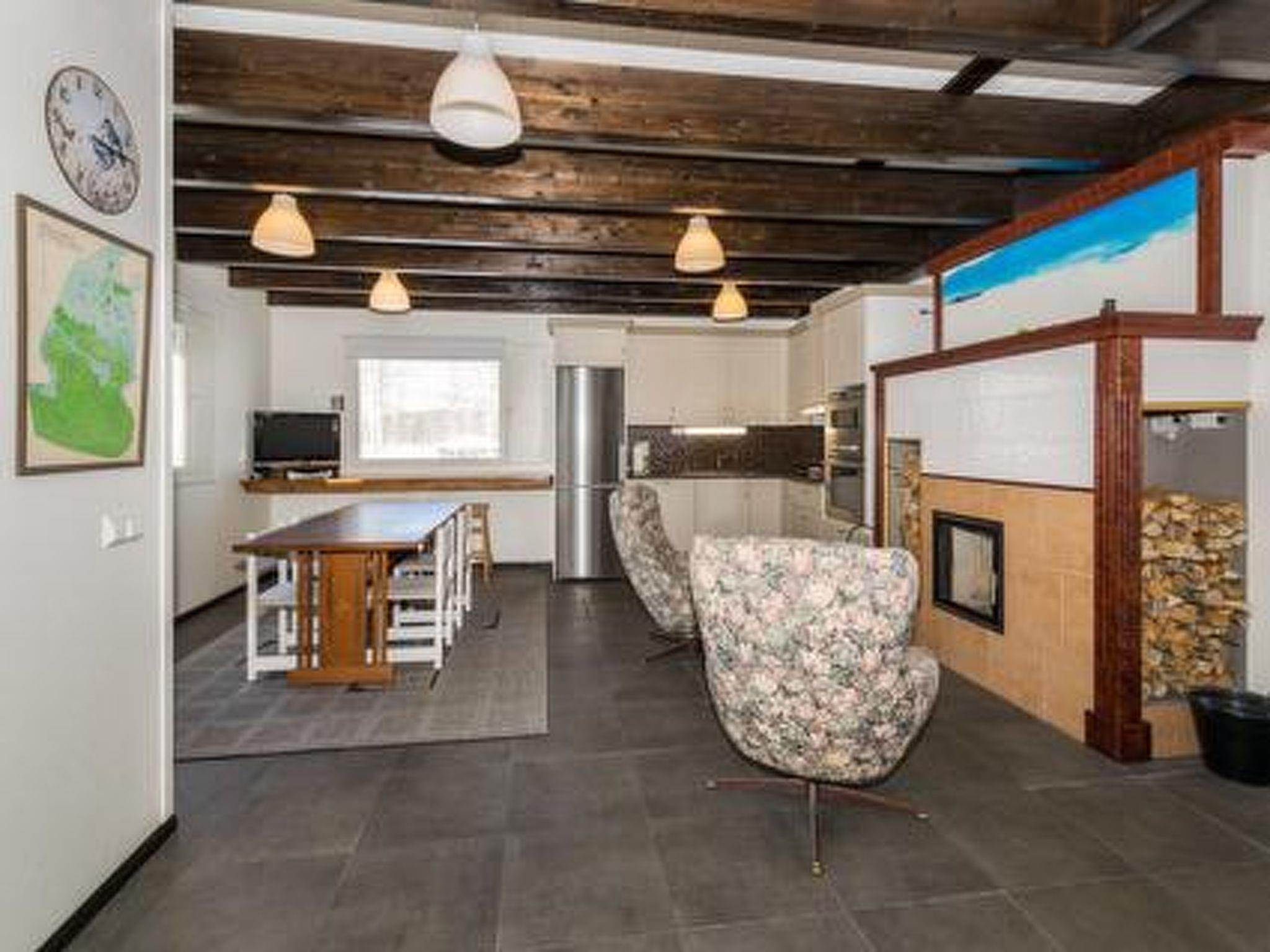 Downstairs kitchen-living room with sofa bed. Toilet, sauna, washroom and dressing room.