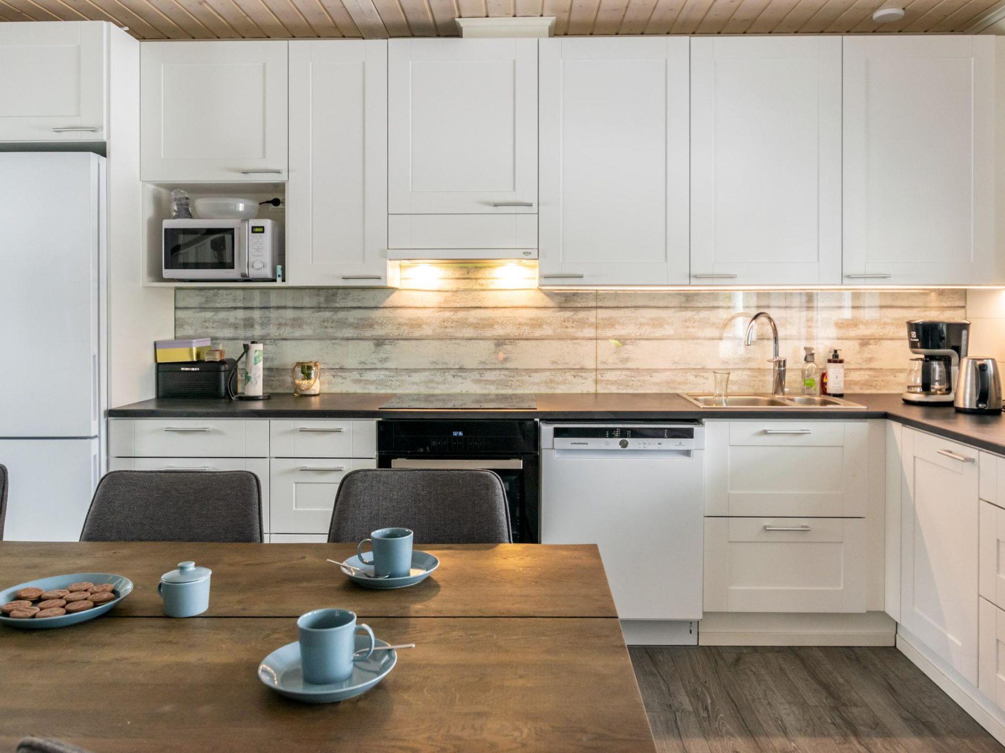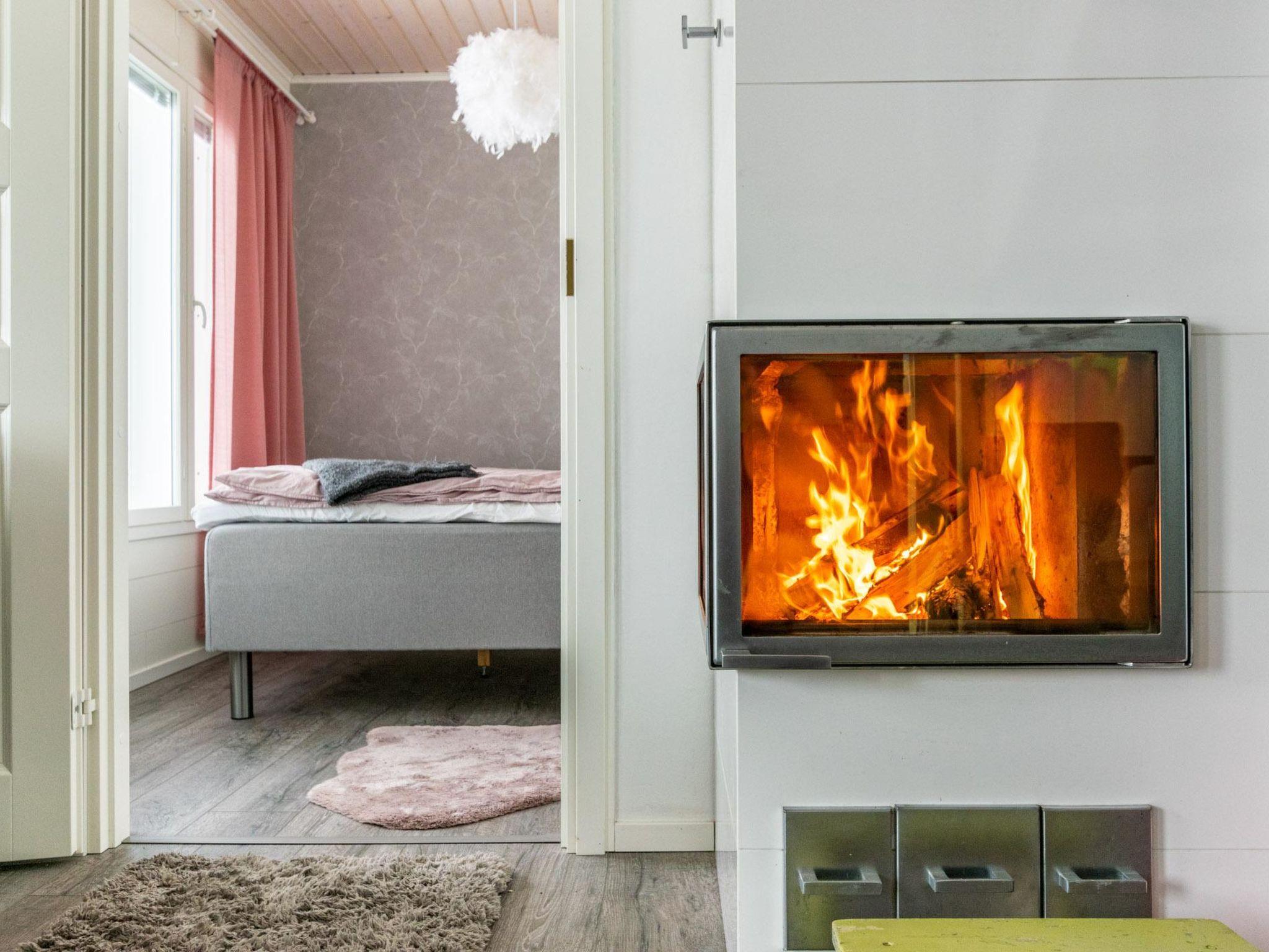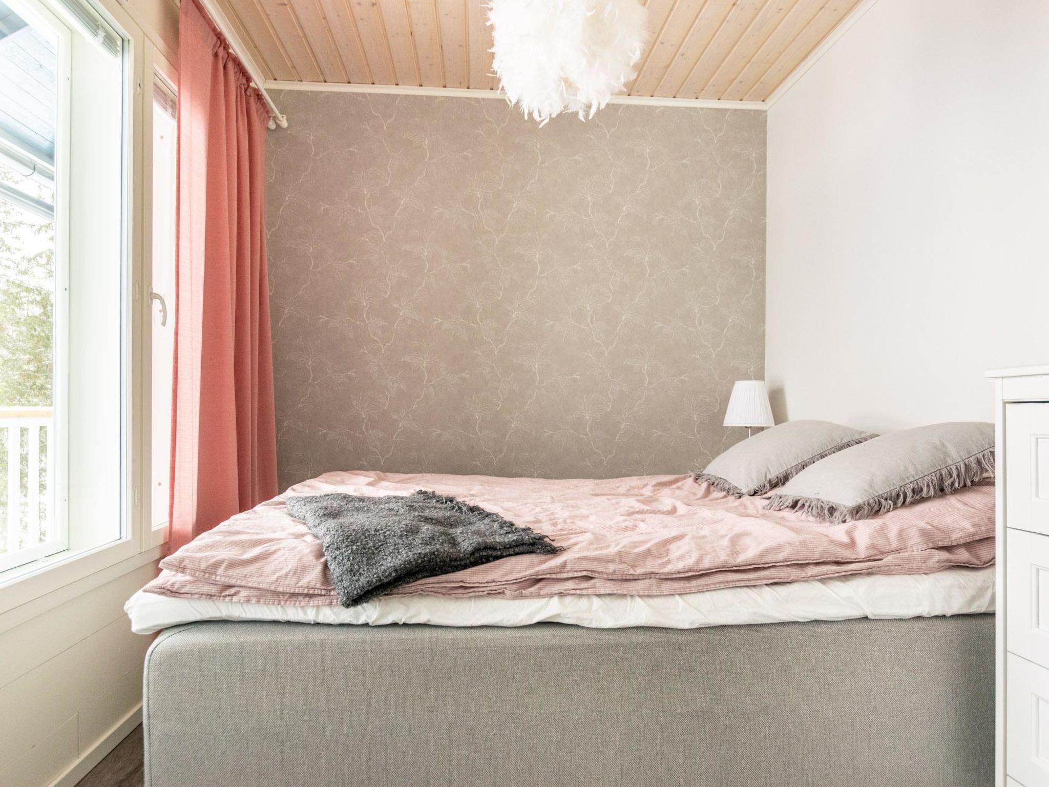 Two-story cabin (built in 2022), living room/kitchen, three bedrooms (bedroom 1: double bed 140x200 cm, bedroom 2: one 120x200 cm bed, bedroom 3: spreadable bed 80x200 cm, when spread out size is 160x200 cm). In addition, in the loft of the lakeside sauna has mattresses for two people. A steep staircase leads to the loft. The cabin has a sauna with electric sauna stove, shower, and WC in the washroom. Spacious terrace with gas grill and hydro-massage bath.