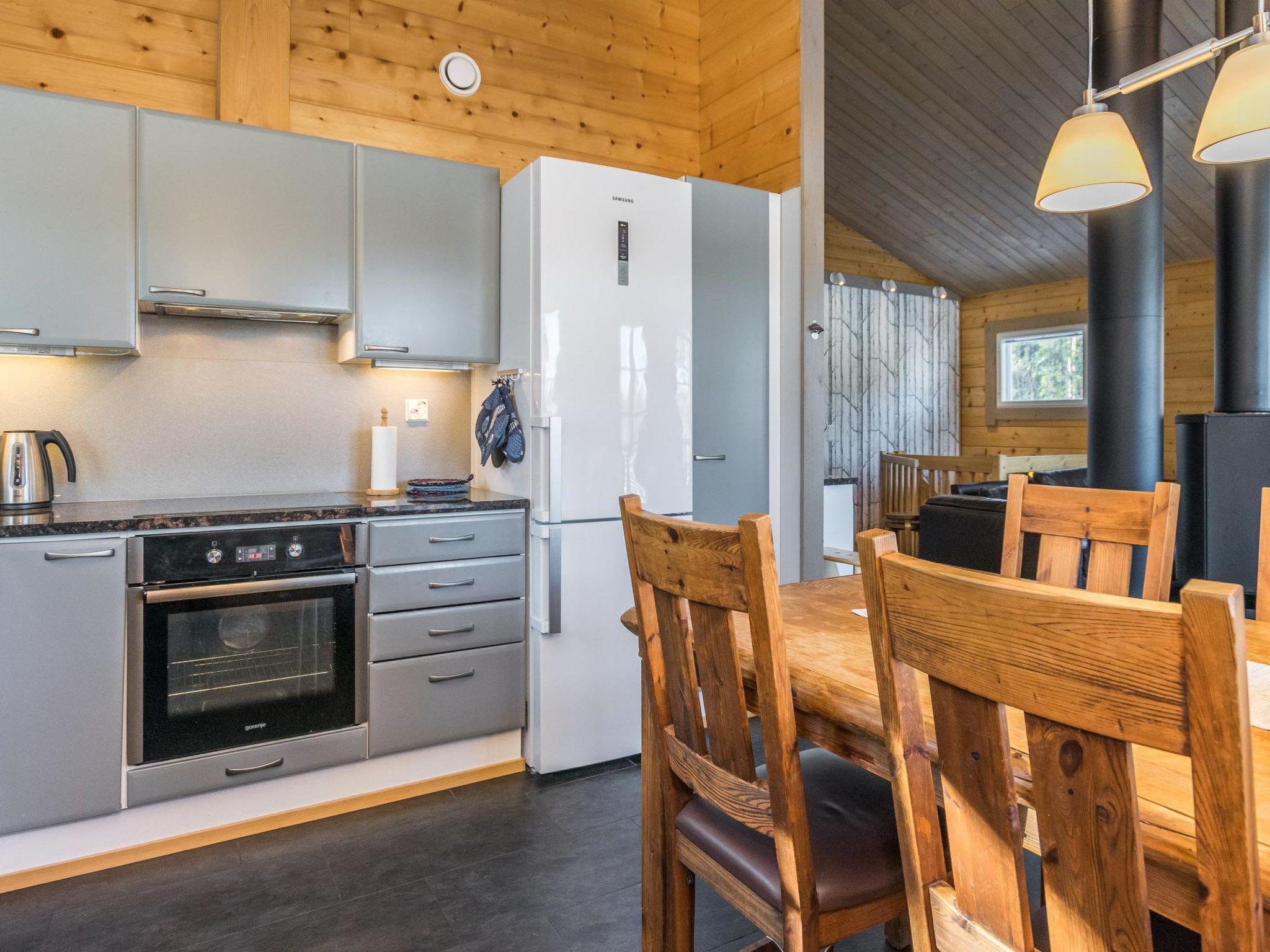 The rental villa Hapero is located on a wonderful hillside plot on the shore of the lake Kaitajärvi. On the sturdy pier, you can relax and enjoy the beautiful landscape while sitting on a bench. Inside the villa, a modern living room/kitchen awaits you, which is equipped with all the necessary equipment. The kitchen also has a wine cabinet where you can keep your drinks cool. The living room has a comfortable sofa and an entertainment system that includes a smart TV and home theater, so you can relax and watch movies with friends or family, there's enough work even for rainy days.