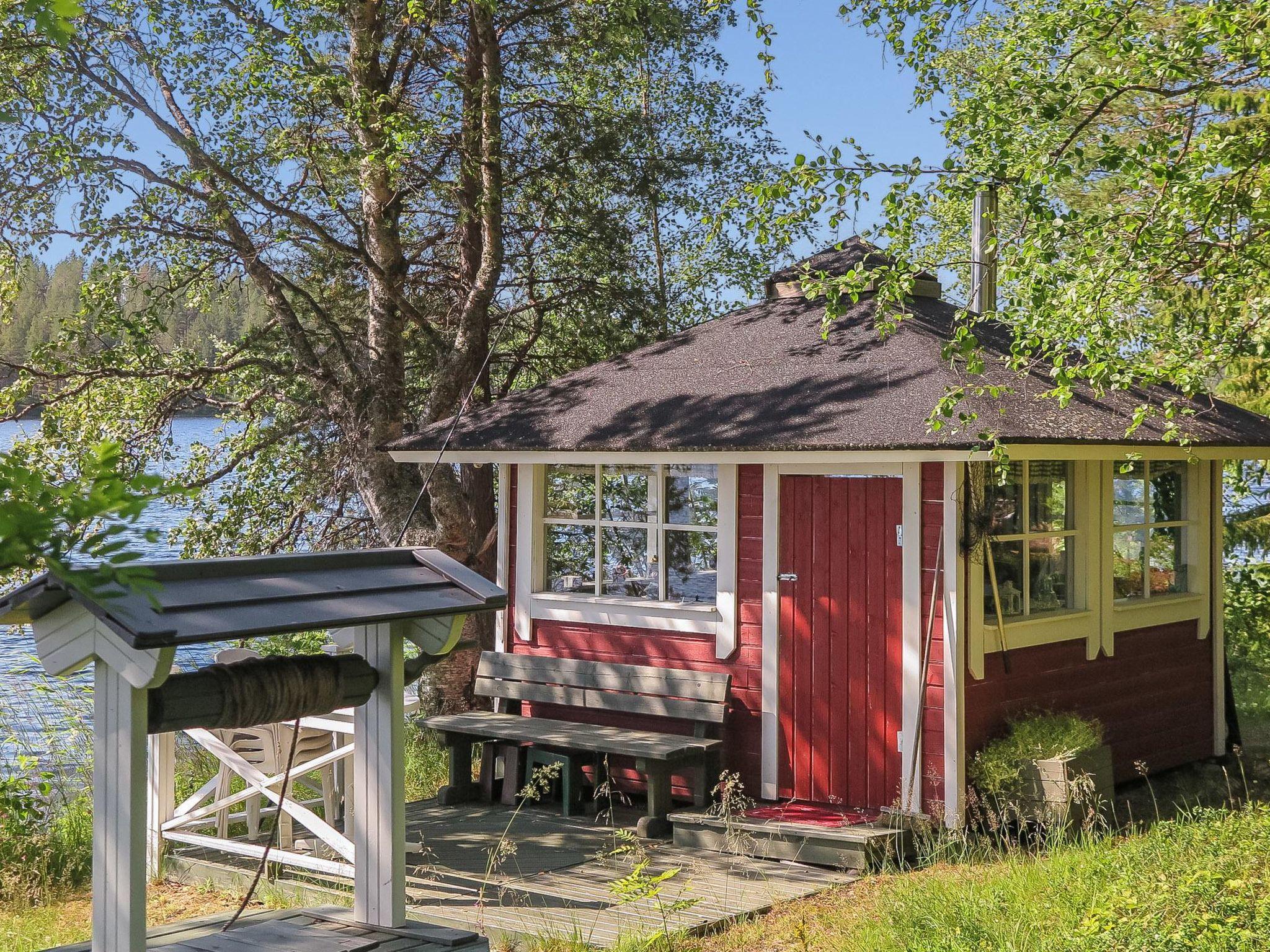 Lakeside sauna available from beginning of June till end of September. Wood-heated sauna stove with a water tank in steam room. Dressing room / living room in sauna building: wood-burning stove and convertible sofa for 2. Electric lighting, water to sauna by motor pump.