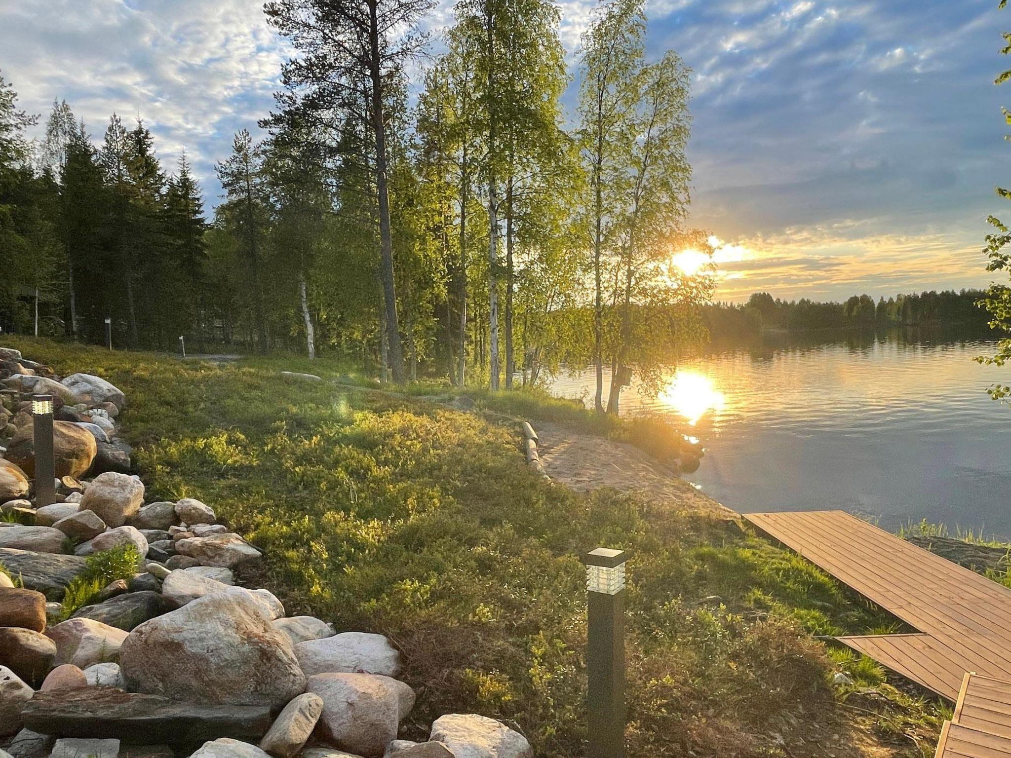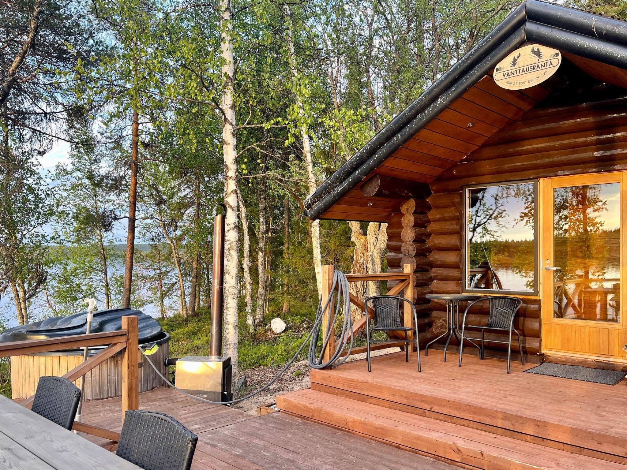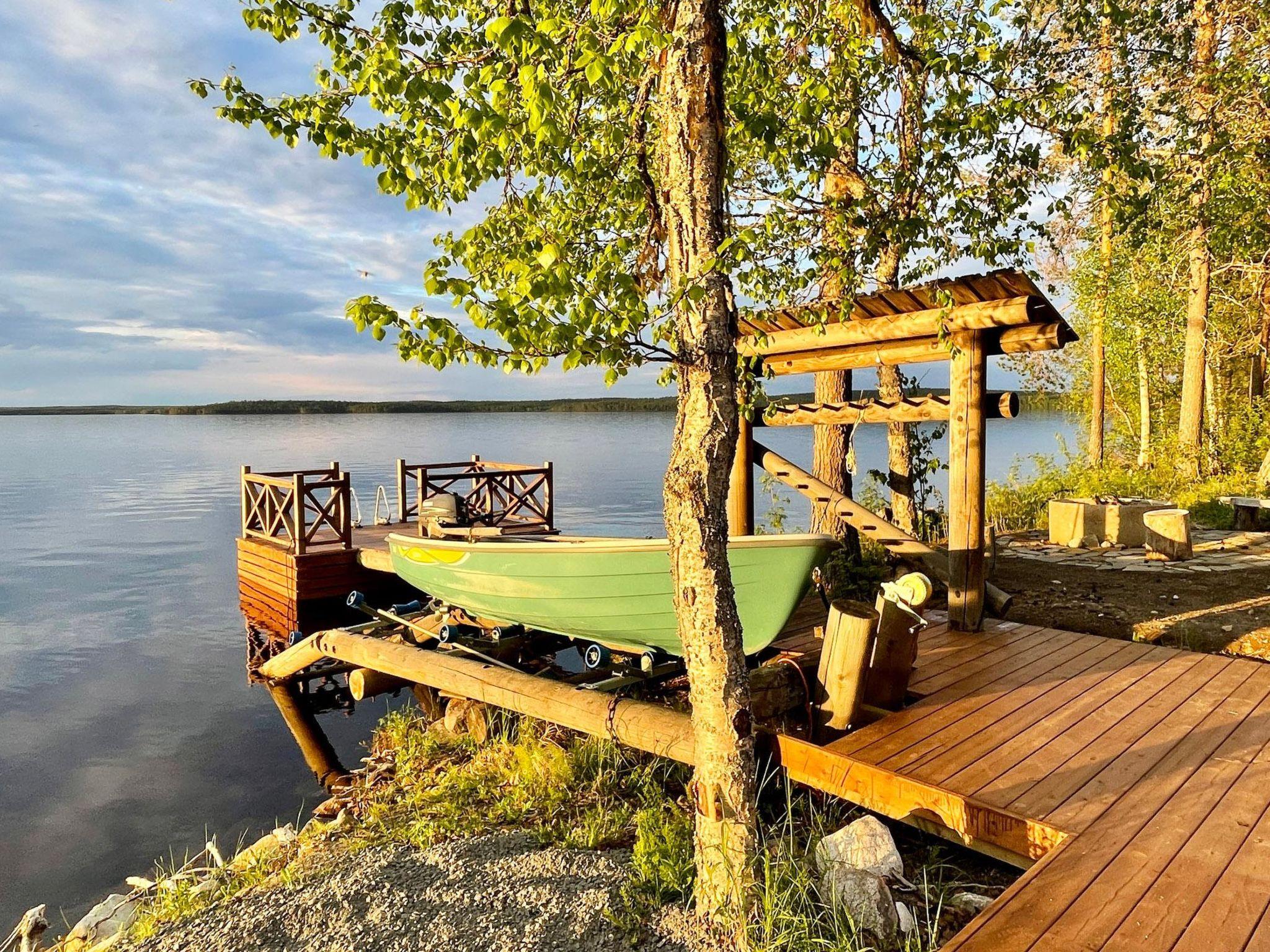 55 km to the east from Rovaniemi, lake Vanttausjärvi 20 m (length 6 km, width 2.5 km), shallow, artificially sanded beach, pier, rowing boat and outboard 5 hp. The outboard motor will be delivered with a full fuel tank and customer also returns the engine with full fuel tank (2-stroke engine).