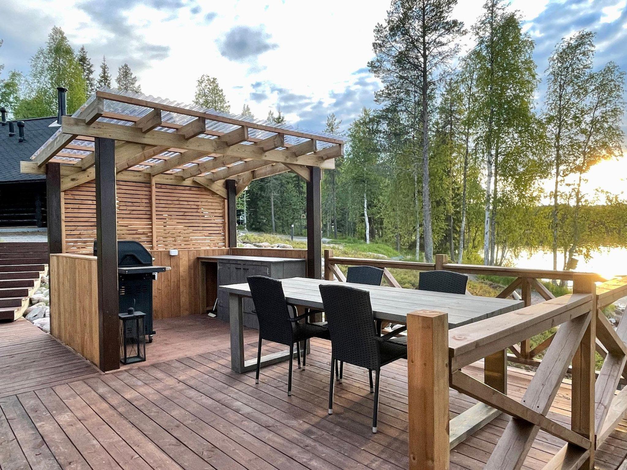 In connection with the lakeside sauna, there is a terrace with summer kitchen. The summer kitchen has a barbecue and terrace has a table for 6 people. In addition, closer to the lake is a separate campfire site. In windy weather or when the rain comes unexpectedly, there is also a covered cooking area with round log-built dining table for 4 people and a magnificent fireplace where you can fry sausages or even make blazed salmon.