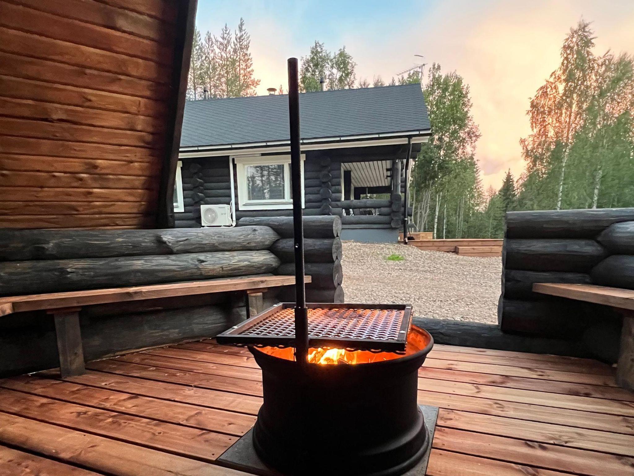 Outside the cabin, you can spend time around the campfire in the cooking hut. It's the perfect place to prepare delicious meals by the fire and share stories with friends and family under the starry and aurora-filled sky.