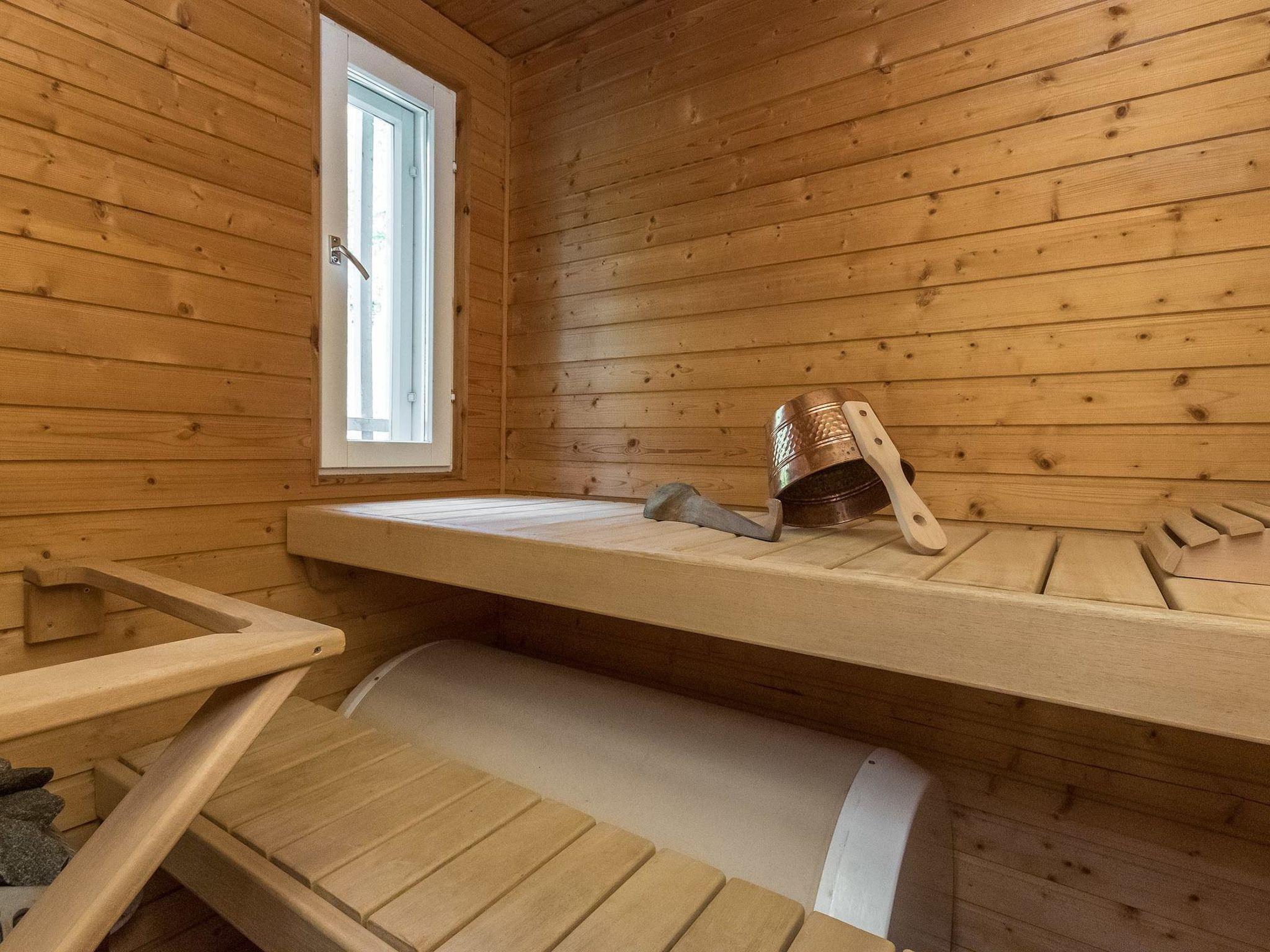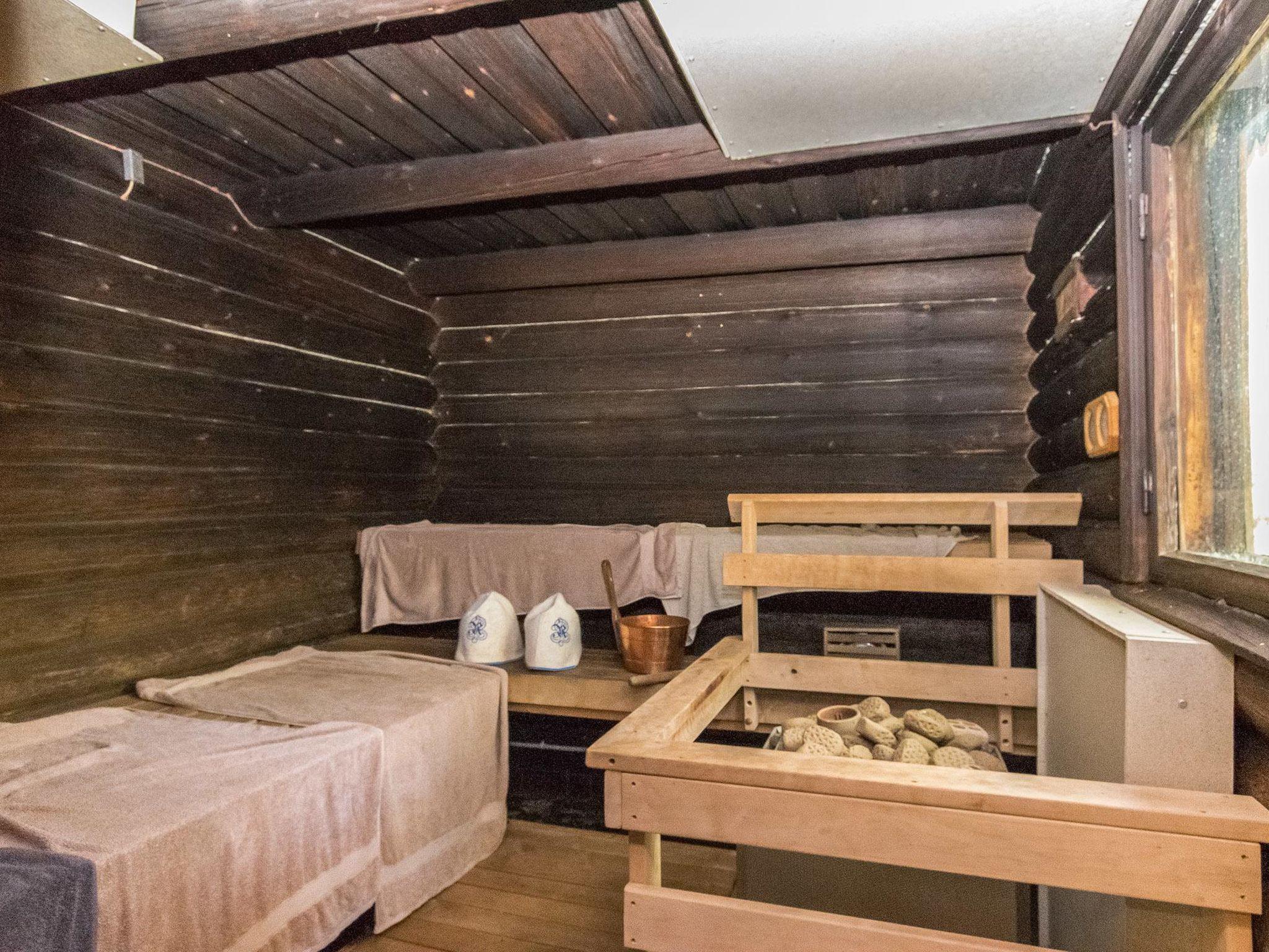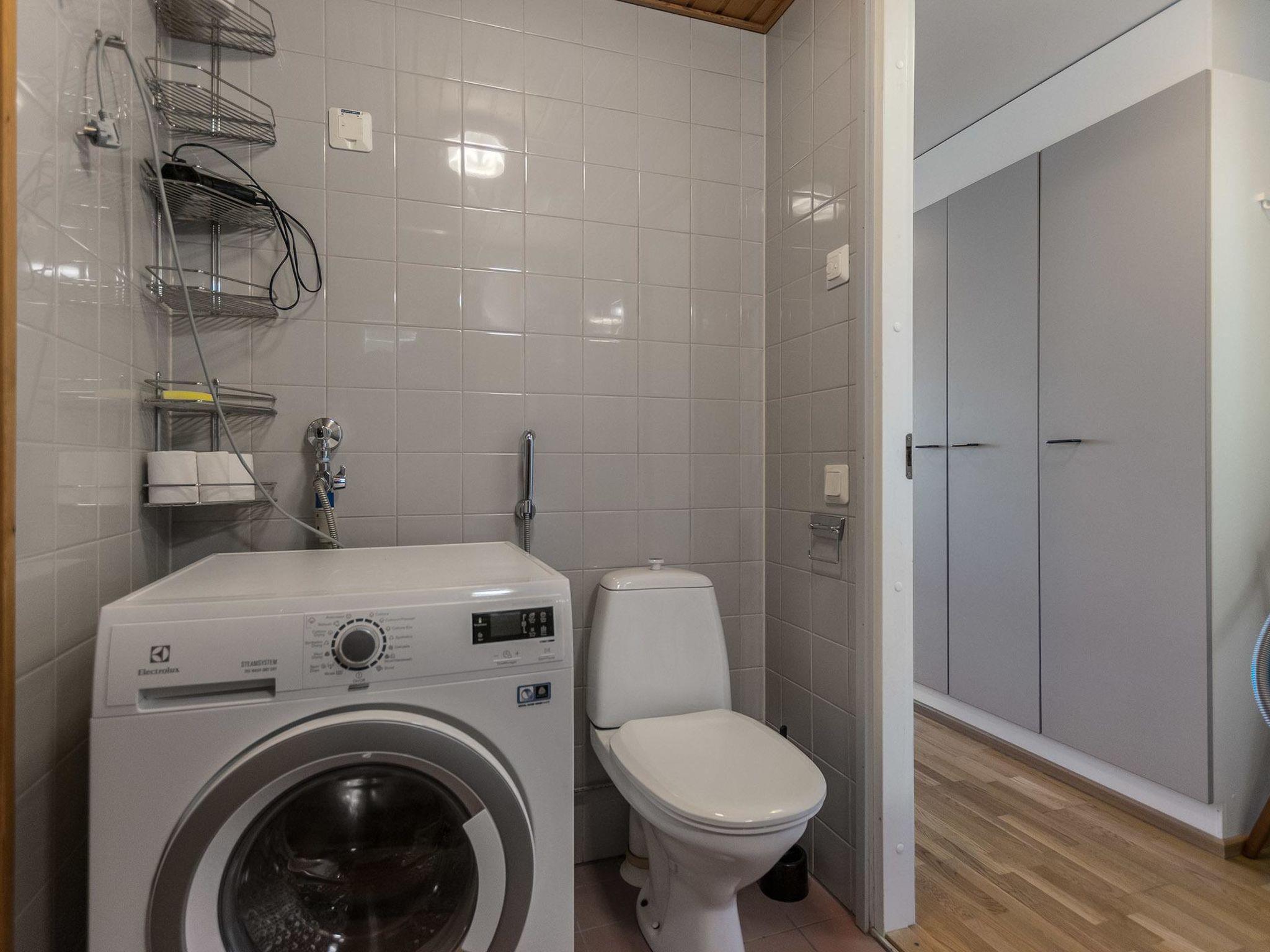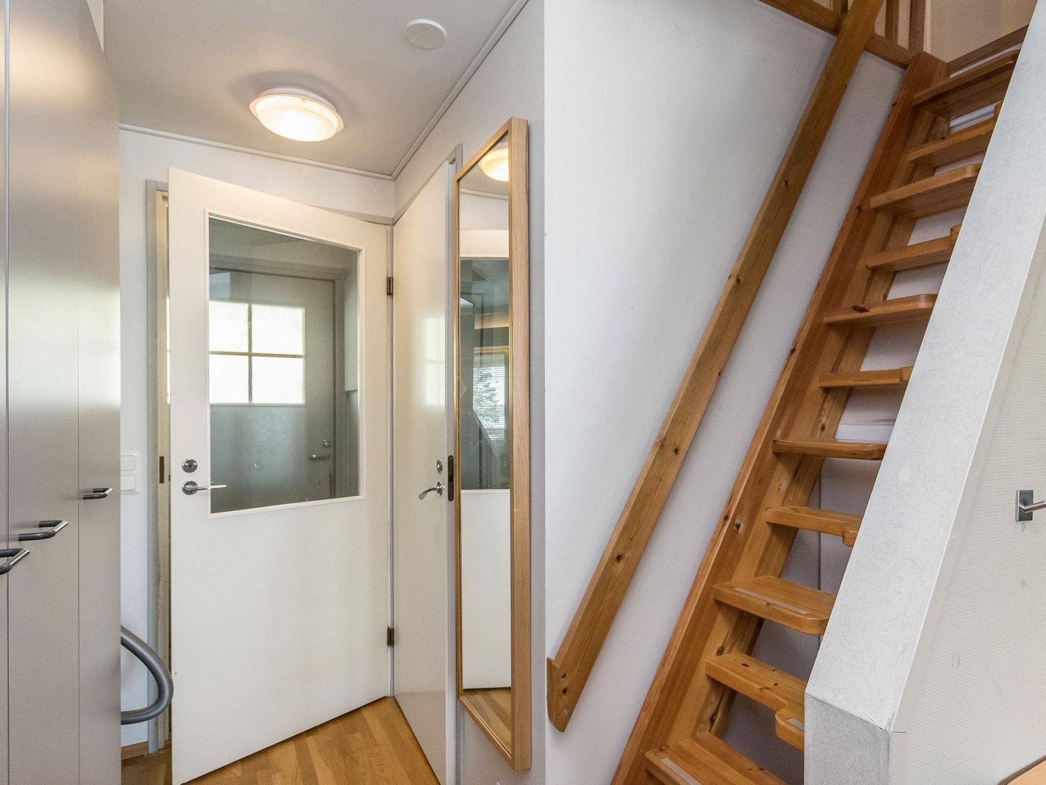 Apartment in a row house (built in 1990), living room with sofa bed for two, kitchenette (renovated in 2012), washroom with WC and shower, electric sauna, glazed terrace. Three beds in the loft, steep stairs lead to the loft.