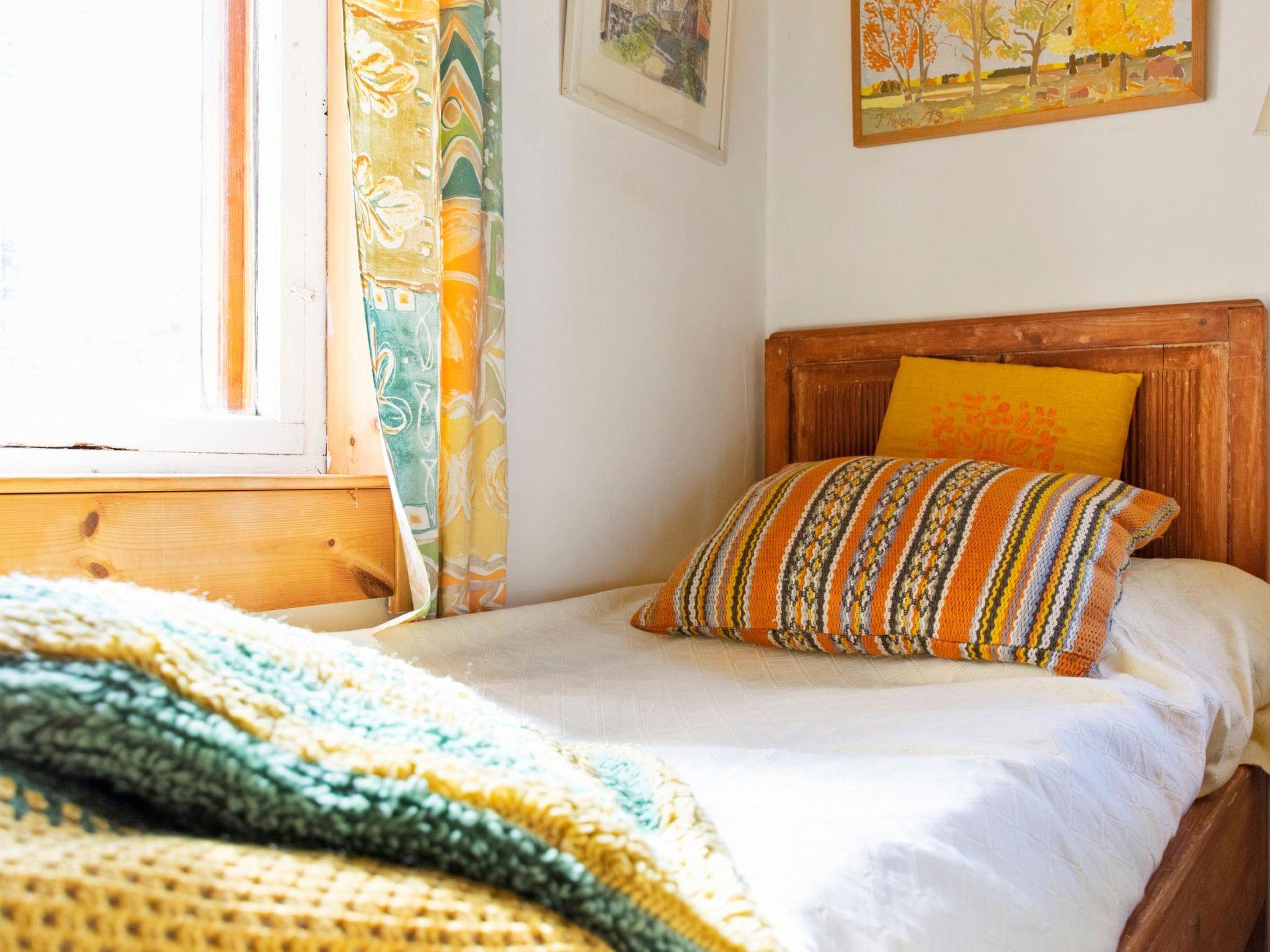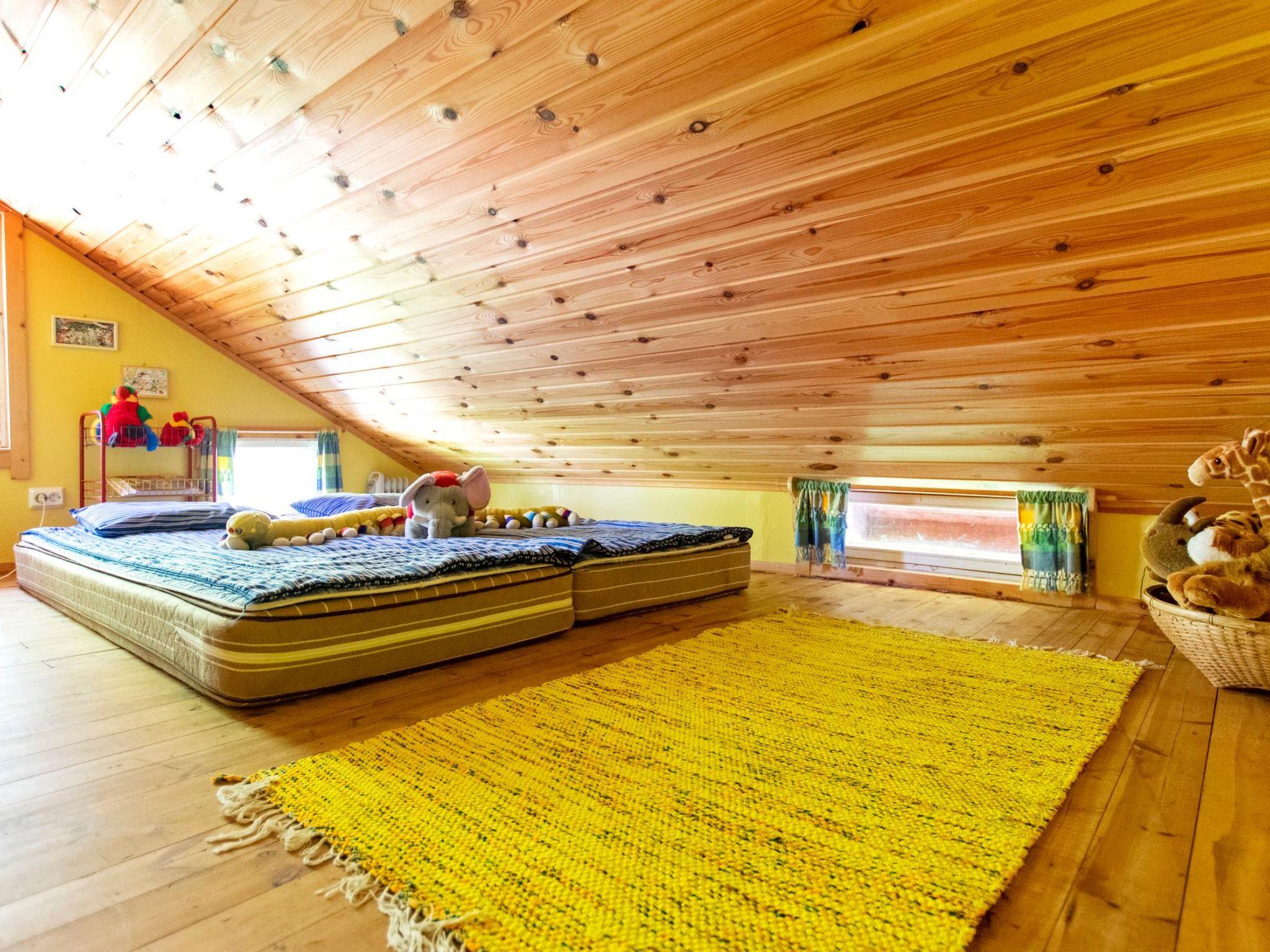 Cottage made from old log building and enlarged in 2004, living room/ kitchen with one extra bed (height 186-189 cm), living room, living room's alcovepart 2 beds, washroom, sauna, upstairs living room, bedroom 2 beds, small bed room with 2 mattresses, kitchenette, large balkony.