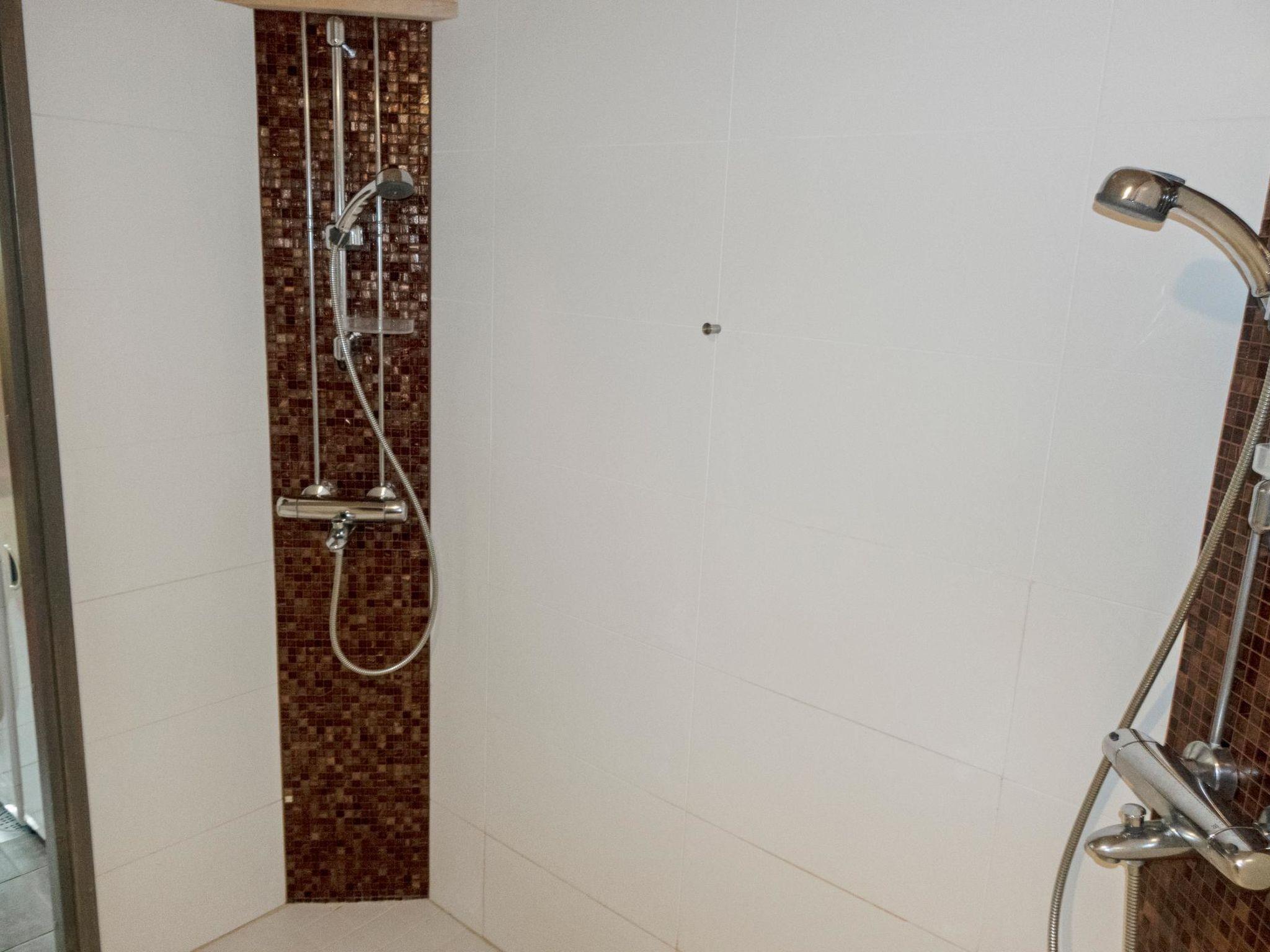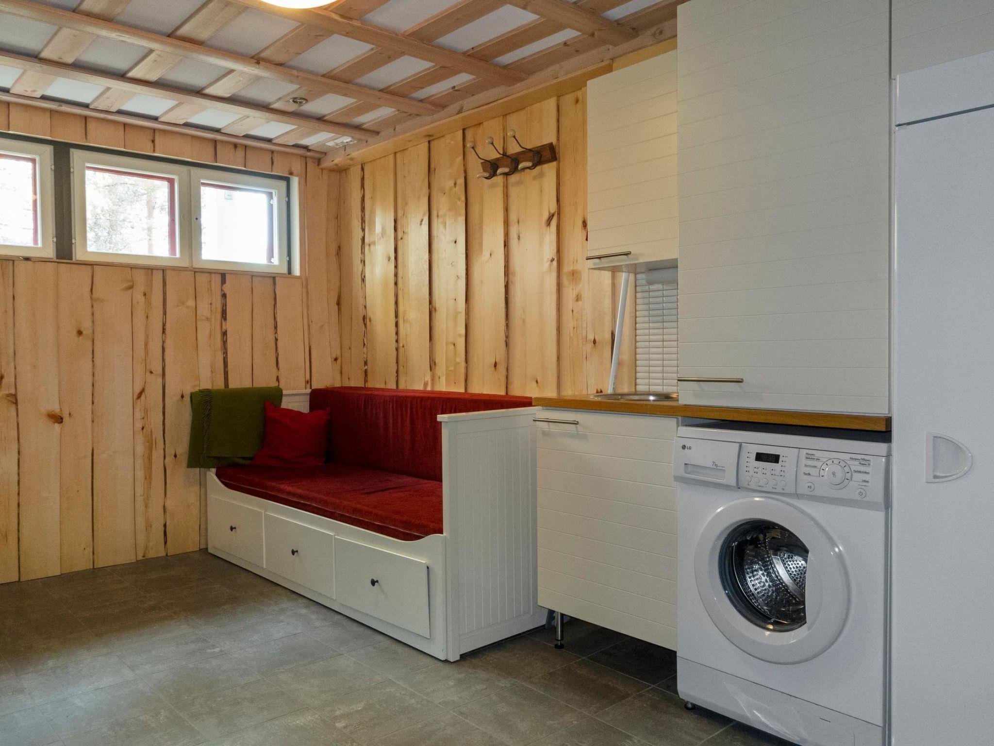 On the ground floor there is sauna, washroom, sauna room/utility room, spreadable sofa in sauna room and separate WC. In addition, spacious sleeping area with double bed. The sleeping area has no windows.