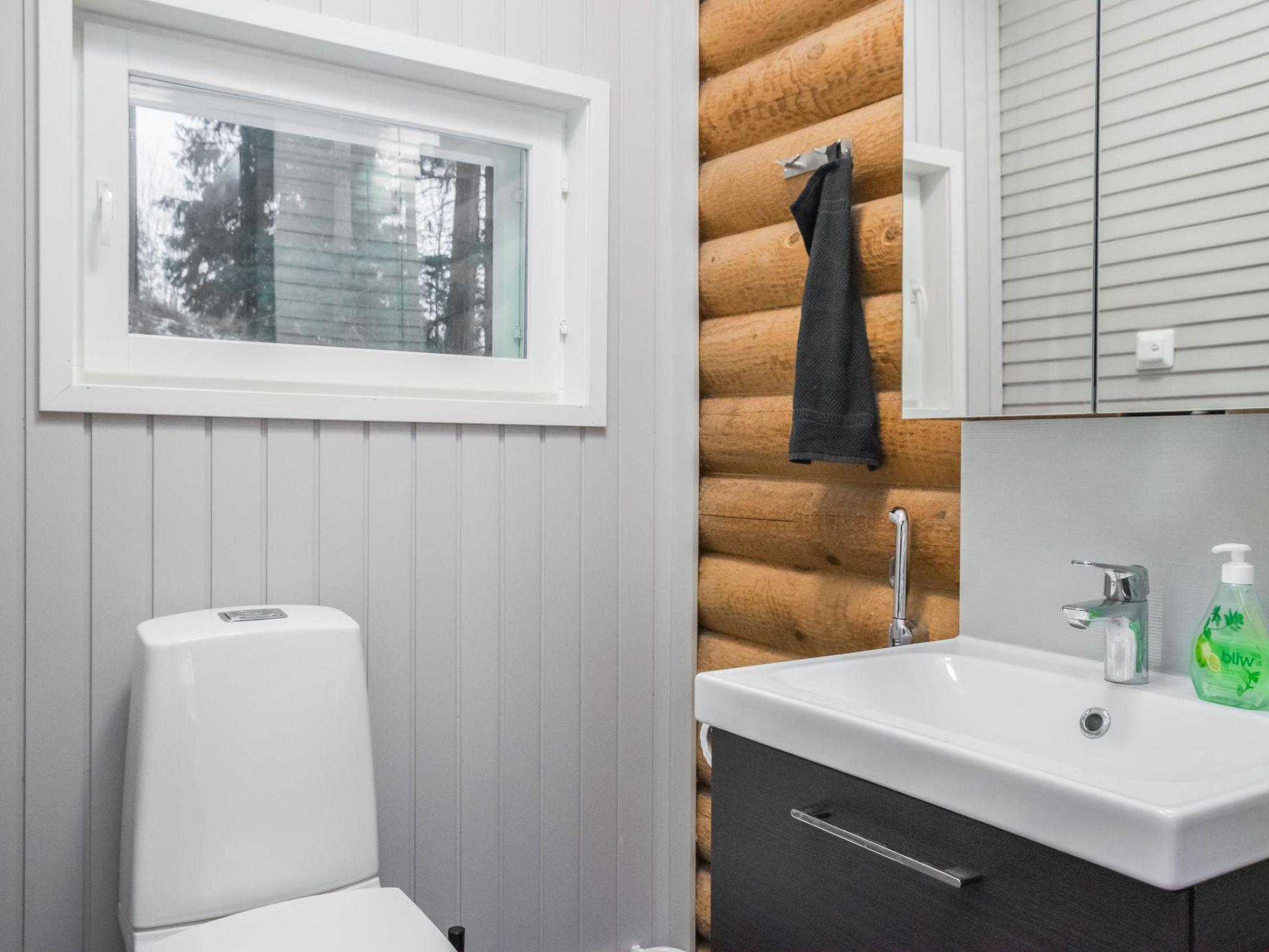 This round log villa comprises a large living room /kitchen, three bedrooms with two beds in each (one with a double bed mattress), three bathrooms, a dressing room with a sofa bed for two, and a spacious electric sauna in the bathroom.