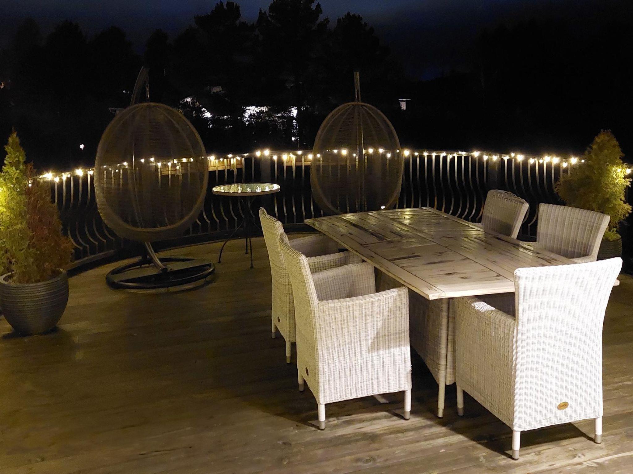 The main bedroom downstairs has a double bed and a cozy LED fireplace. On the upper floor, there are two bedrooms, each equipped with three beds: a double bed and a single bed. The upper floor hall features a sofa bed for two. Wireless internet and a Bluetooth amplifier are available throughout the house.