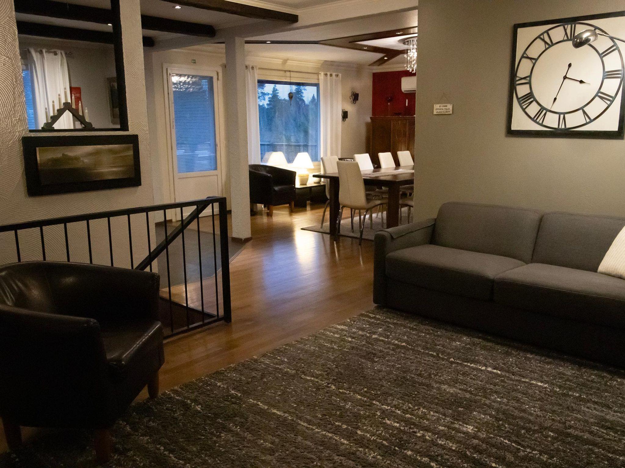 This impressive and spacious house with a swimming pool is located in Sastamala, just 45 km from Tampere. Inside, the pool area features a 6×3 m swimming pool (water temperature approximately 22°C, depth around 1.3 m, deepening to about 1.45 m at one end), a small cold pool, a spacious sauna, and a bathroom with two showers. There is also a heat-storing fireplace and a living area with amenities such as a bar counter.