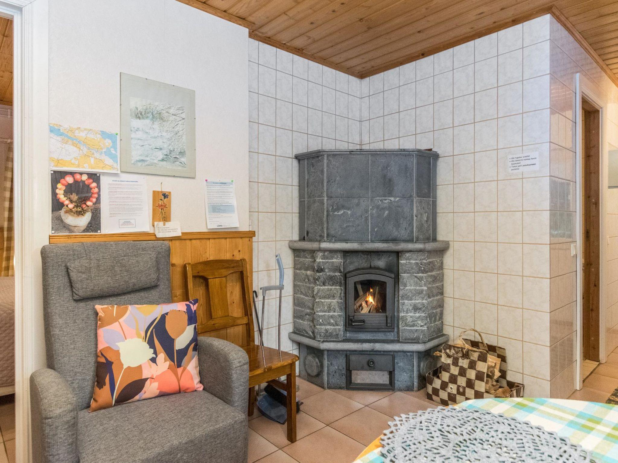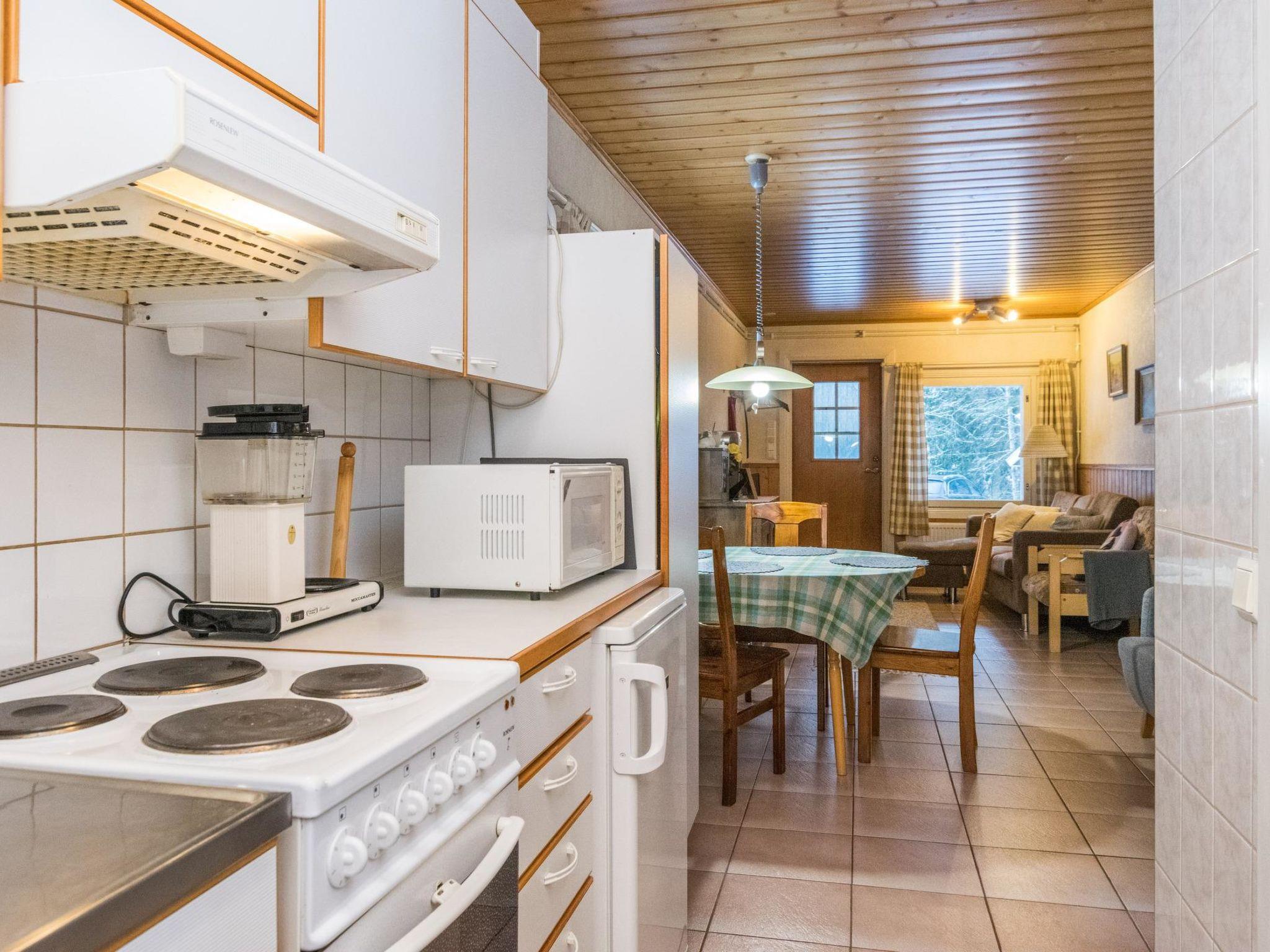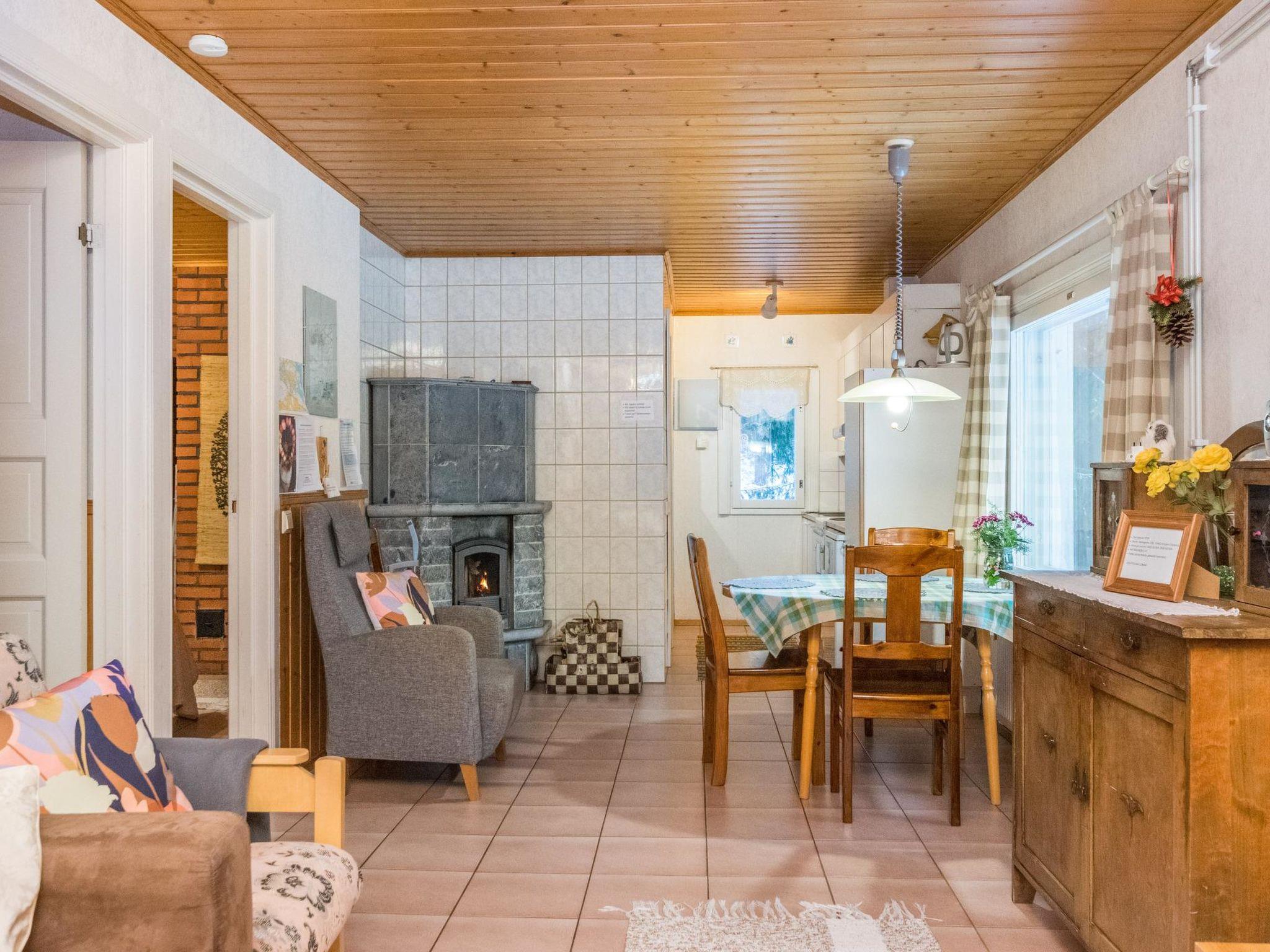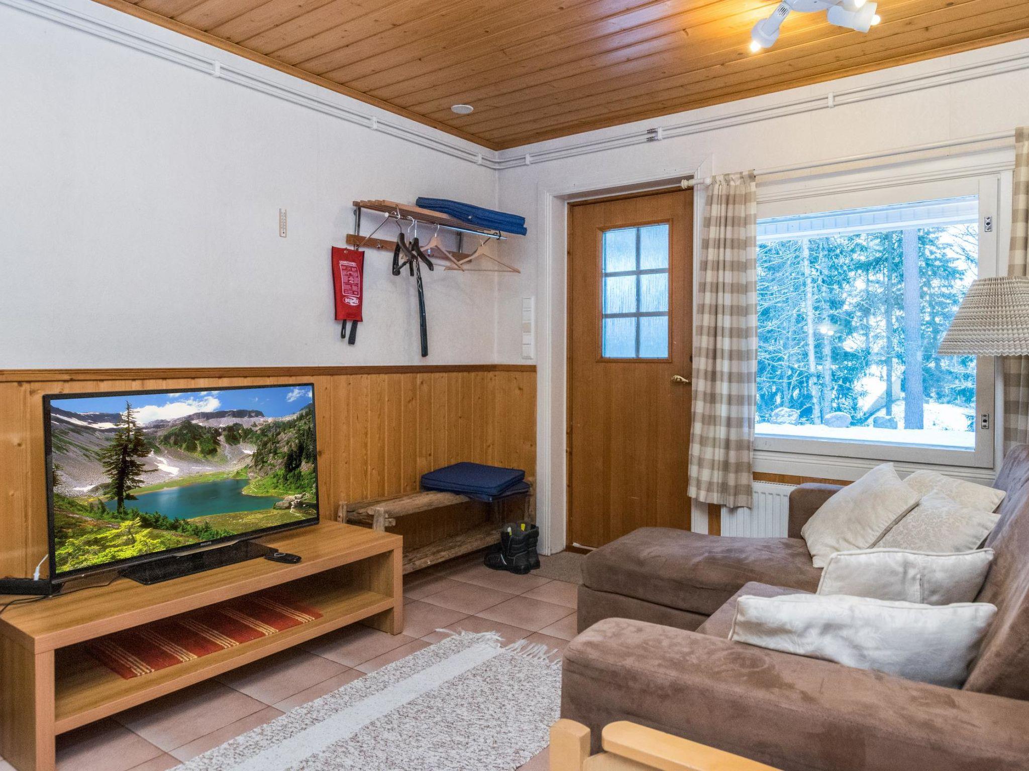 Wooden cabin 1992, living room/kitchen, 2 bedrooms with 2 beds in each, washroom, sauna, open veranda. Car shelter.