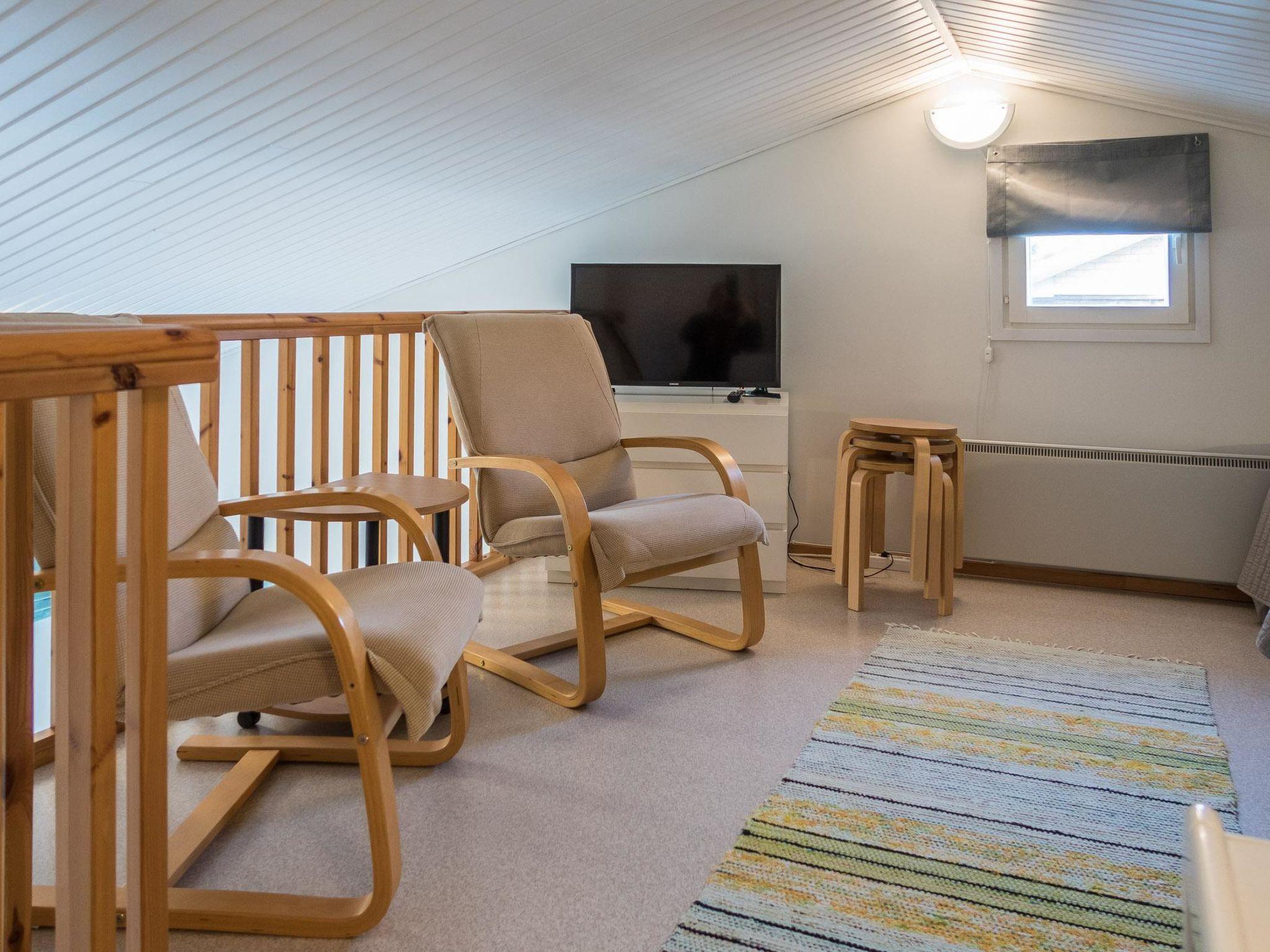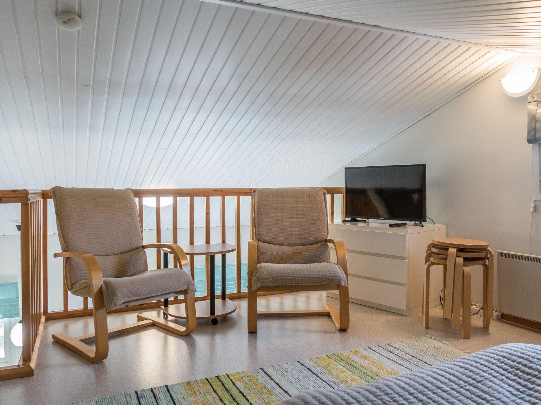 Area 36 m² + low loft. Living room kitchen, separate bedroom with a double bed. Separate beds for 3 in the open loft. Sauna (electric heater), shower/toilet. Porch.