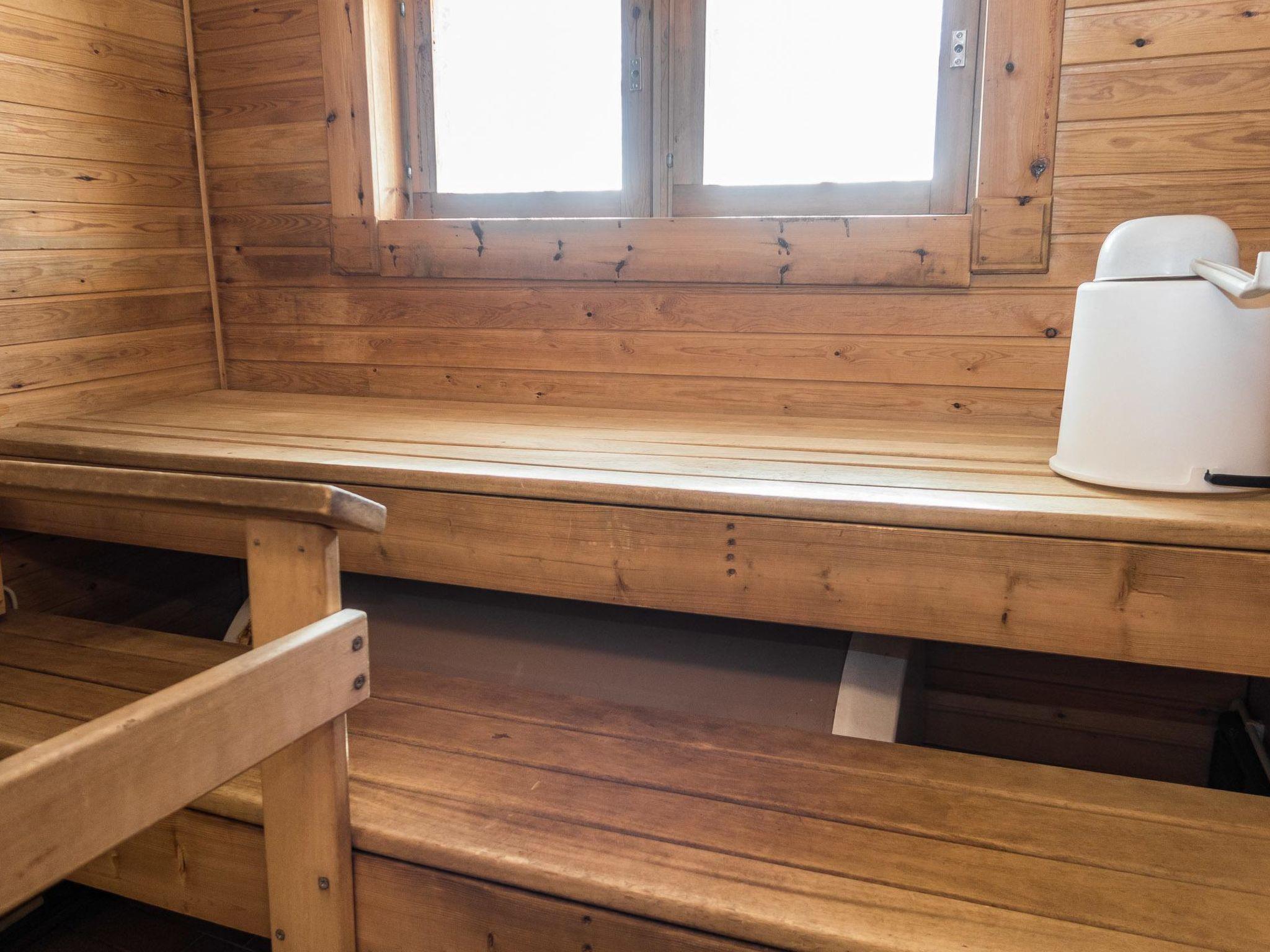 Vuokatticottage F living area 57 m², on two floors. Kitchenette, bright living room with dining table, sofa, TV 42 ", fireplace. Shower/toilet, sauna with electric stove. Loft with steep stairs, small lobby with access to both bedrooms, one with double bed (access to balcony), one with twin beds for 2. Small terrace.