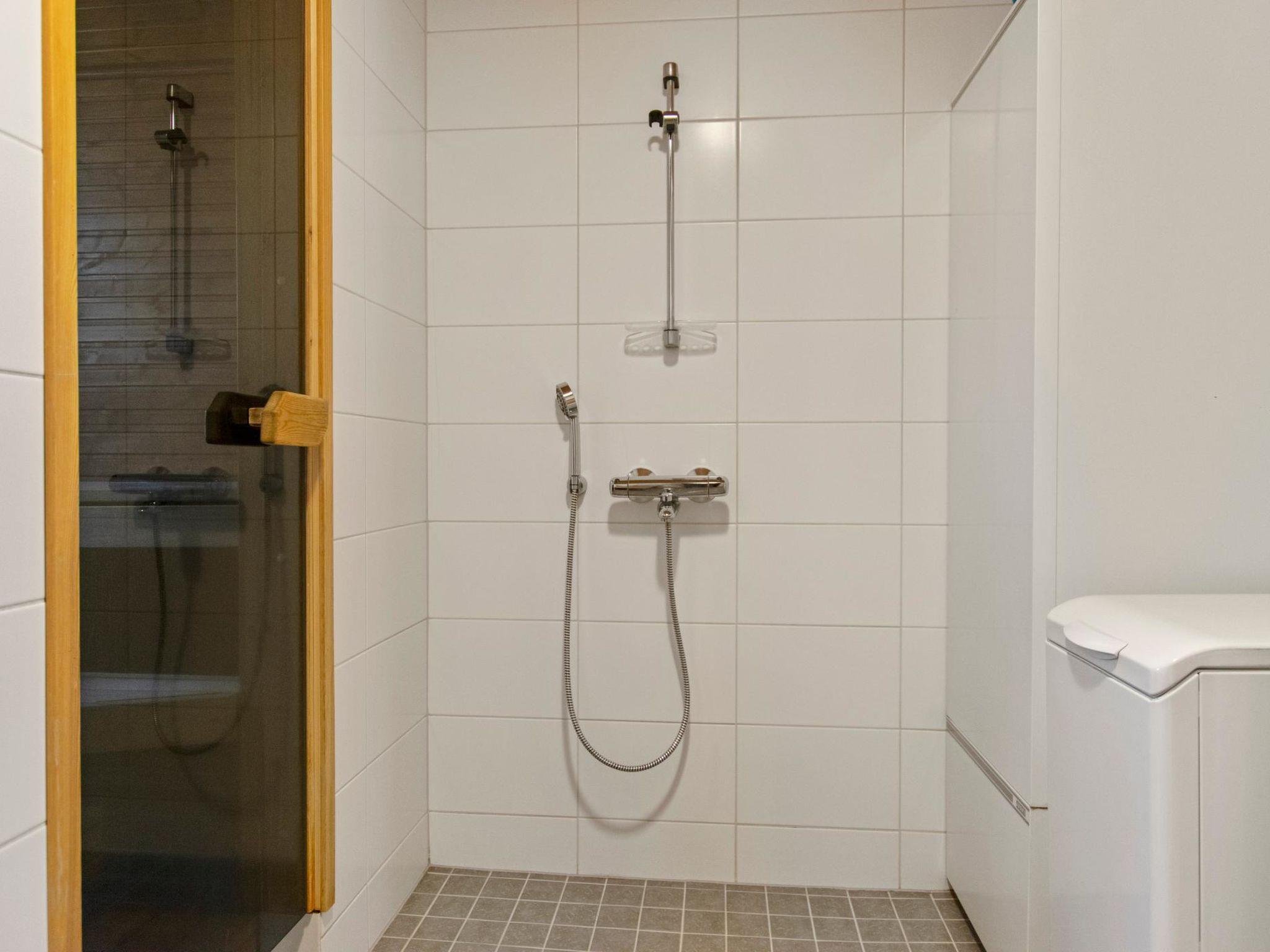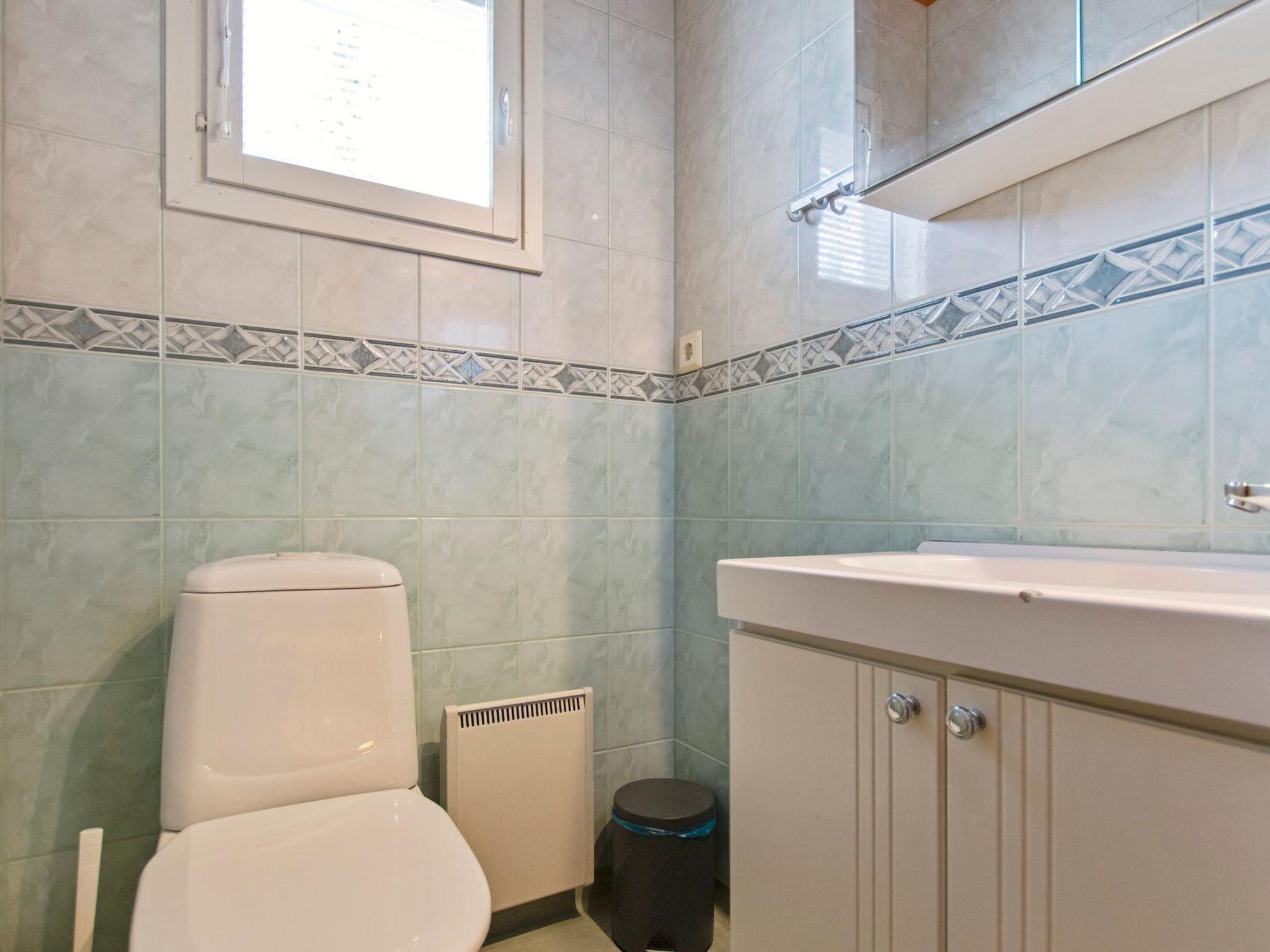 Living area is 72,5 m². On the ground floor there is combined living room & kitchen and one bedroom with twin bed. Upstairs there are two bedrooms, both with separate beds for two. Open loft with sofabed for 1-2 persons, toilet. Sauna (electric heating), washroom, shower and separate toilet.