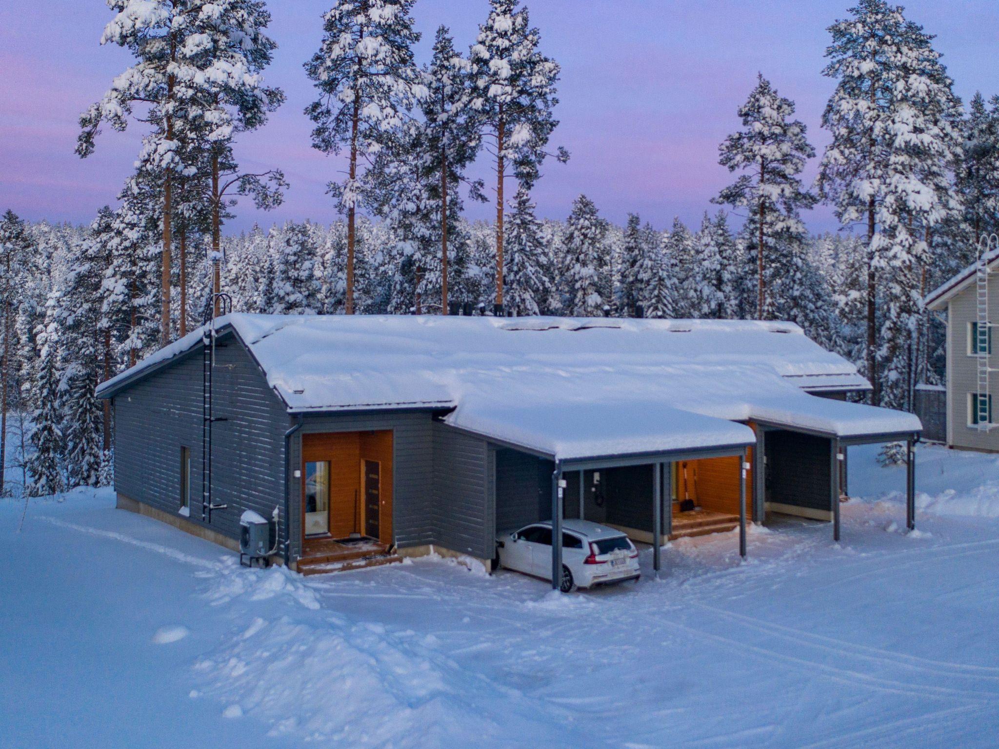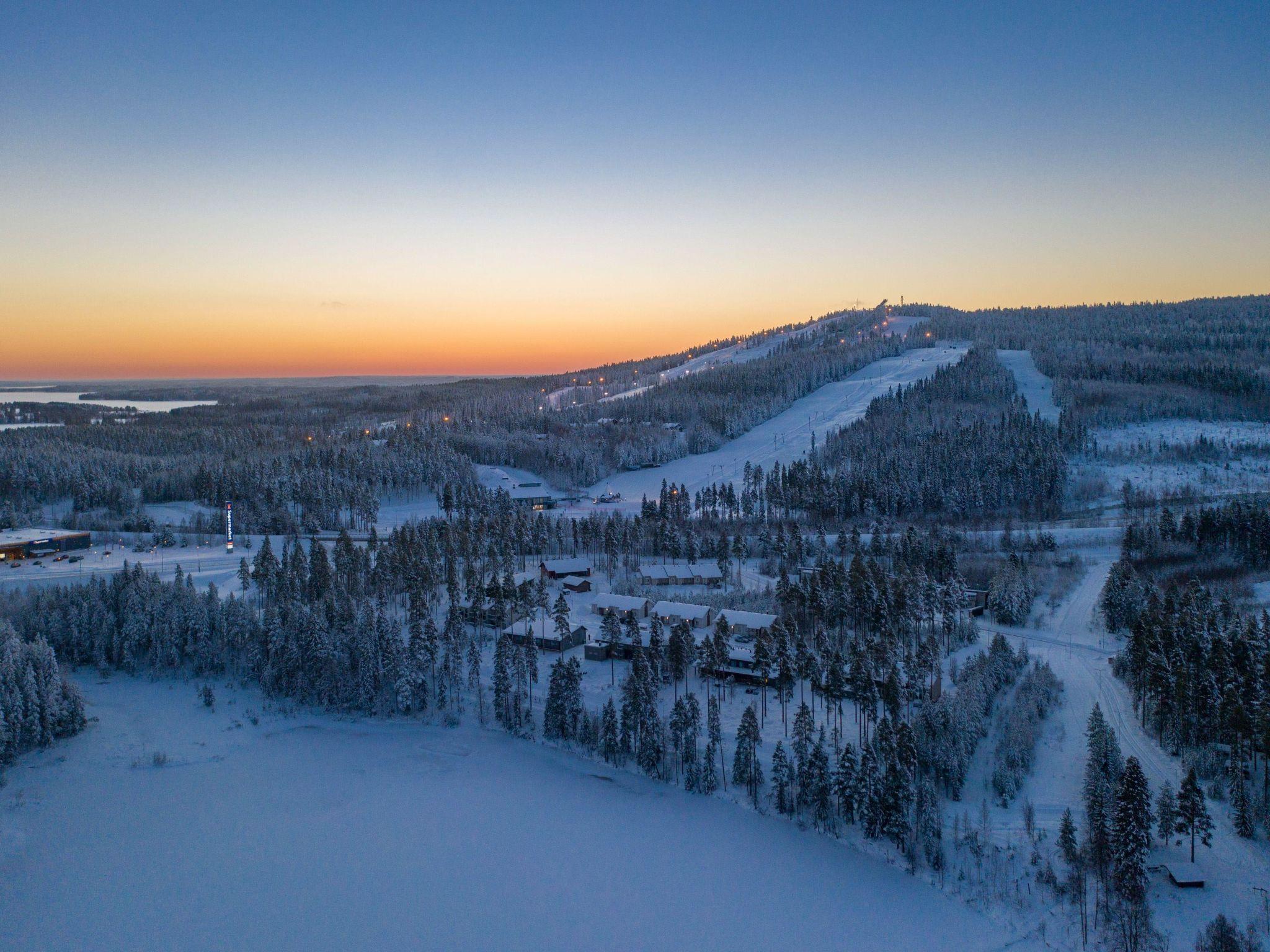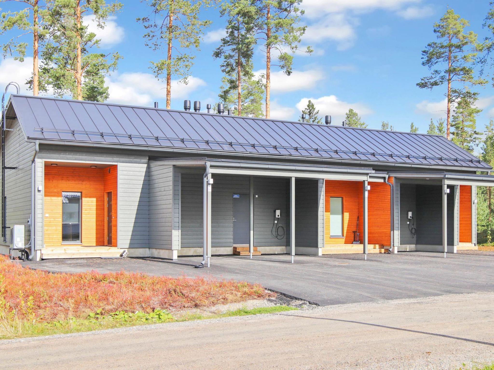 High-quality middle-apartment in three-apartment row house, built in November 2021. Location is ideal; close to Vuokatti ski slopes and area's services. Total area is 72 m², on one floor. Wonderful view to the pond from the spacious living room/kitchen, high windows and glazed 15 m² terrace. Kitchen / dining and living area, three bedrooms with sliding doors, 9 m² bedroom with double bed, 7 m² bedroom with 140 cm wide double bed and 5 m² bedroom with bunk bed (extra bed underneath the bunk bed). Drying room, sauna (electric sauna stove), washroom/WC and separate toilet.