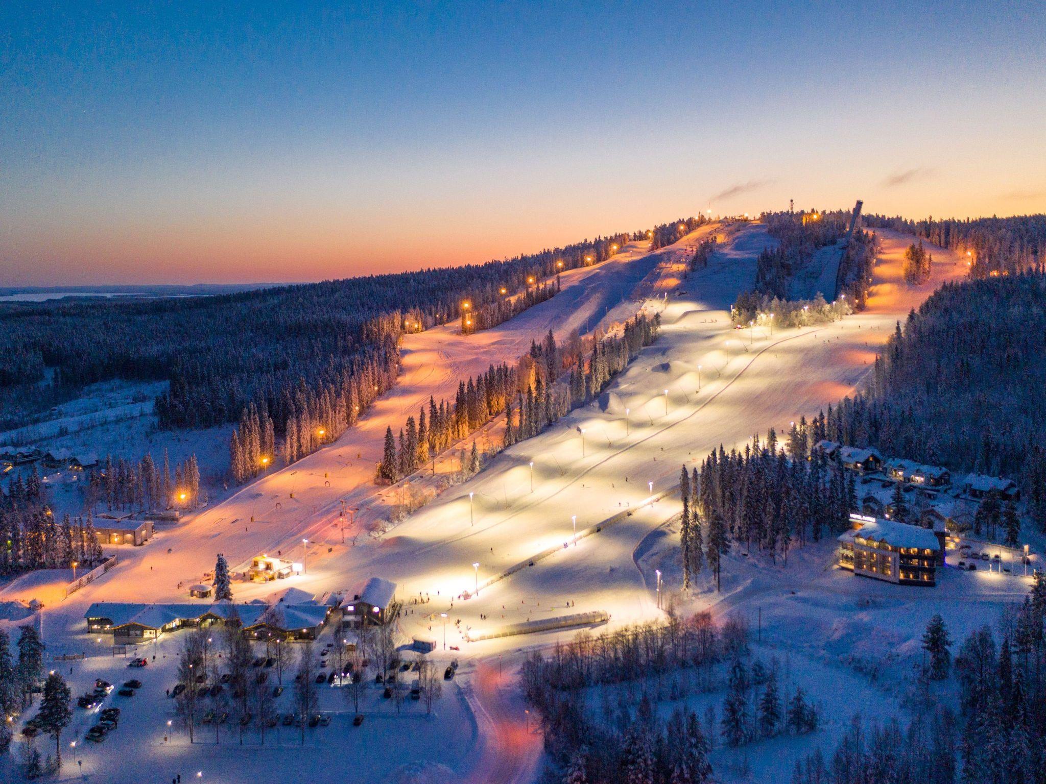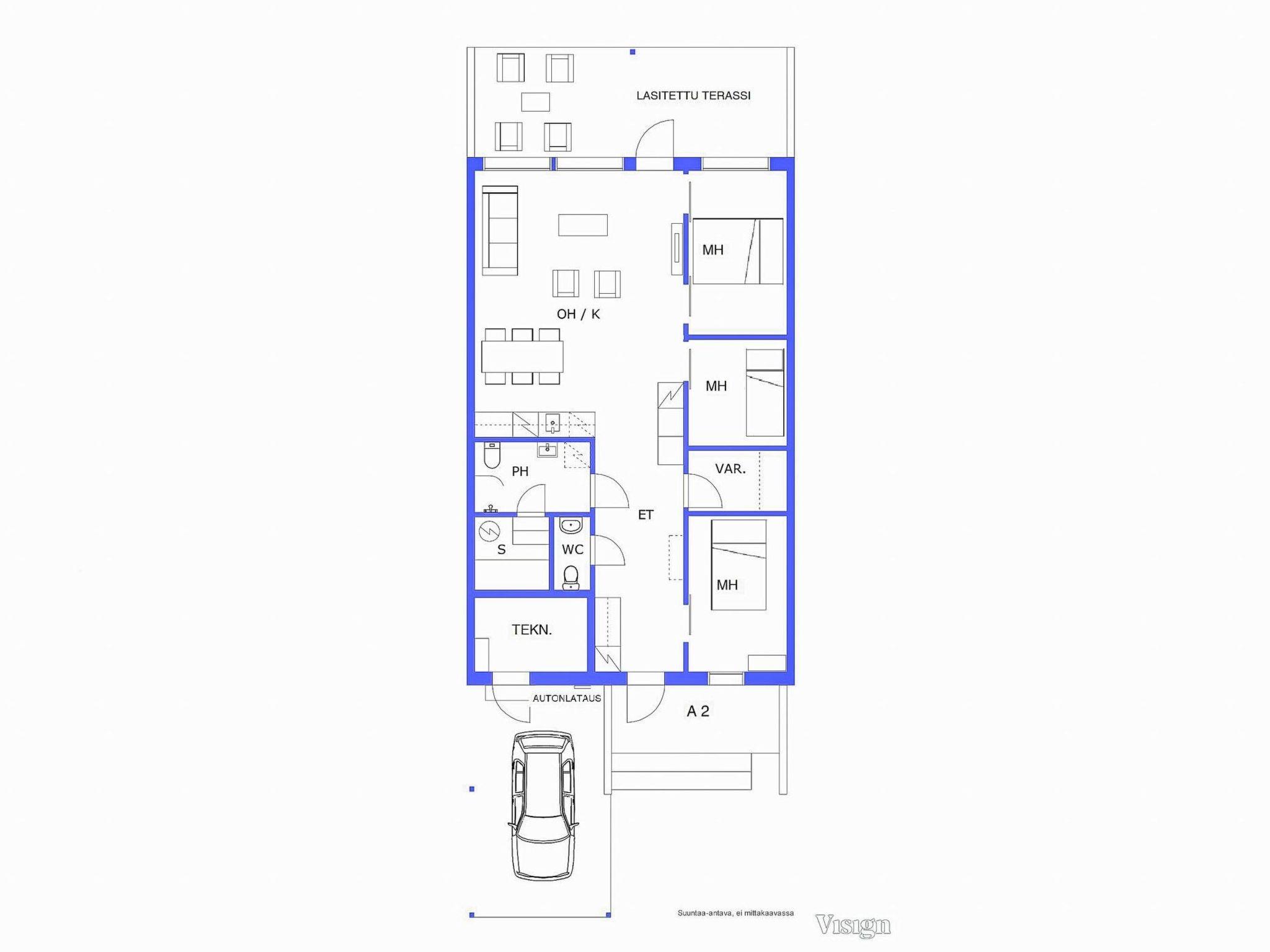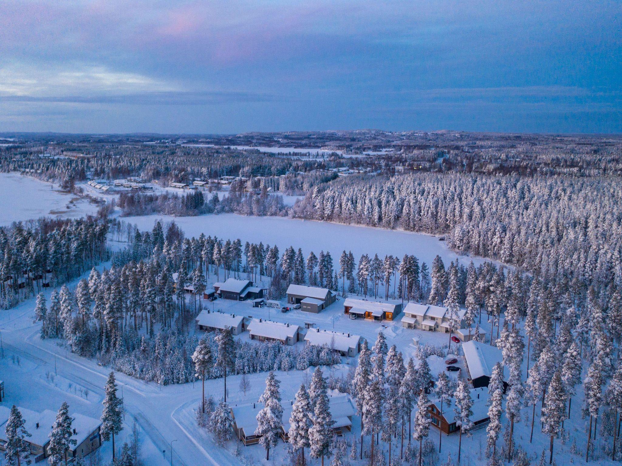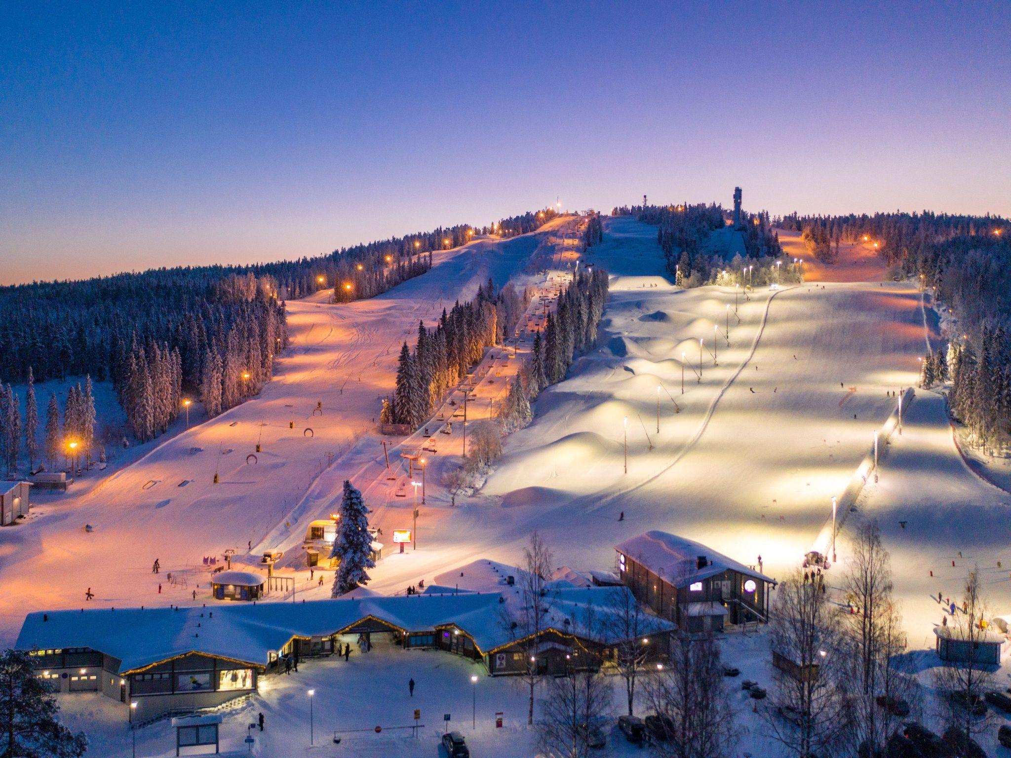 High-quality middle-apartment in three-apartment row house, built in November 2021. Location is ideal; close to Vuokatti ski slopes and area's services. Total area is 72 m², on one floor. Wonderful view to the pond from the spacious living room/kitchen, high windows and glazed 15 m² terrace. Kitchen / dining and living area, three bedrooms with sliding doors, 9 m² bedroom with double bed, 7 m² bedroom with 140 cm wide double bed and 5 m² bedroom with bunk bed (extra bed underneath the bunk bed). Drying room, sauna (electric sauna stove), washroom/WC and separate toilet.