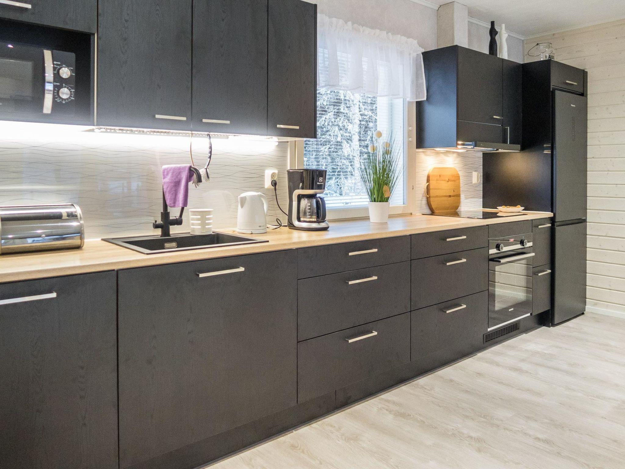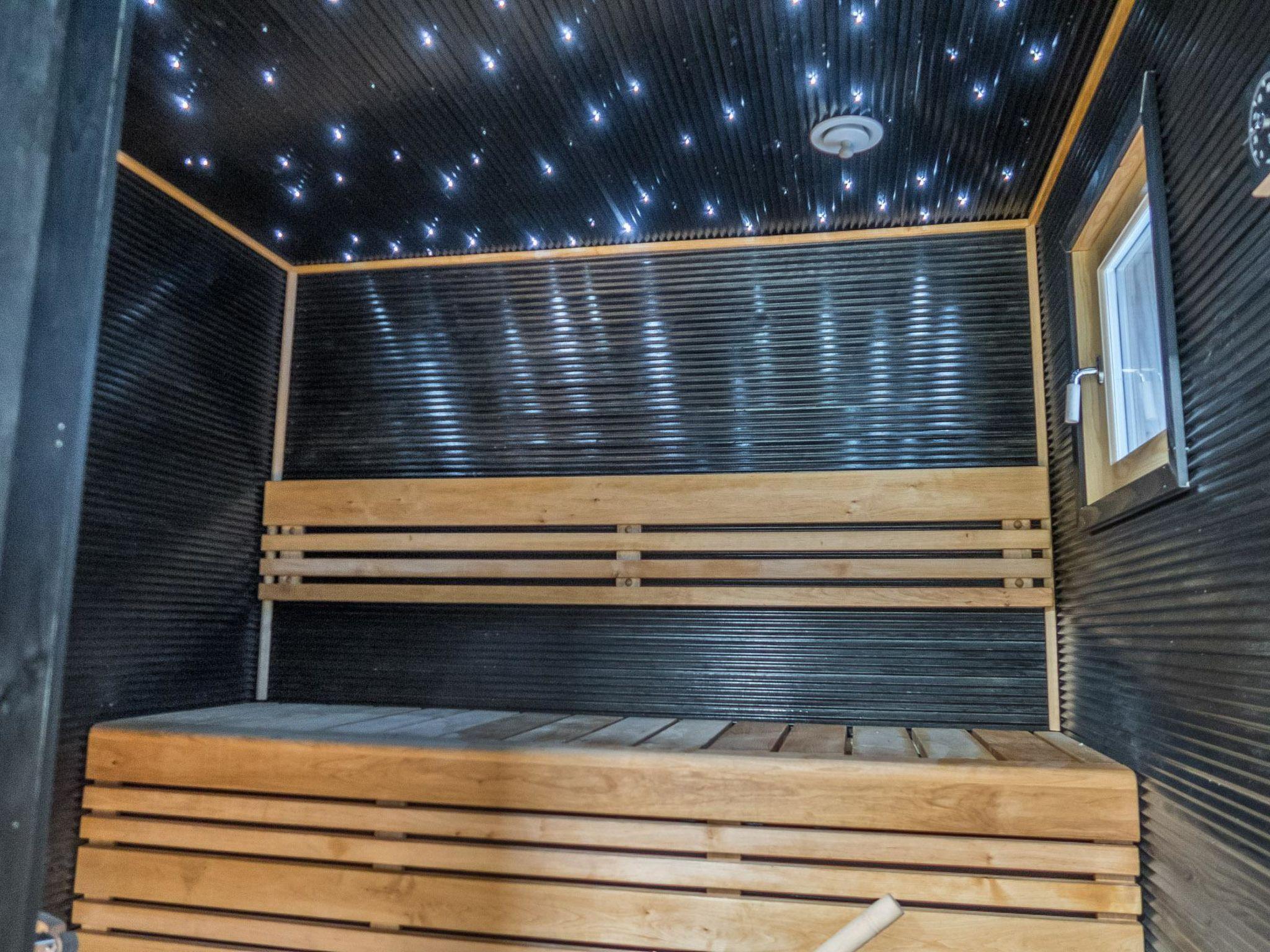 The total area of the villa is 70 m², on one floor. Spacious and bright living room/kitchen, dining set for 6-7 people. Two bedrooms with sliding doors, with double beds and wardrobes. Access from the living room to a spacious covered terrace with furniture and gas grill in the summer. In the living room there are one sofa bed (120 cm) and a folding extra bed (80 x 200 cm). A separate WC, shower and sauna with a twinkling starlight and a Harvia-brand pilar-style electric sauna stove provide atmospheric baths. Fireplace in the living room, kitchen equipment: airfryer, coffee maker, toaster, kettle, etc.