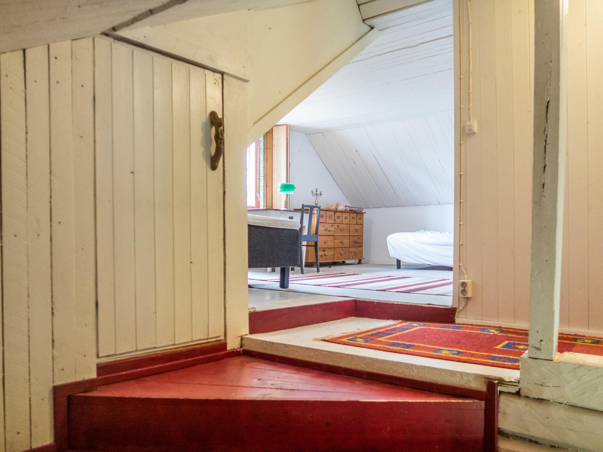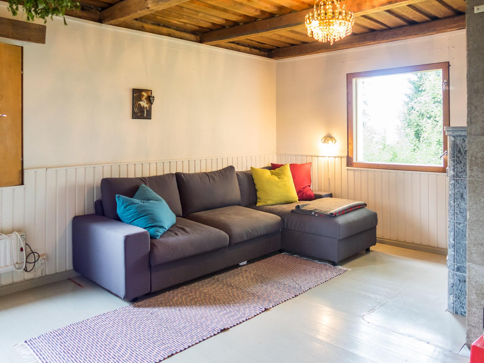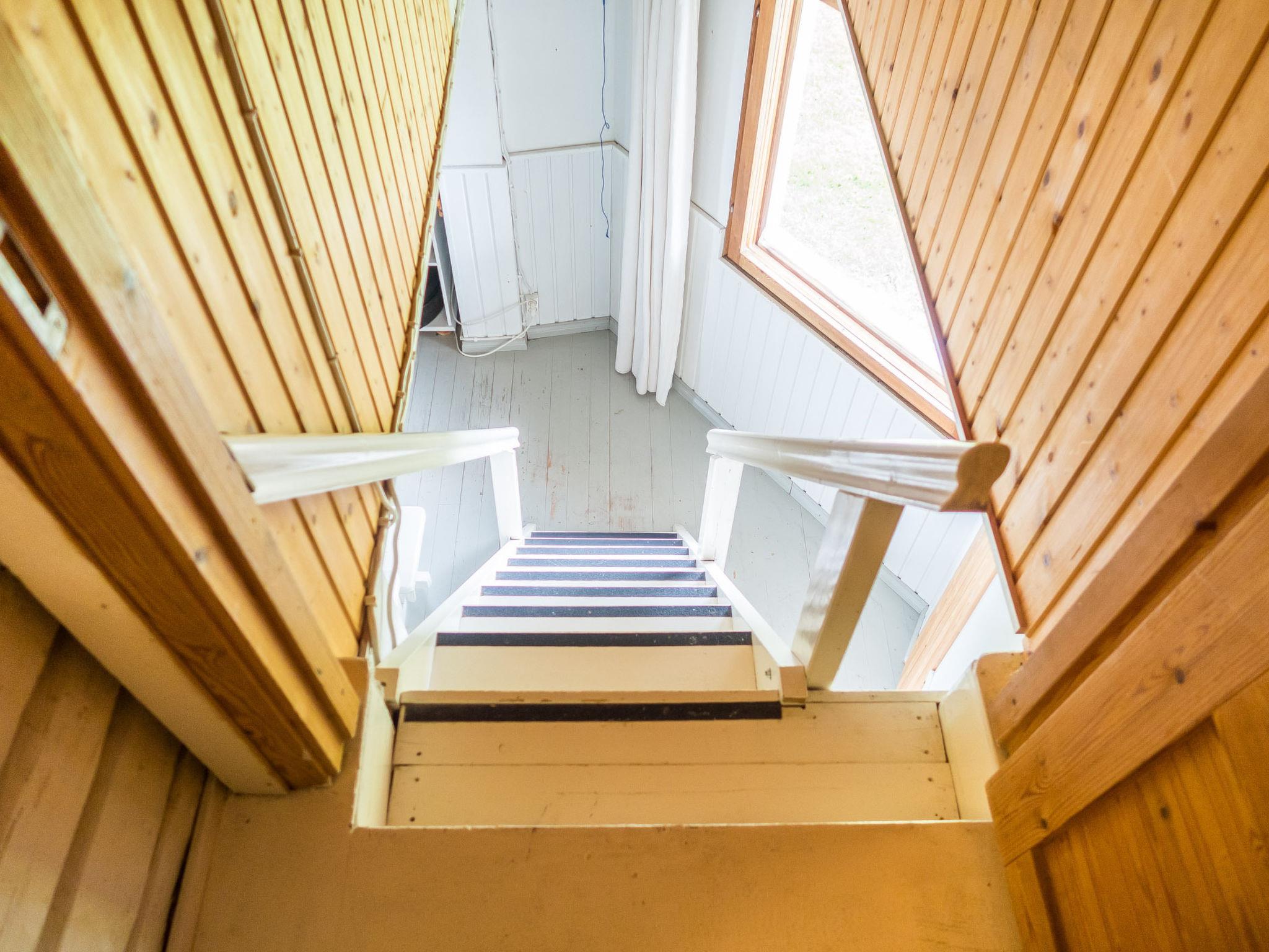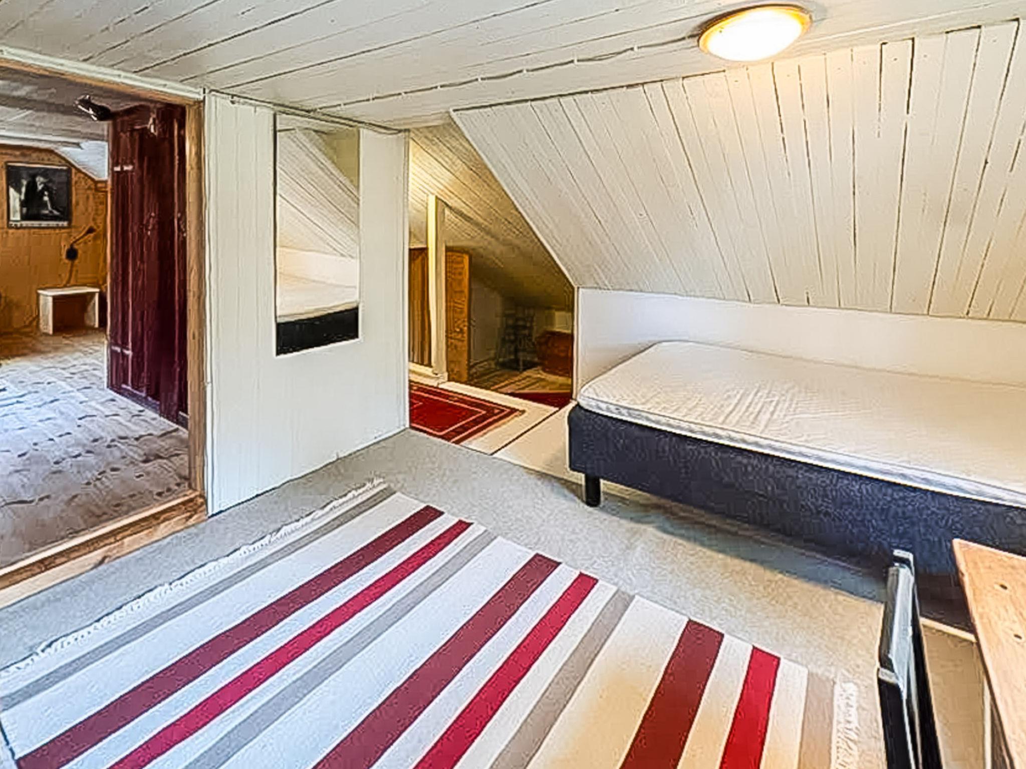 The area of ??the main building is 100 m² on two floors (ground floor 57 m², upper floor 43 m²). A spacious room with a large oven / stove, a dining table for 6-8 people. A sofa and TV in the side room. Access from the kitchen to the upper floor, where there are two bedrooms, both with separate beds for 2. Living room has divan sofa for 1-2 guests in the downstairs living room. In the main building there is a toilet/shower and a small electric sauna.