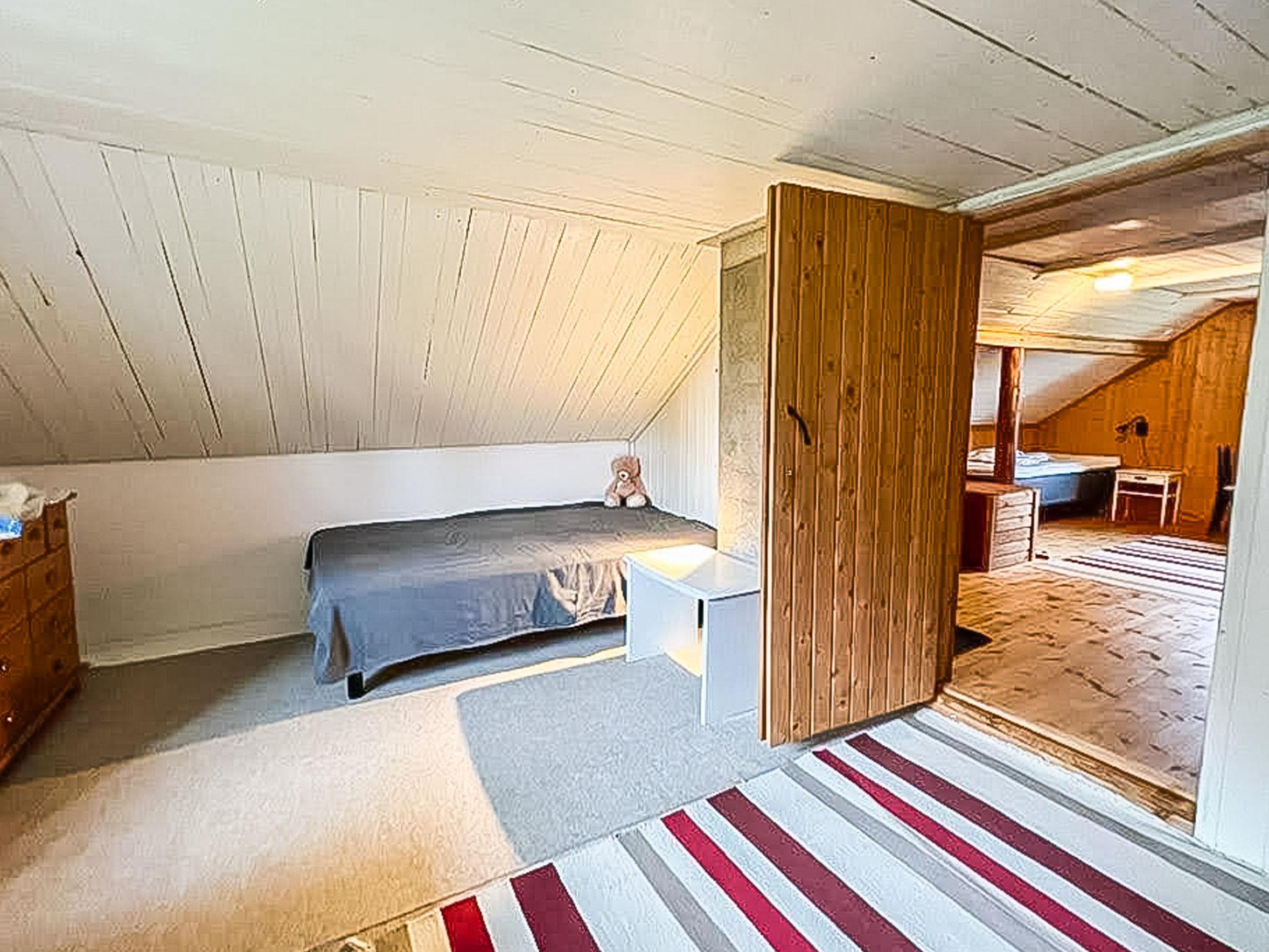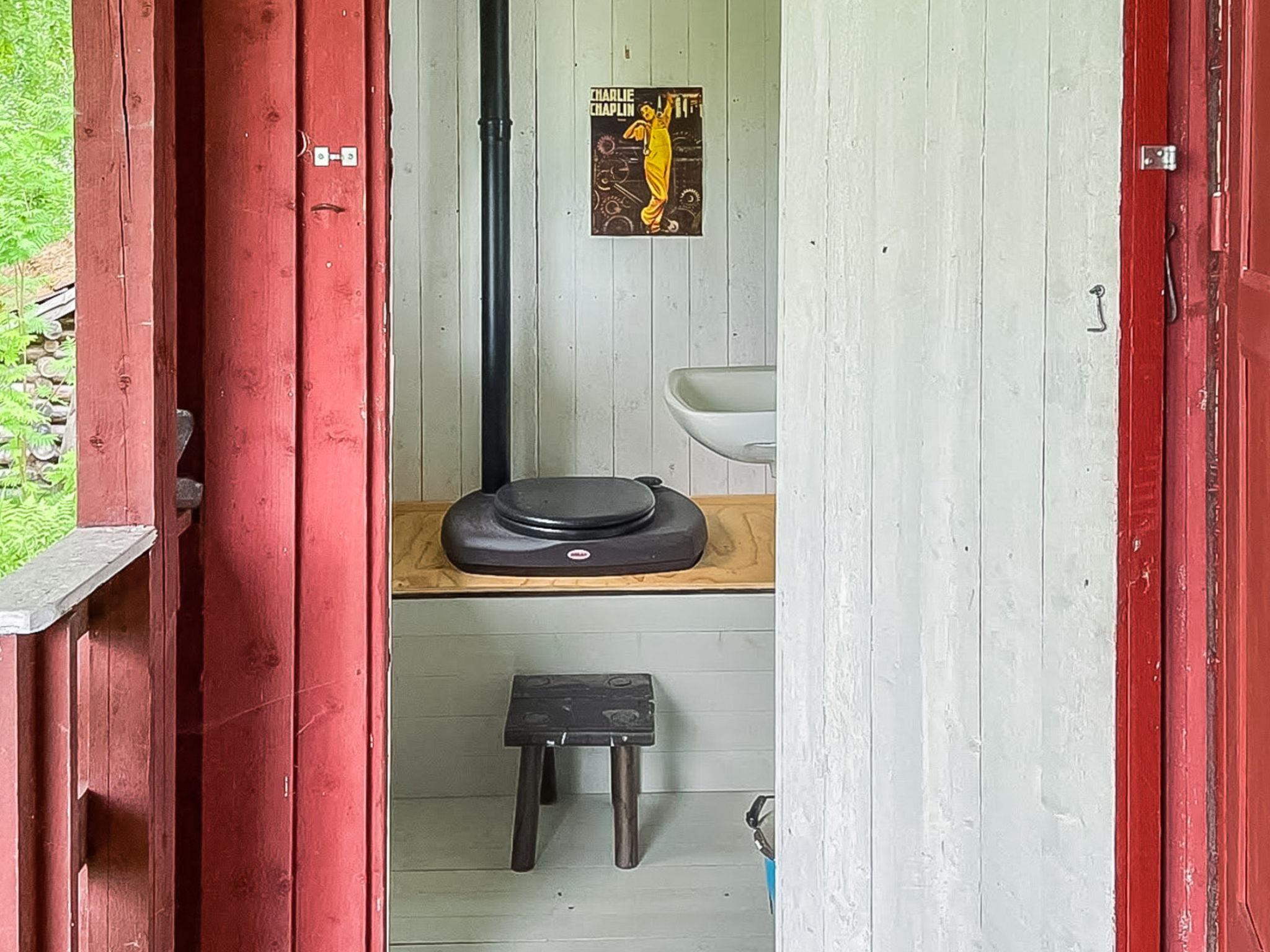 A path to the beach (no access by car), approx. 25 m away, sleeping hut with beds for 4 (2 x double beds). There is an electric heating, and also a small wood stove and a kitchenette. In the same building there is also a wood-heated beach sauna. Carrier water from the lake in the sauna, the water is heated in a boiler (no shower). Biolan toilet in the yard area.