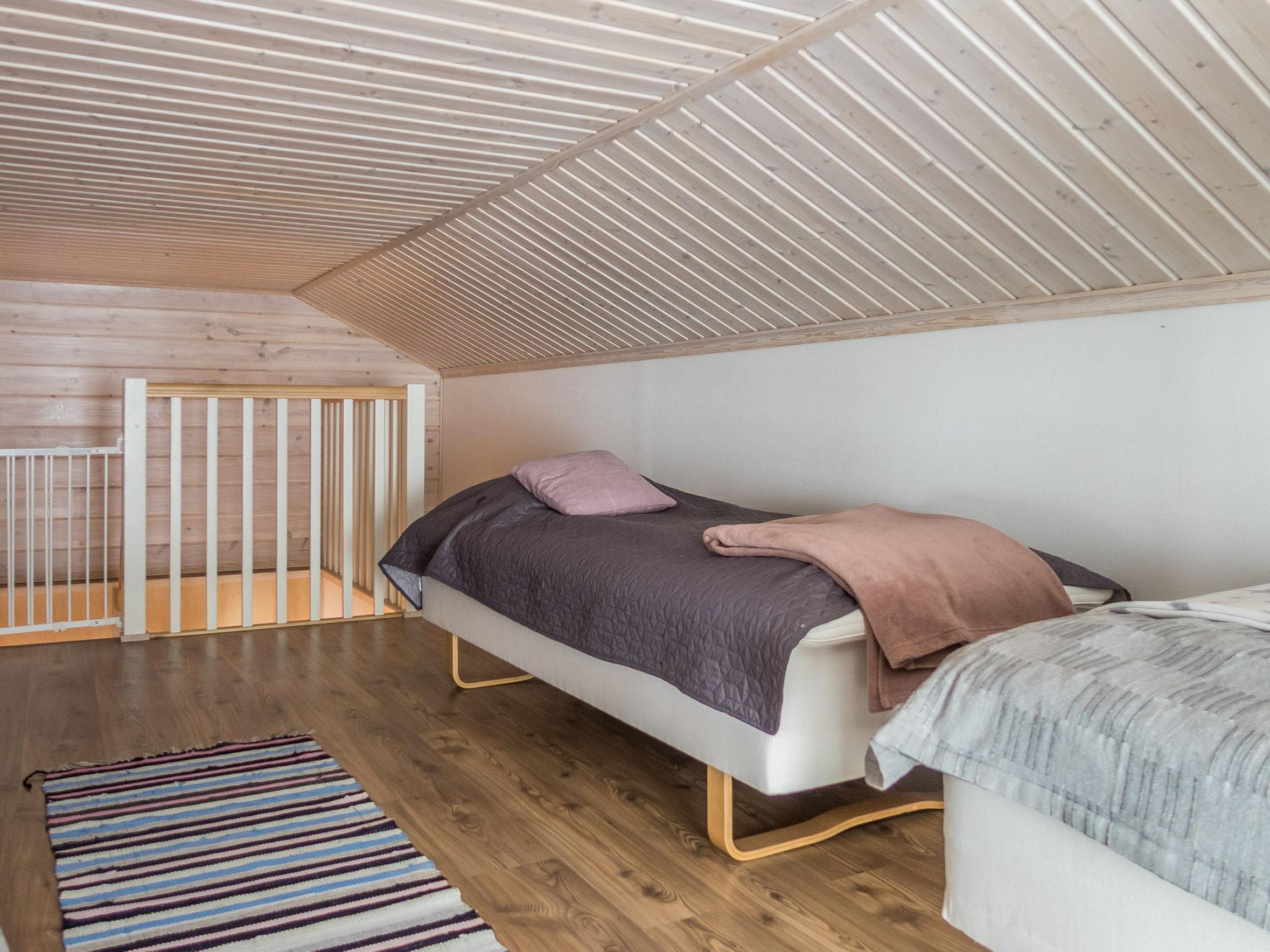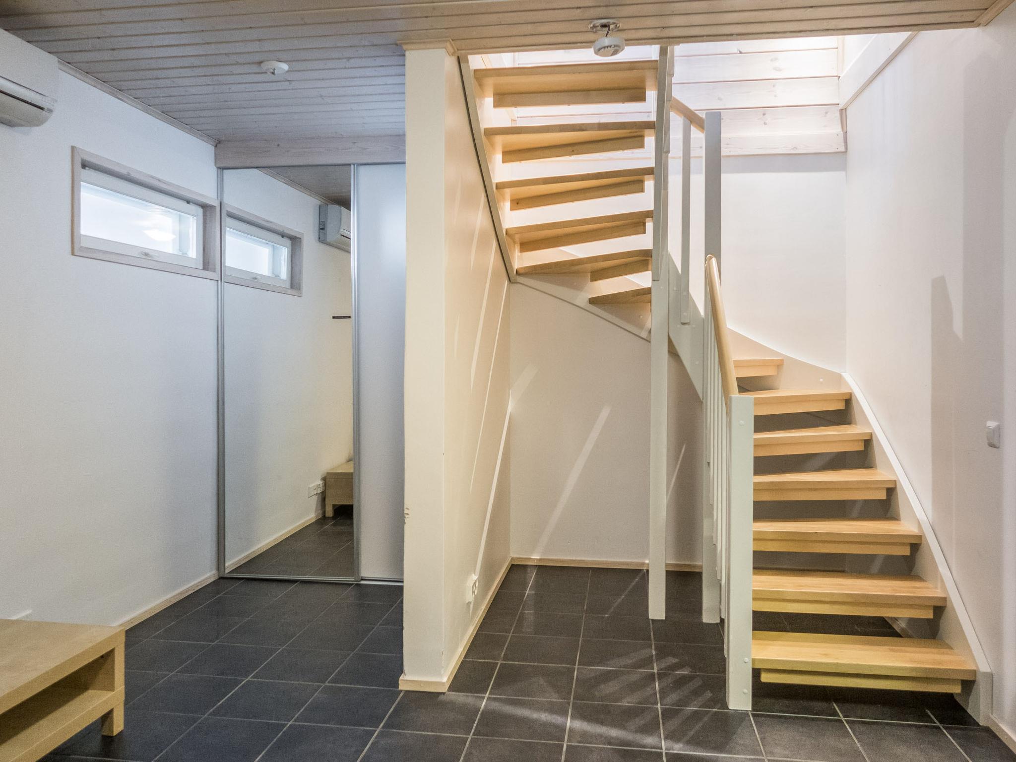 The area of ??the cottage is 110 m² on three floors. On the middle floor there is a spacious kitchen / living room, separate toilet and bedroom with a double bed (160 cm). Normal stairs to the loft (the loft is low, max 160 cm), with 4 separate beds (2 wider and 2 x 80 cm). On the entrance floor there is a hallway, utility room with a sofa bed, a shower, toilet and a sauna with an electric heater. In addition, there is access to a storage / maintenance room.