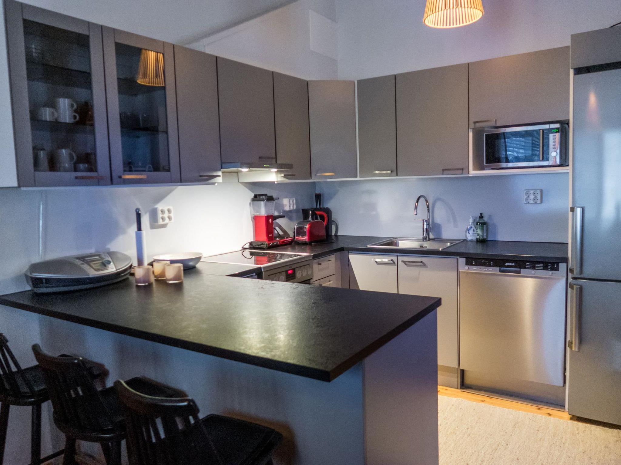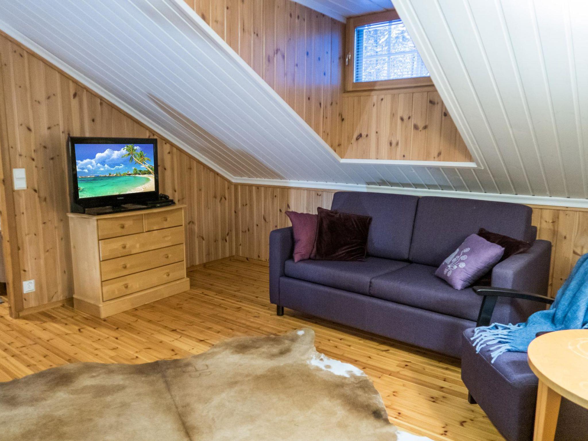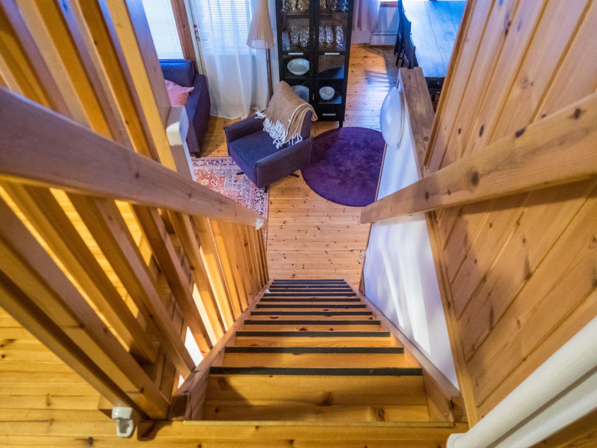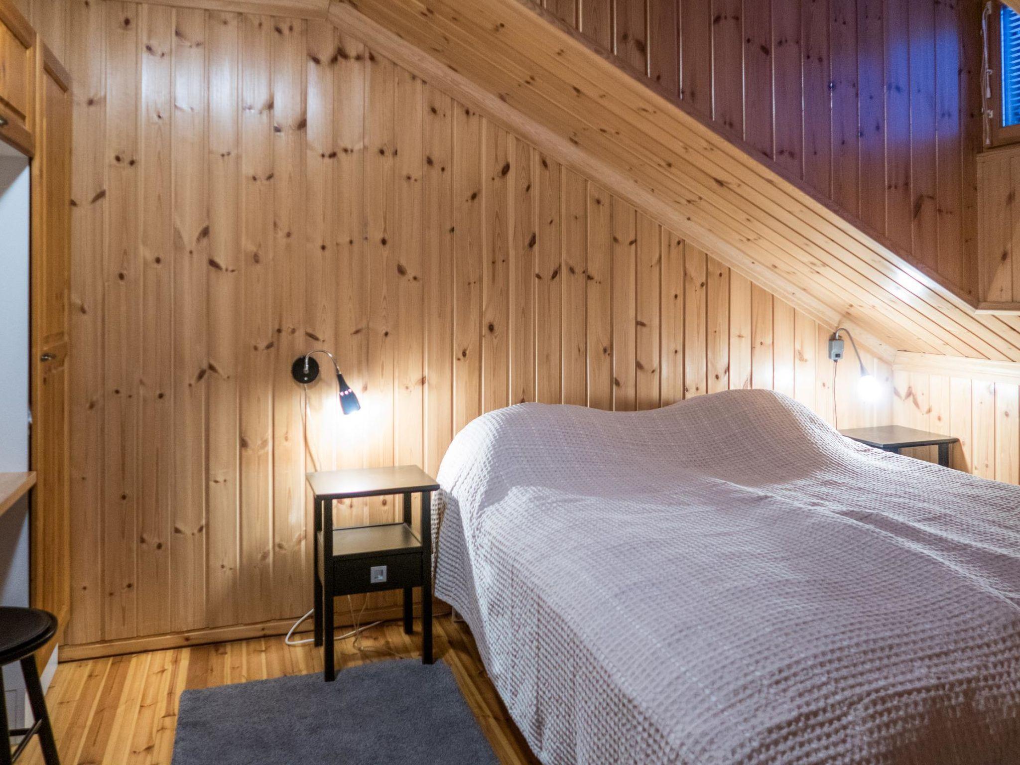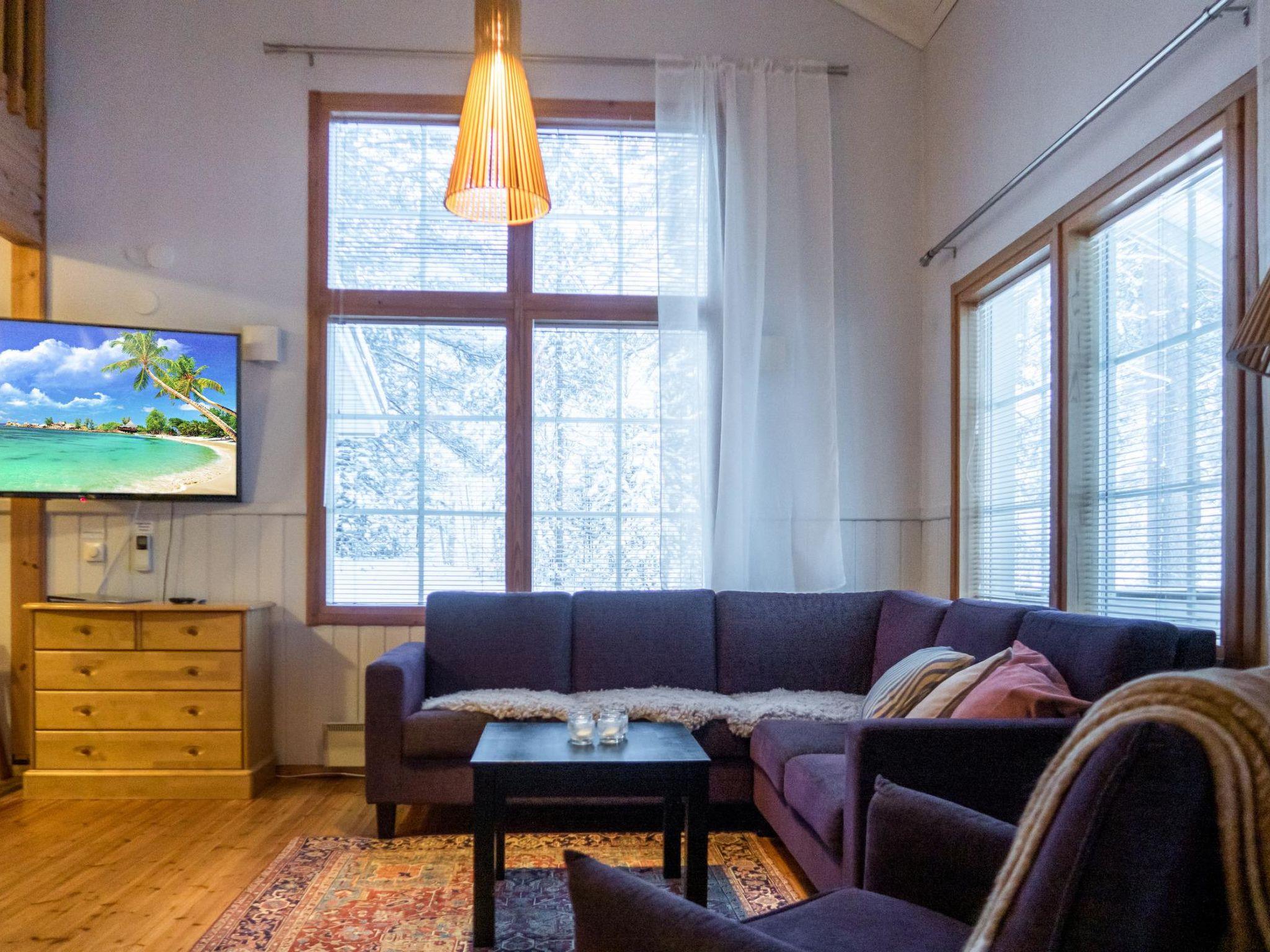 The Katinkulma 1 apartment has a total of 75 m² of space including a loft. Spacious living room / living room with a U-shaped kitchen, dining area with a dining group for 6, a cozy fireplace adds atmosphere. Downstairs, a bedroom with a double bed. Steep stairs to the loft, with a sofa bed for 1-2. Access from the loft to the bedroom with a double bed. Access from the loft to the balcony as well. Shower/wc, sauna (electric heater), porch and garden furniture for 4, view of the pond / Vuokatti slopes from the apartment. Särkinen pond 30 m, shared beach. There is a road between the beach and the holiday home (a ski track in winter).