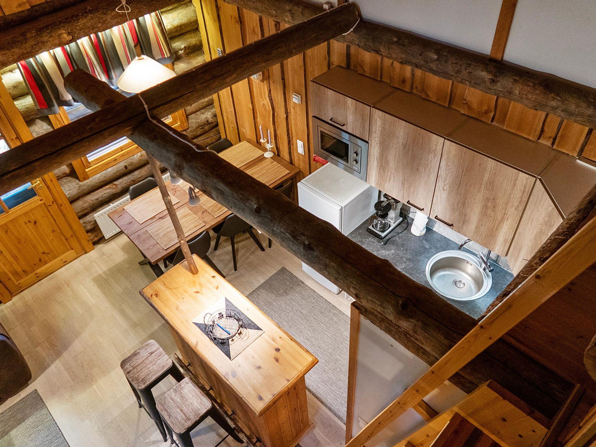 This apartment in semi-detached log house located in Vuokatti ski centre was completed in 1990. Floor area 52 m² + loft 23 m². Combined living room & kitchen (kitchen renovated in 2022), bedroom with twinbed and one child bed. Loft with separate beds for two and twin bed (divided with wall). Extra: two mattress. Sauna (electric heating), washroom and toilet. Terrace.