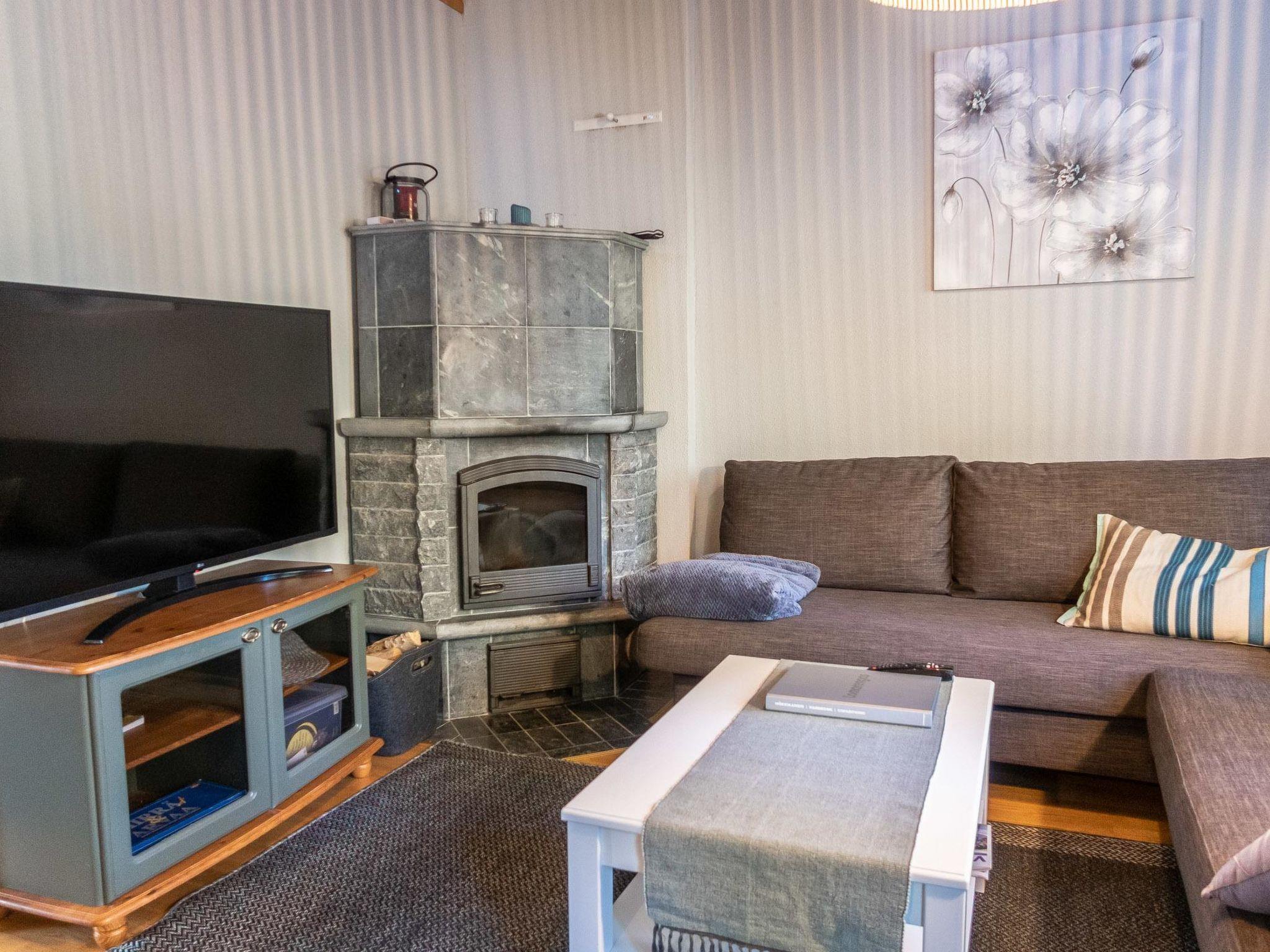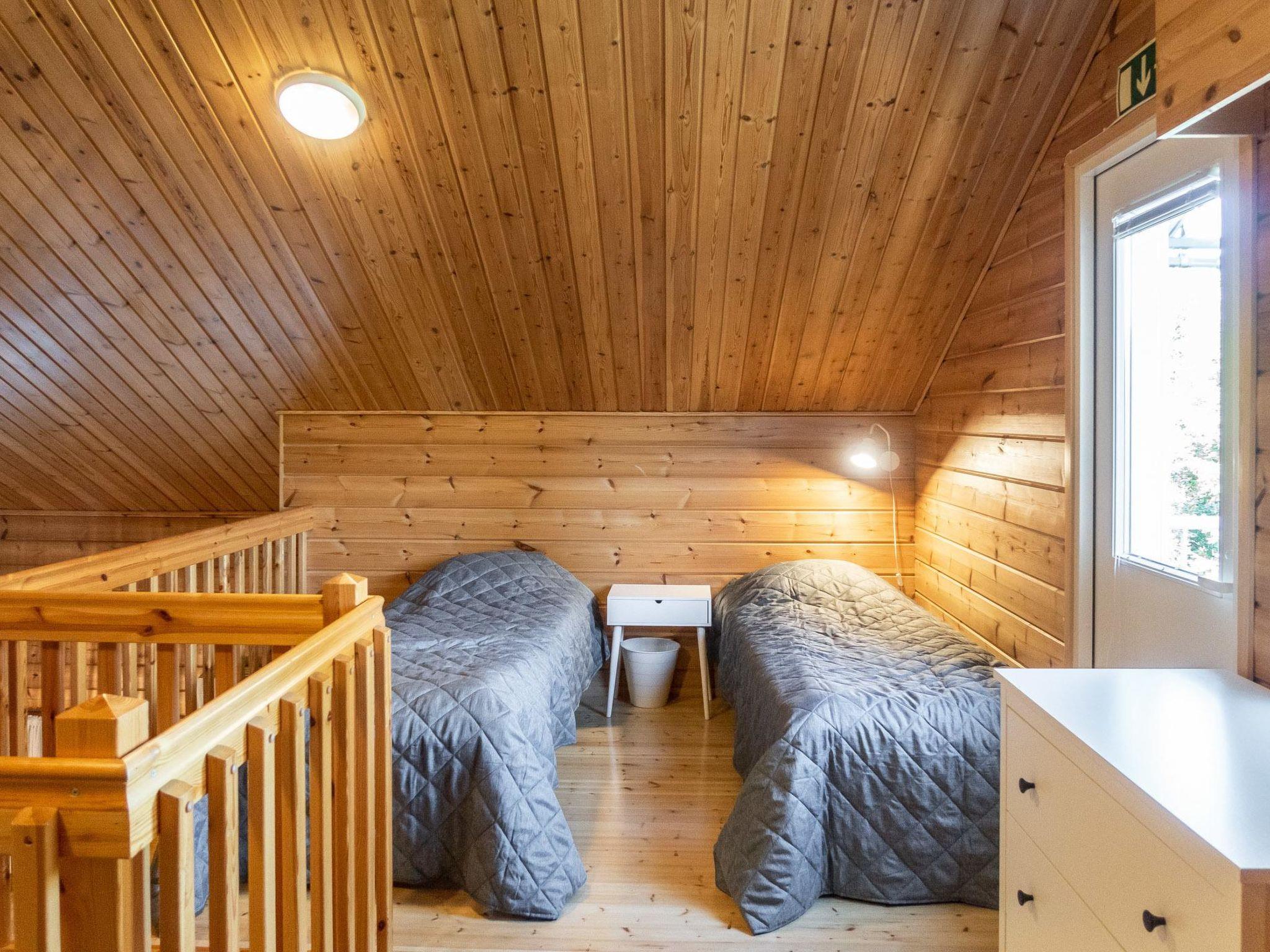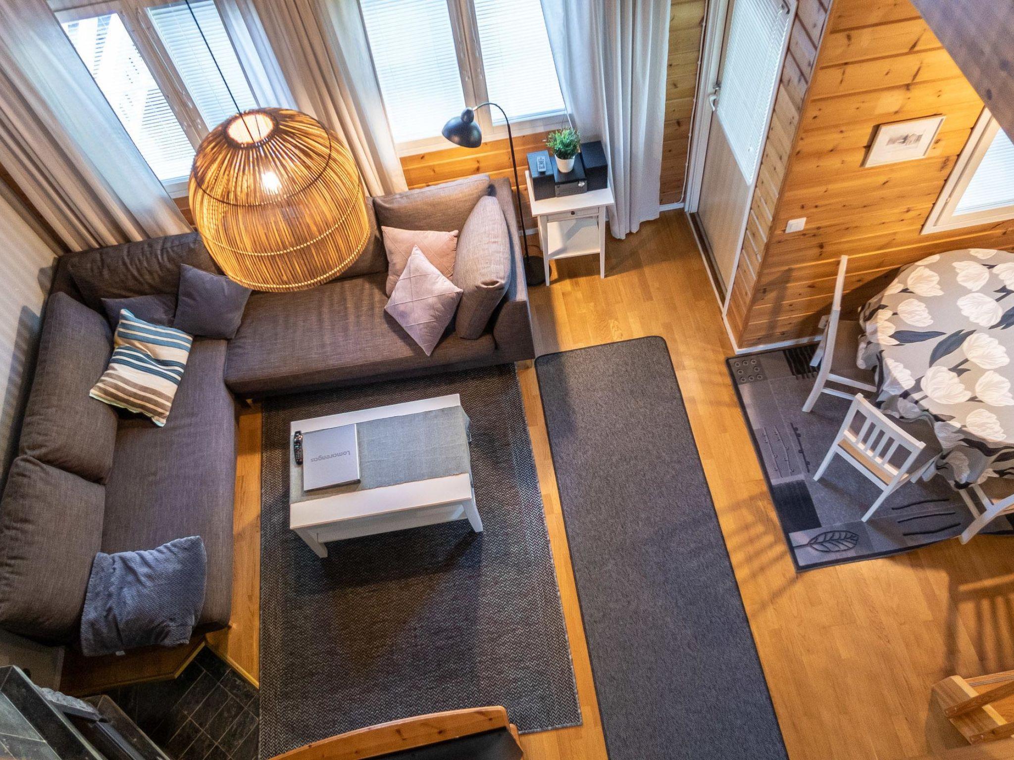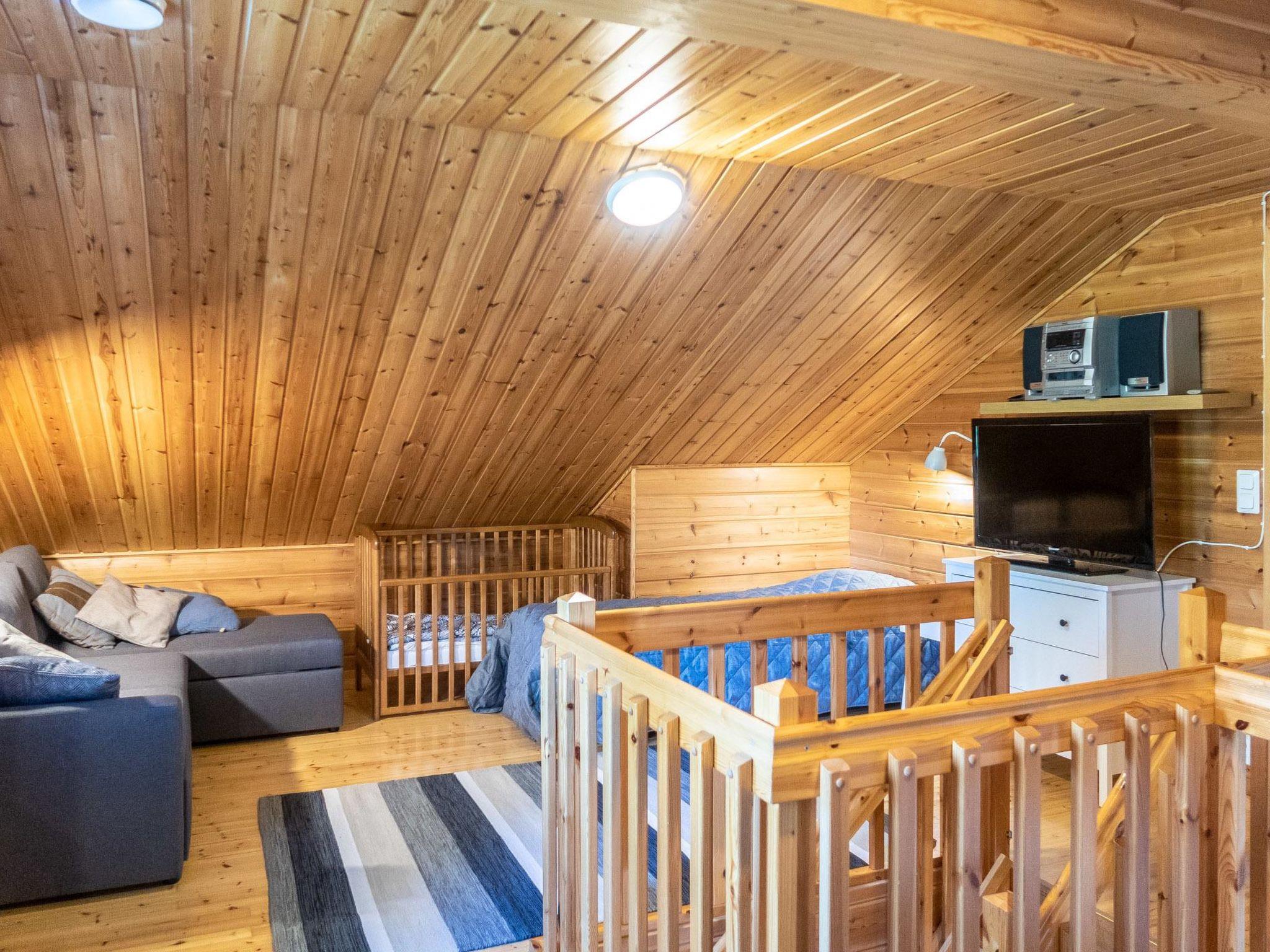This apartment in semi-detached house located in Vuokatti ski centre was completed in 2001. Floor area 60m², loft 35 m². On the ground floor there is combined living room & kitchen, one bedroom with separate beds for two, sauna (electric heating), washroom and toilet. Upstairs there is loft vestibule with separate beds for four and alcove with 120cm bed. Terrace and babrwque (gas, use only on summer time). Fireplace.