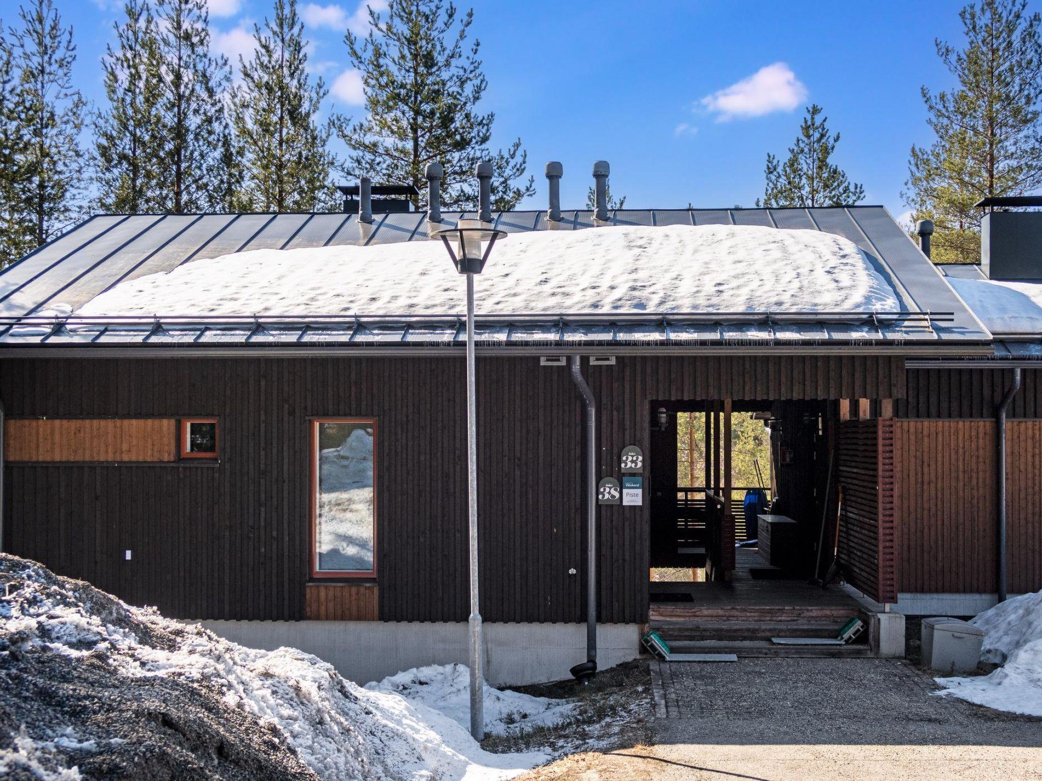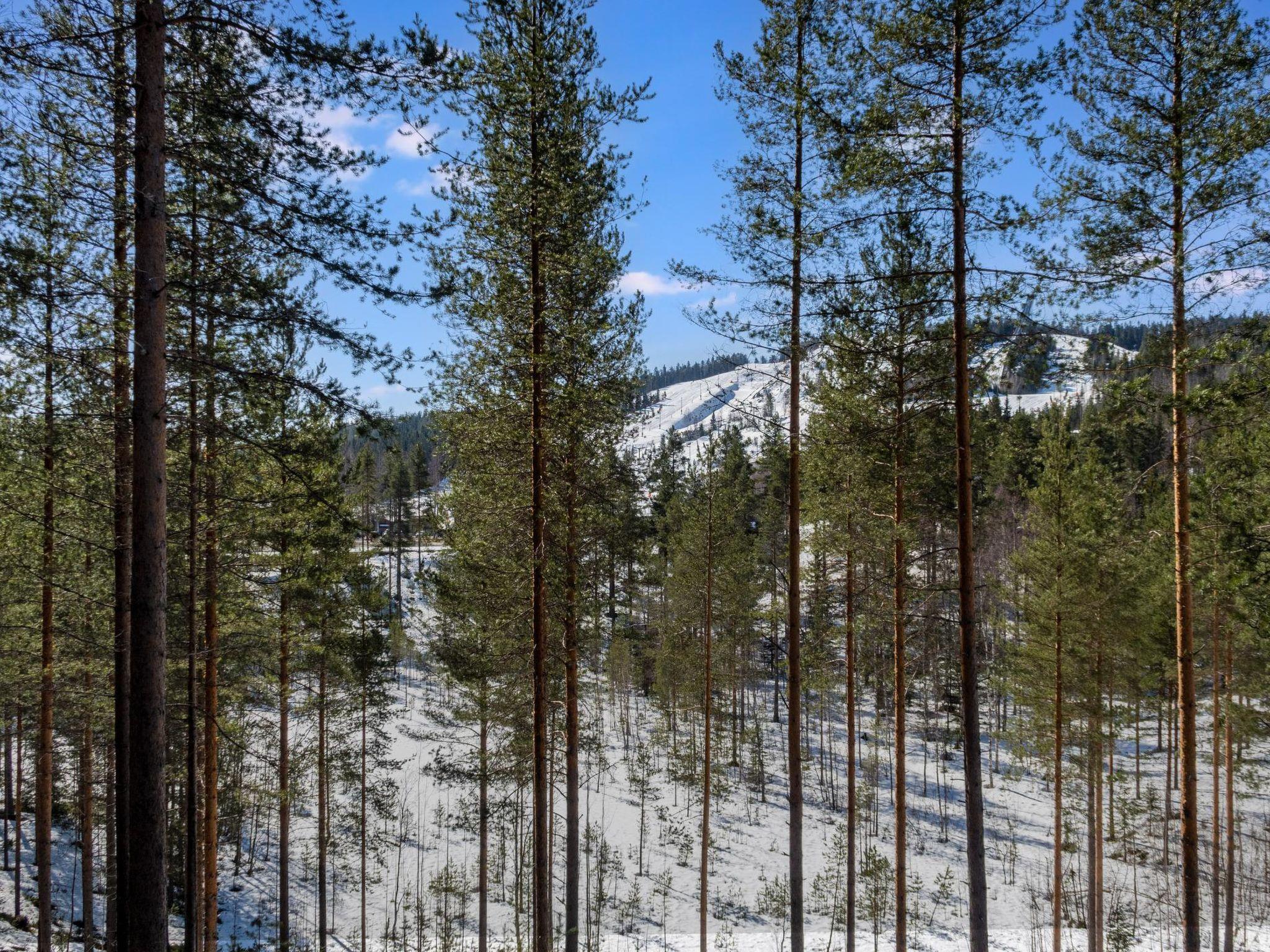 A cozy holiday apartment built in -08 in a two-story cabin house located in the center of Vuokatti. The apartment is located on the lower floor (stairs to the down). The area of ??the apartment is 62 m² on one level - a kitchen-living room with a sofa bed for 1-2 guests, a dining area for 6 and a light fireplace. Sleeping areas in two bedrooms, one with a double bed (180cm), and the other with separate beds for two (90cm). Sauna (electric stove), shower/toilet and separate toilet. Access to the balcony from the living room, with patio furniture for 4. The apartment has a view of the slopes of Vuokatti, facing the forest.
