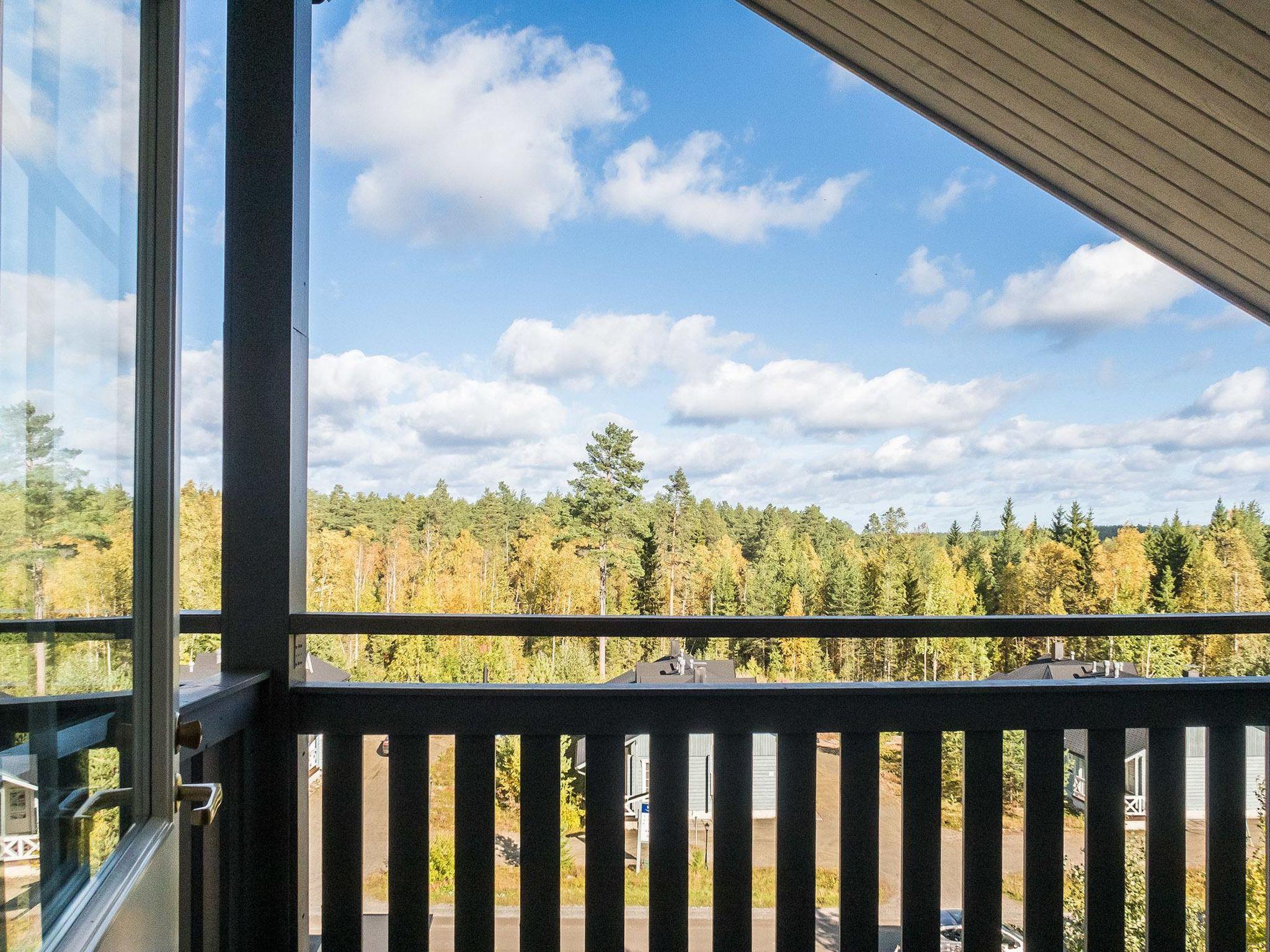 This apartment in semi-detached house, located in Vuokatti ski centre, was completed in 2008. Floor area 67,5 m² (loft 27 m²). Three floors in this house, apartment in floors 2 and 3, steps to apartment. Both floors with terrace. In the first floor a warm storage. On the ground floor (2. floor) in apartment there is combined living room & kitchen, a bedroom with twin bed, sauna (electric heating), washroom and toilet. Upstairs (3.floor) in the loft there is one bedroom with three separated beds and a child´s bed. Also two mattresses to use at extra bed.