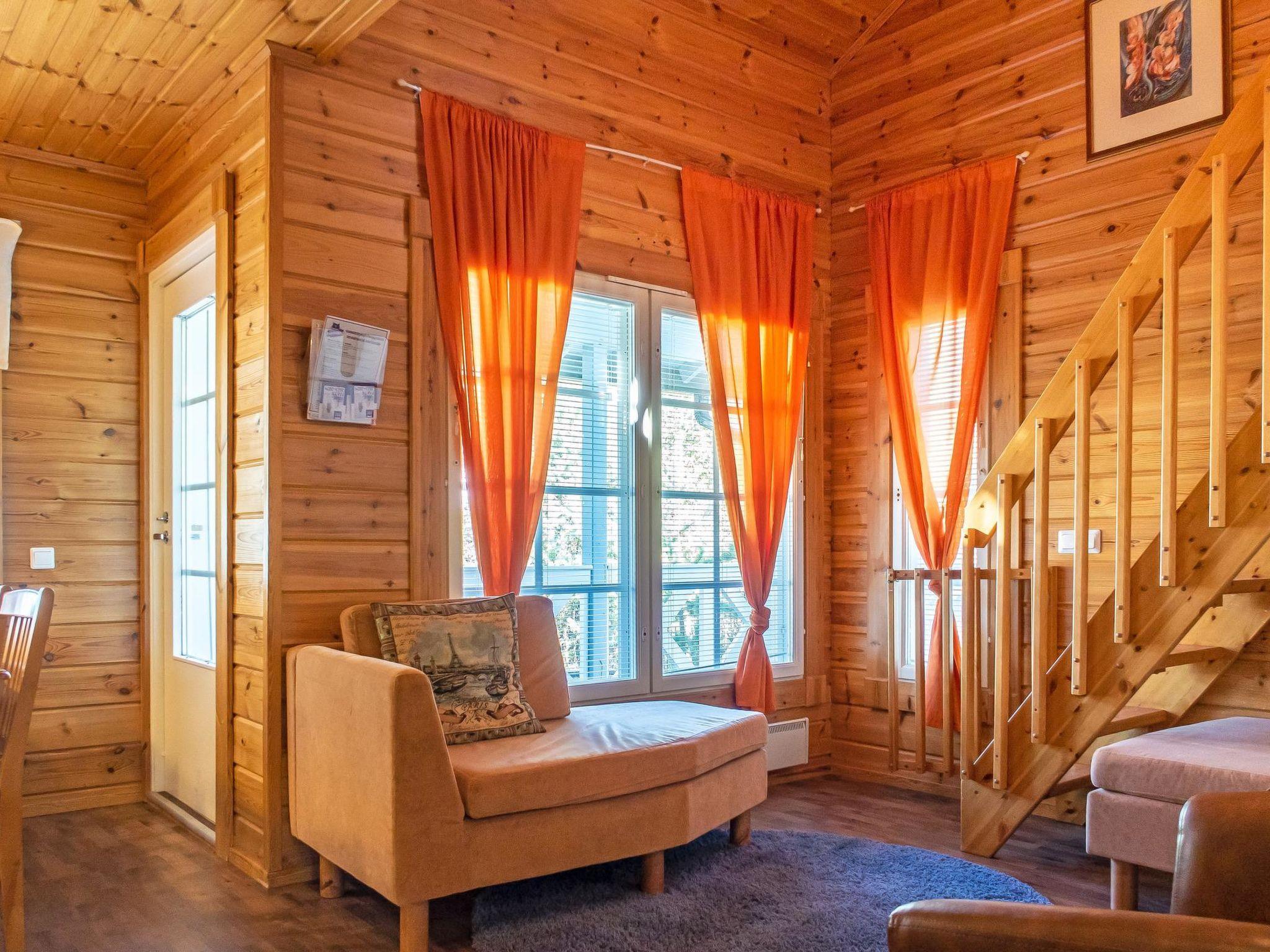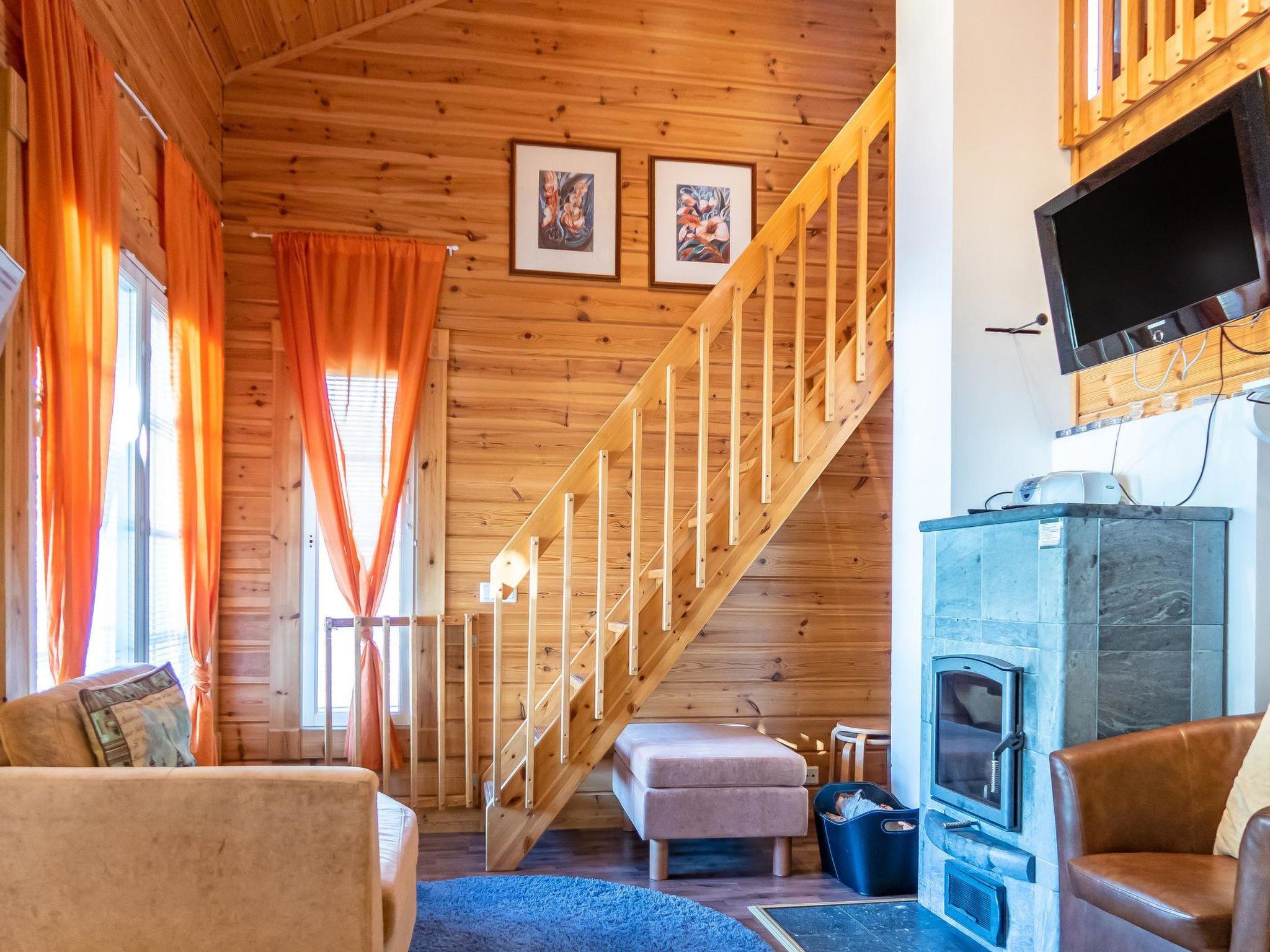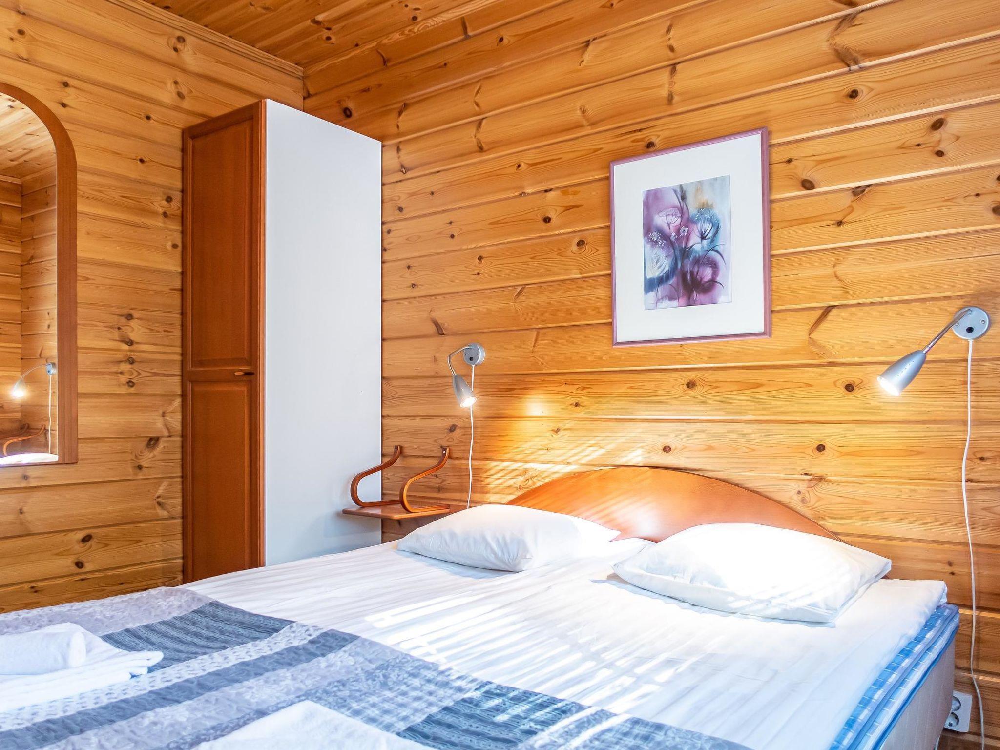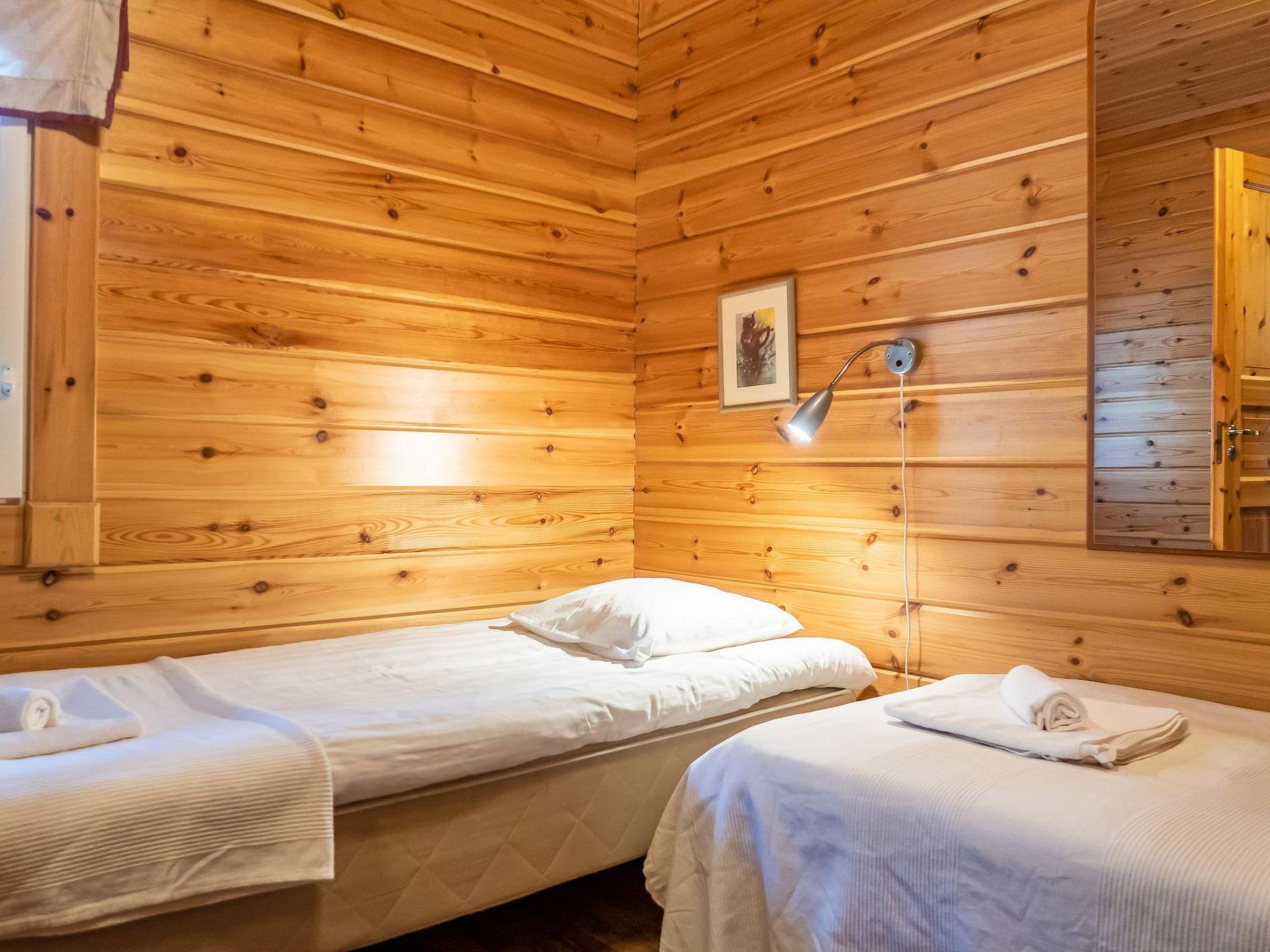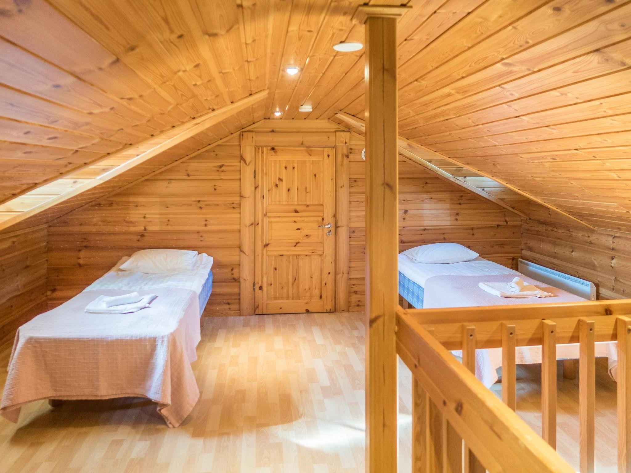 This apartment in log semi-detached house located in Vuokatti ski centre was completed in 2002. Combined living room & kitchen, two bedrooms, one with twin bed, the other with separate beds for two, sauna (electric heating), washroom and two toilets. Loft with 2 beds + 2 folding extra beds.