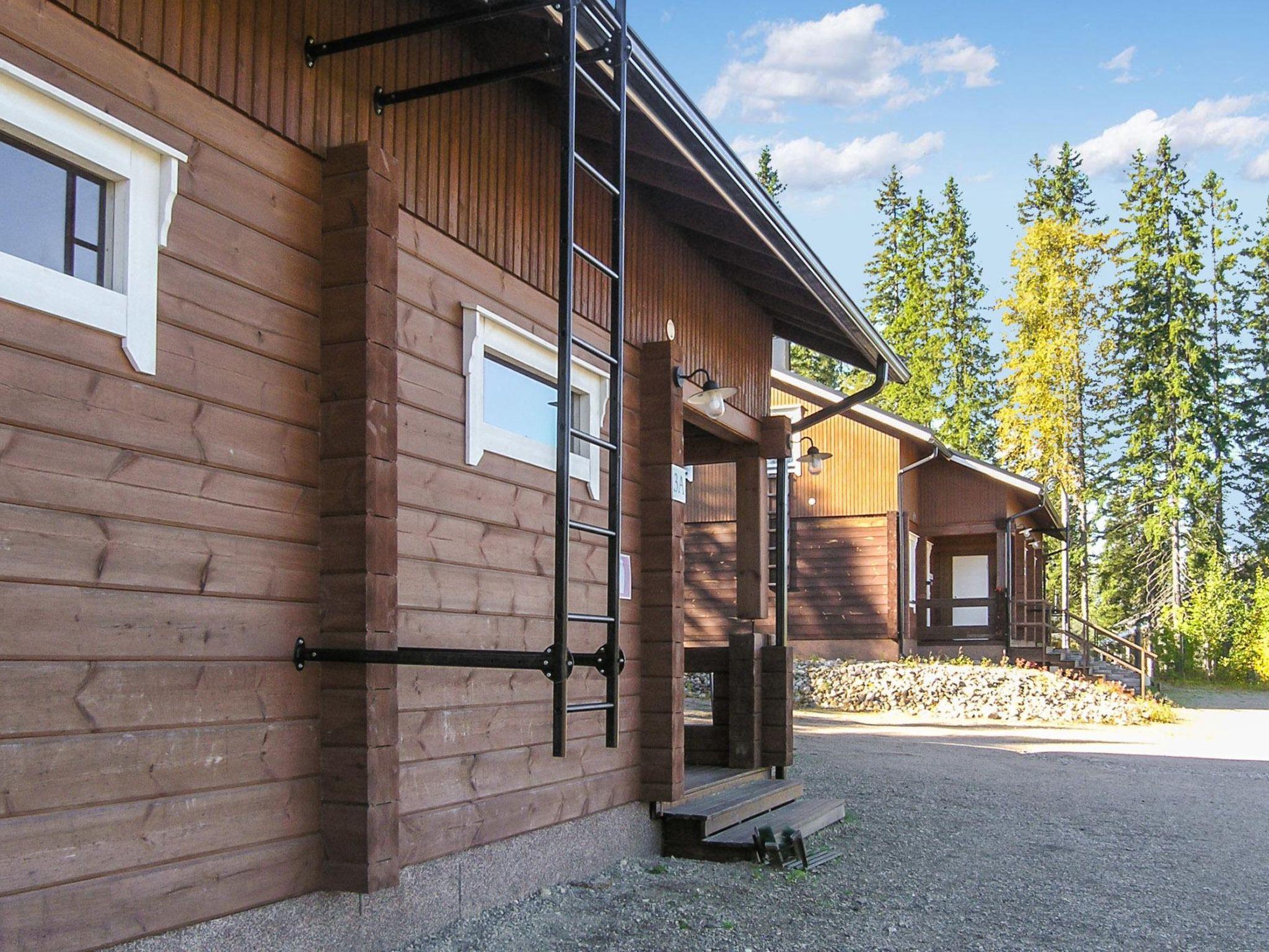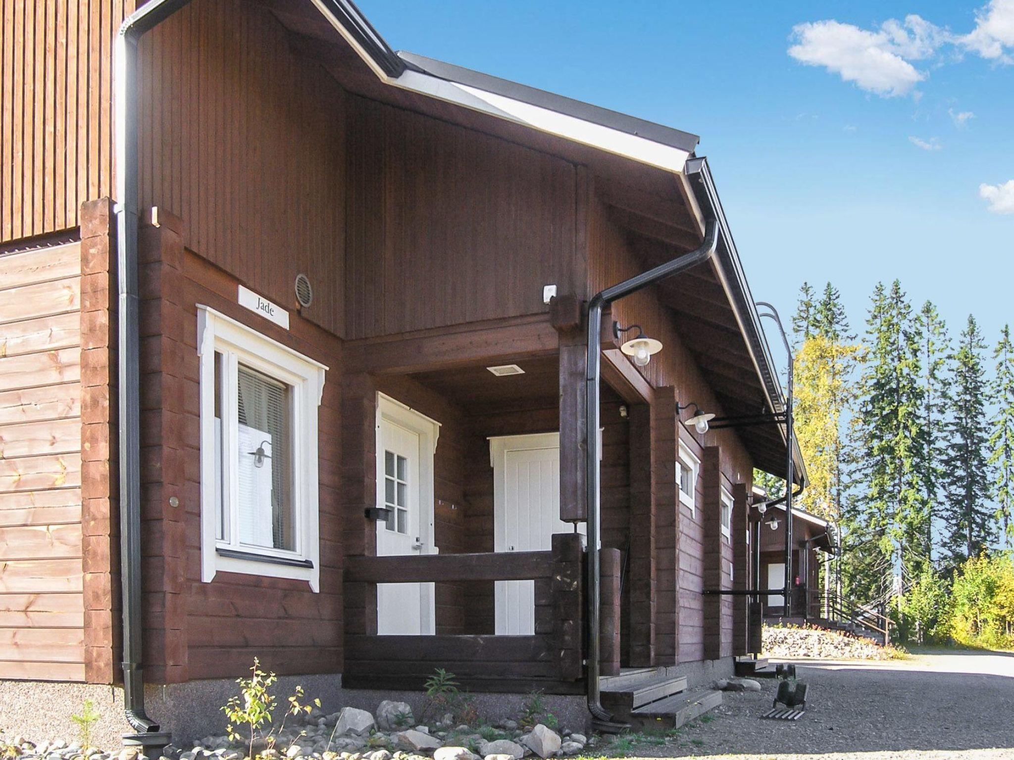 This luxury apartment in log semi-detached house located in Vuokatti ski centre was completed in 2007. Floor area 84.5m². On the ground floor there is combined living room & kitchen, with sofabed for two, bedroom with twin bed, sauna (electric heating), washroom and toilet. Upstairs is sofabed for 1-2 and two bedrooms; the other with separate beds for two, and other with sparate beds for three, shower/toilet.