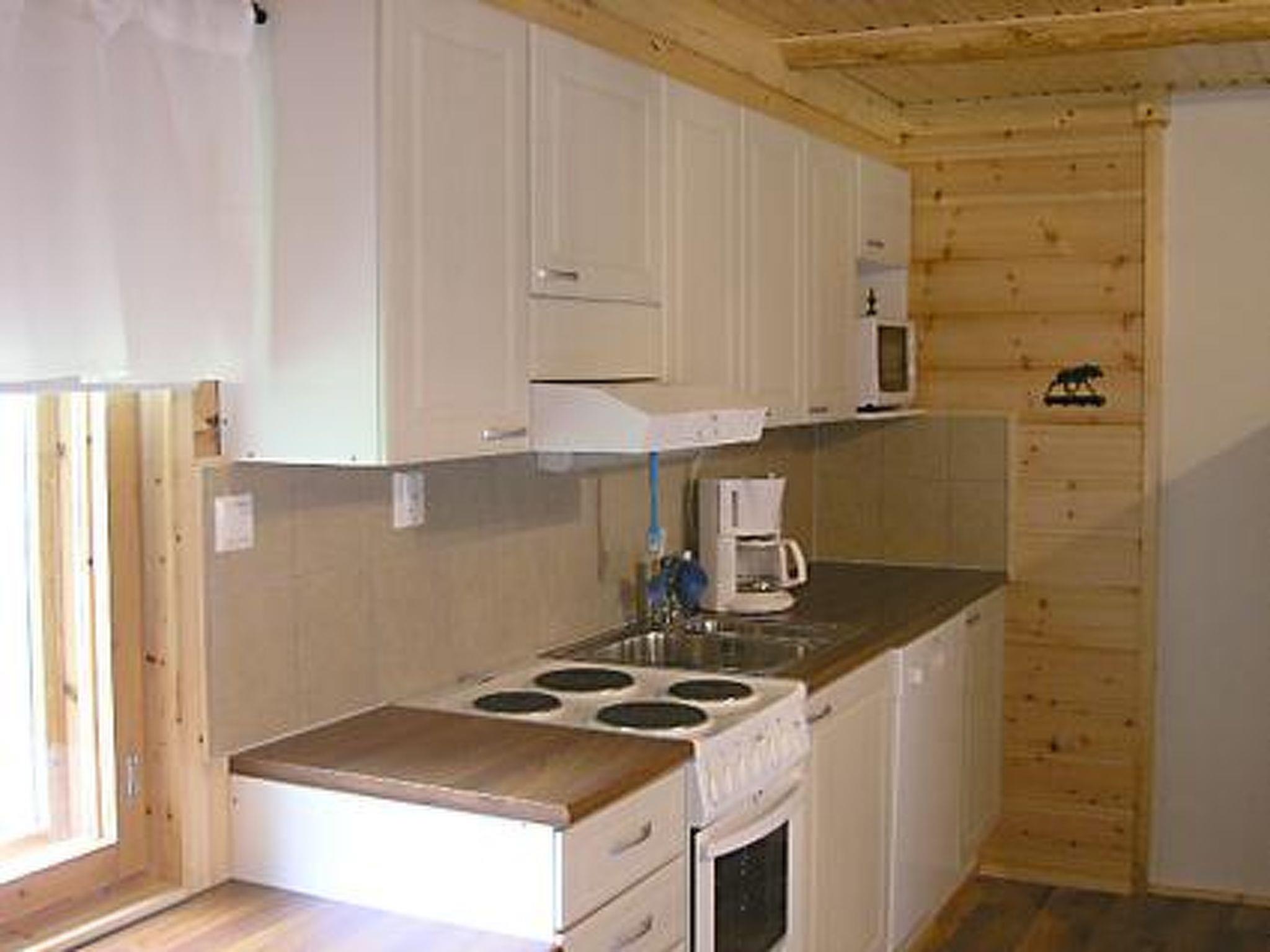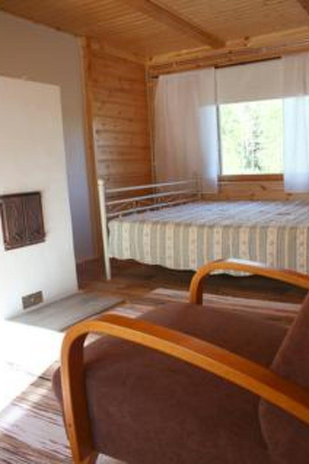 55 km south-west of Kuusamo, L.Kostonjärvi 300 m (length 20 km, width 10 km), path to shore, shallow shore, hard moraine/rock bottom, own boat. Shore exclusively for house. Log house, faced with wooden boards, interior panelling, built 1949, completely renovated and extended 2011. Living room/kitchen convertible sofa/bed, bedroom 2 double bed, closed sleeping loft 2 bes (steep stairs to loft, area 9,5 m², low room height), sauna, washroom/WC, hall, open porch. Large living room with baking oven, bedroom with small tall oven. Cot and baby feeding chair on request. Grill tepee.