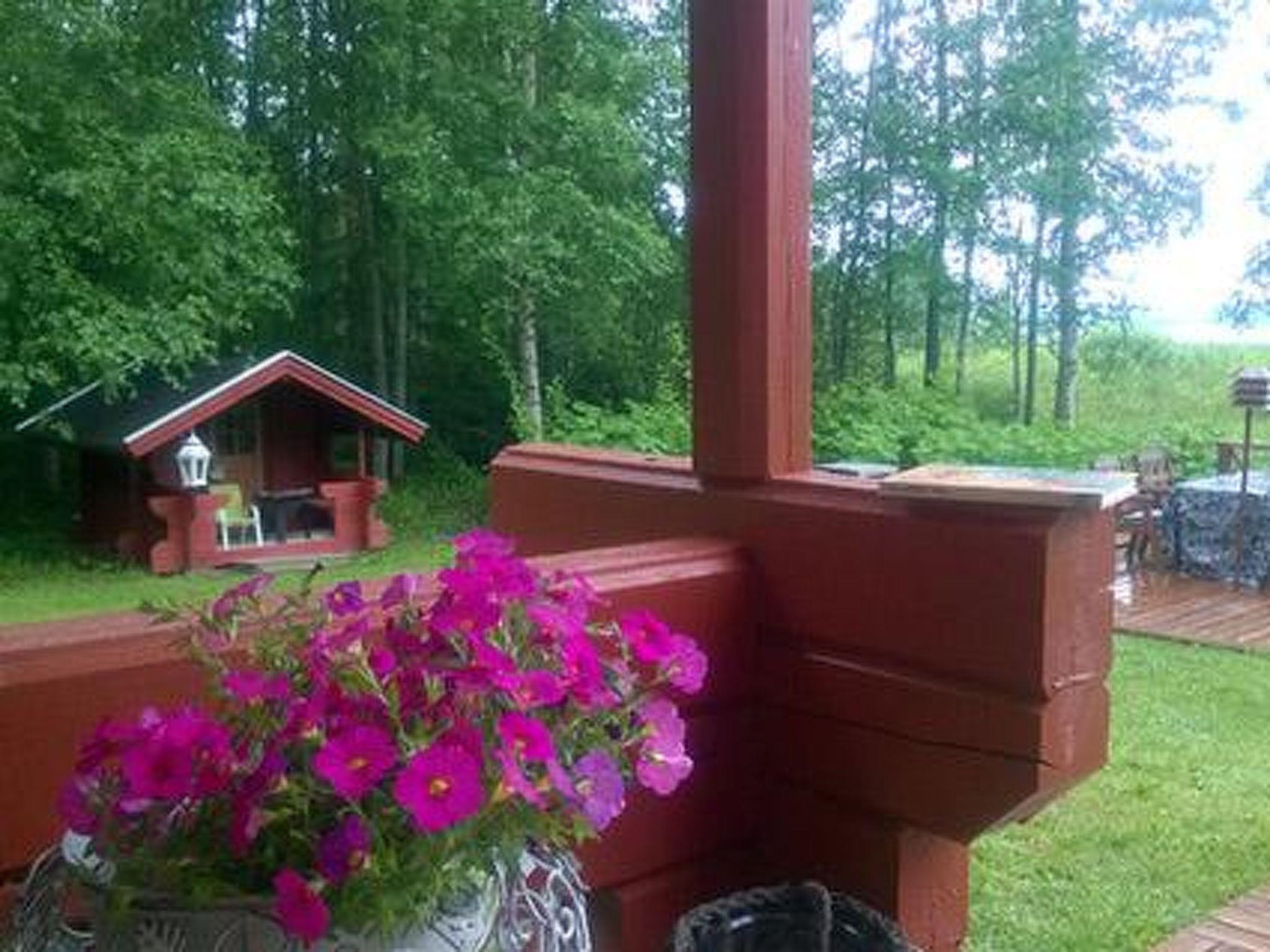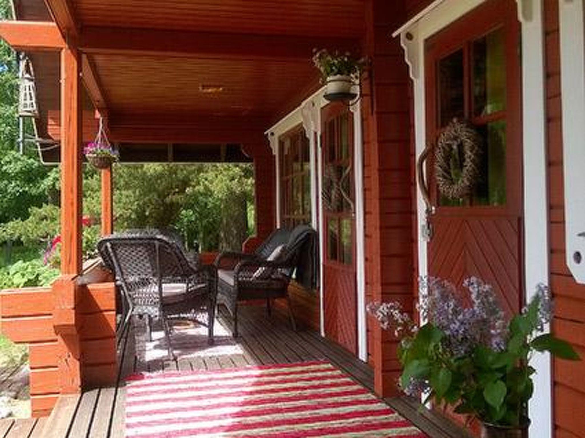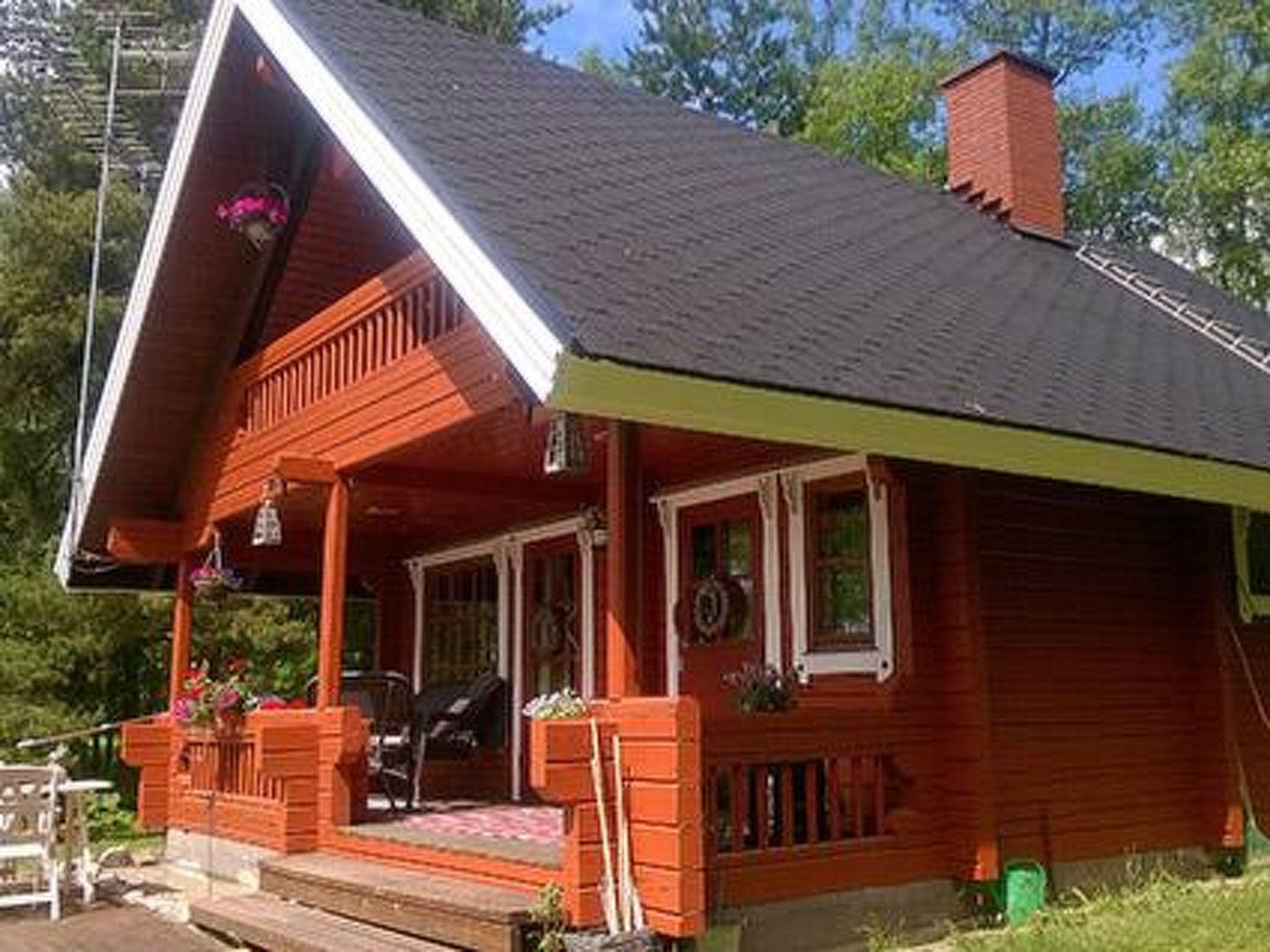Log cabin 1987, living room/kitchen with convertible sofa, loft with double bed + 3 beds, sauna (shower inside sauna), open veranda. Total area 50 m² of which 15 m² on the loft.