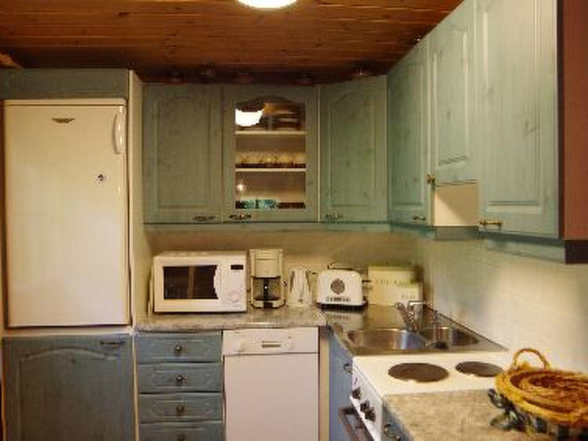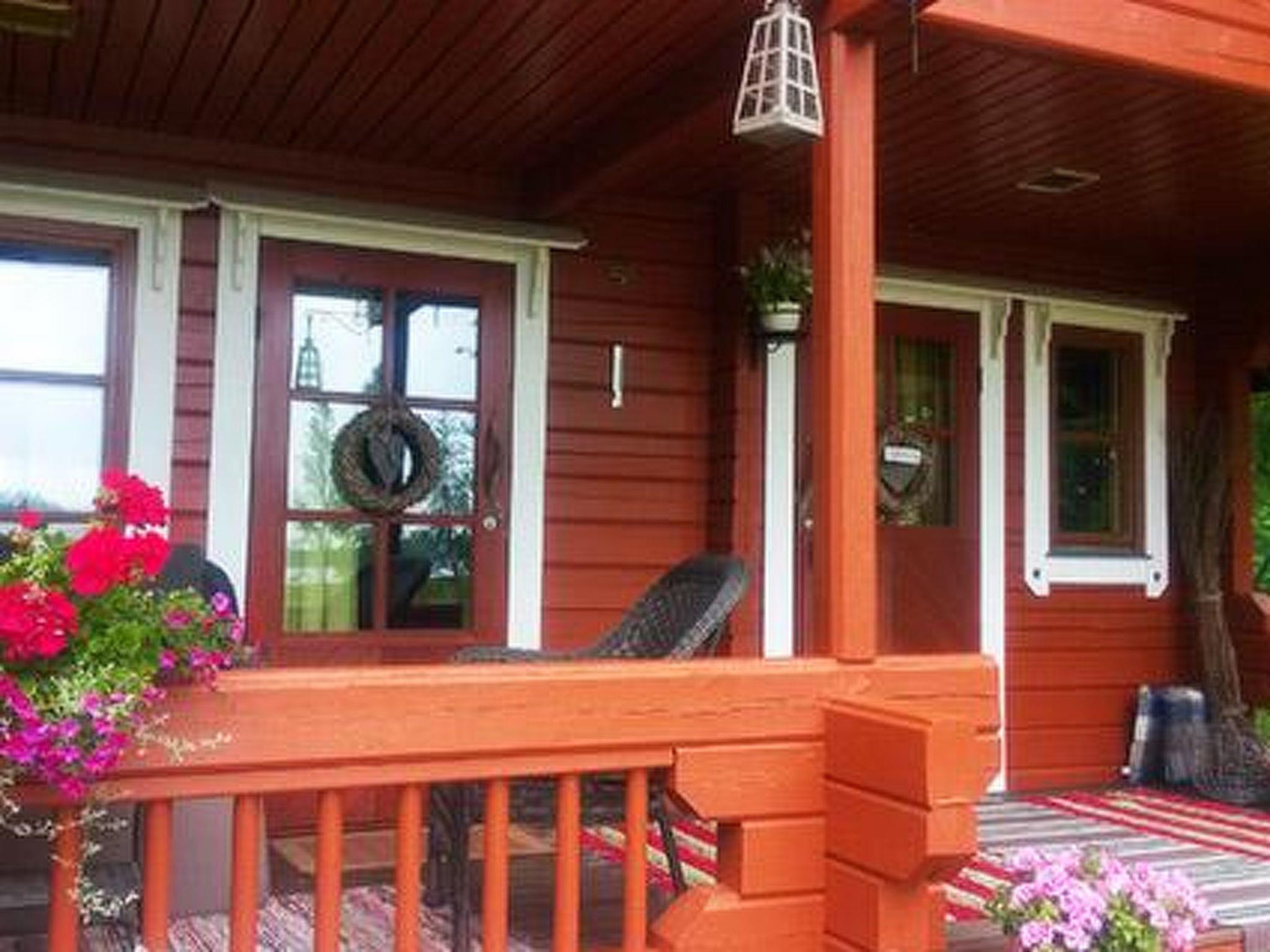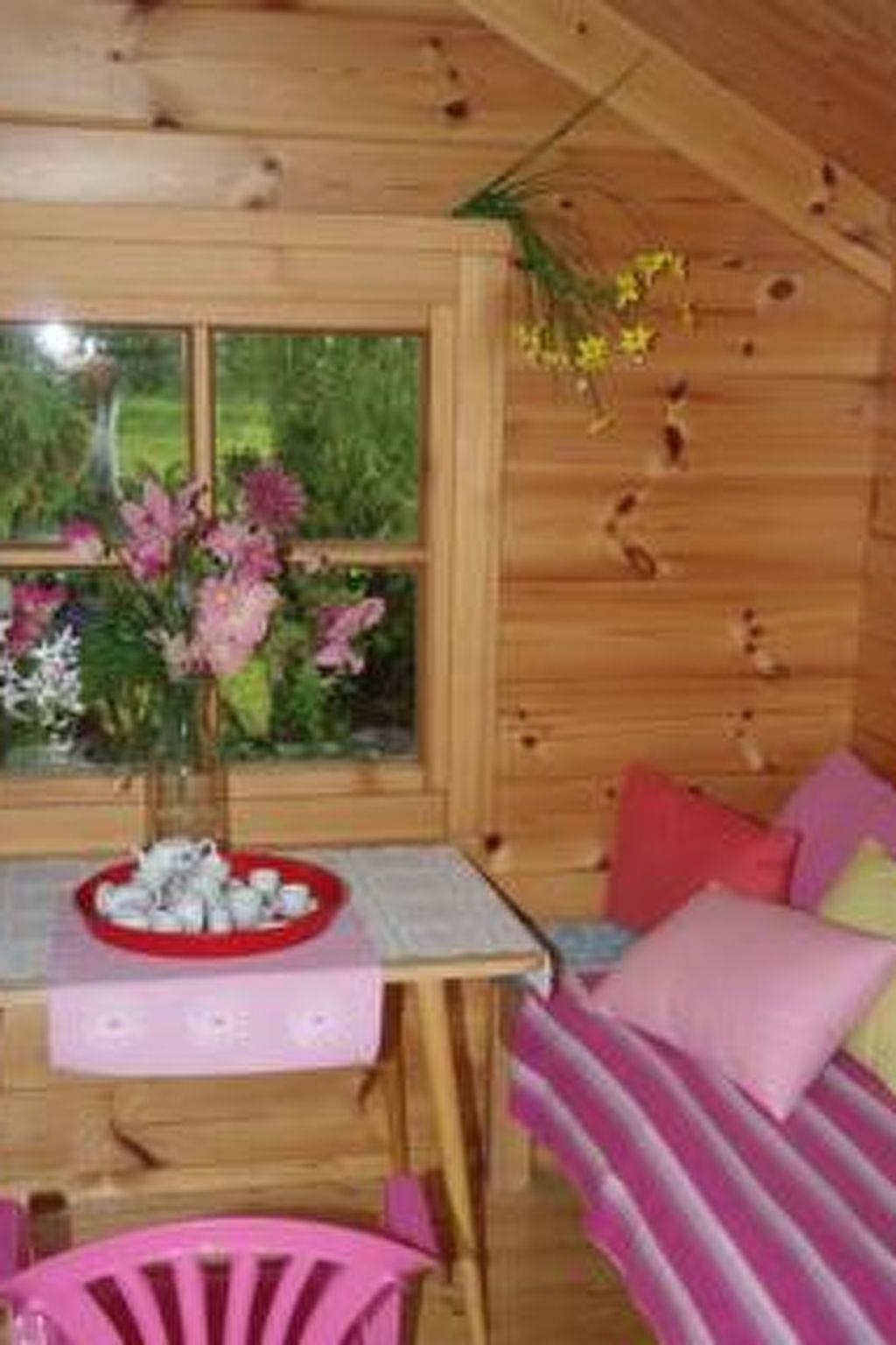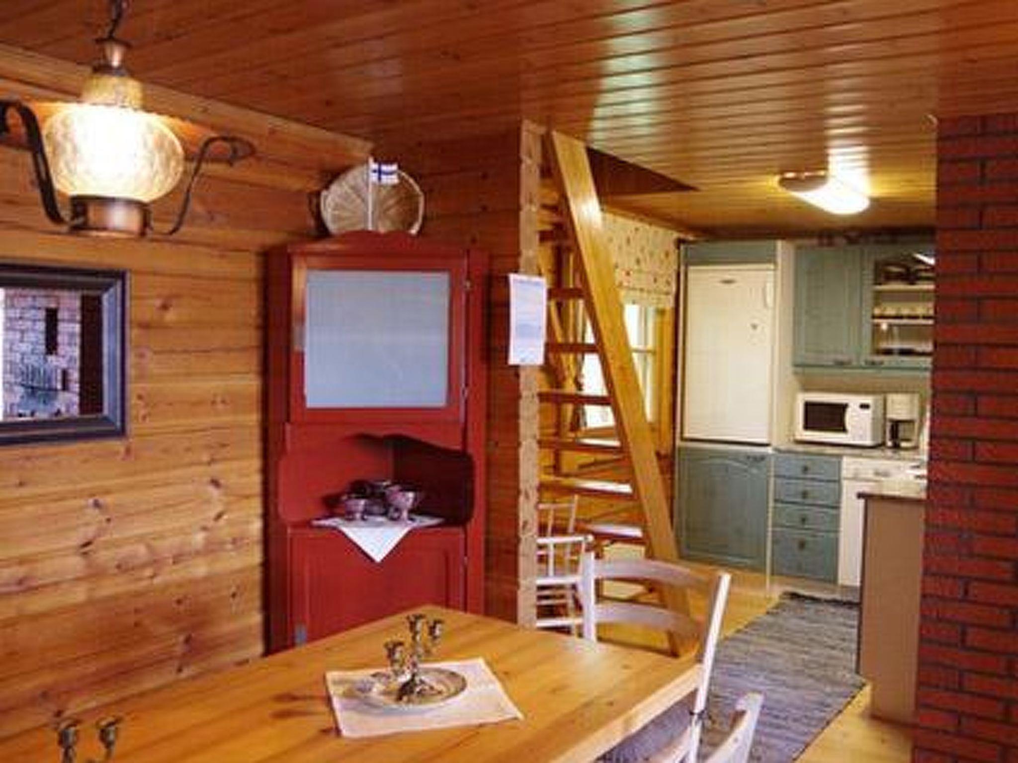 Log cabin 1987, living room/kitchen with convertible sofa, loft with double bed + 3 beds, sauna (shower inside sauna), open veranda. Total area 50 m² of which 15 m² on the loft.