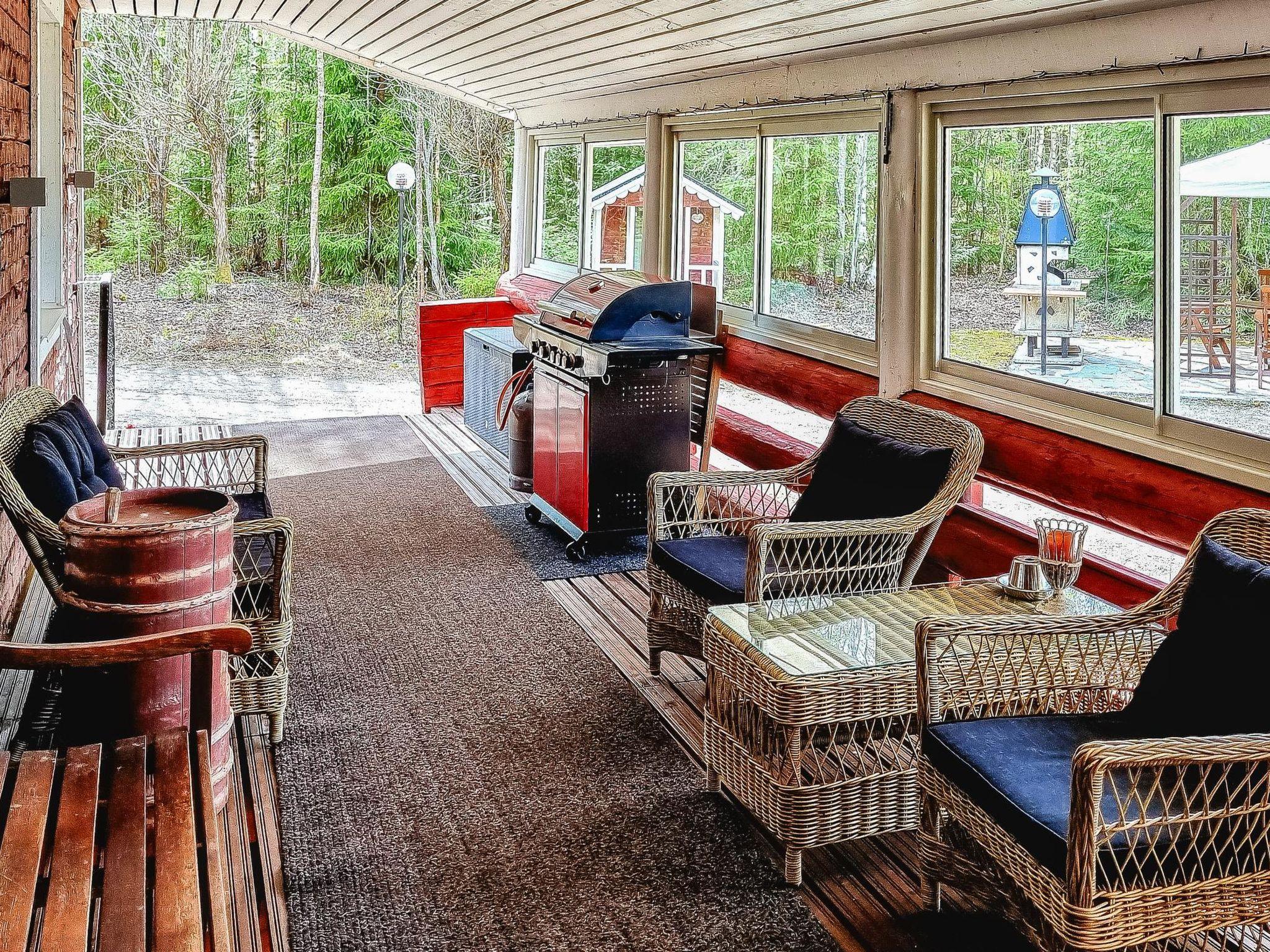 Log cottage 2004, living room/ kitchen 1 sofabed, bedroom double bed (width 140 cm) and single bed, bedroom bunkbed (lower bed 120 cm and upper bed 80 cm wide), washroom, dressing room, sauna (elec. stove). Sauna and toilet renovated totally in 2015. Open porch (35 m²), which is glazed.