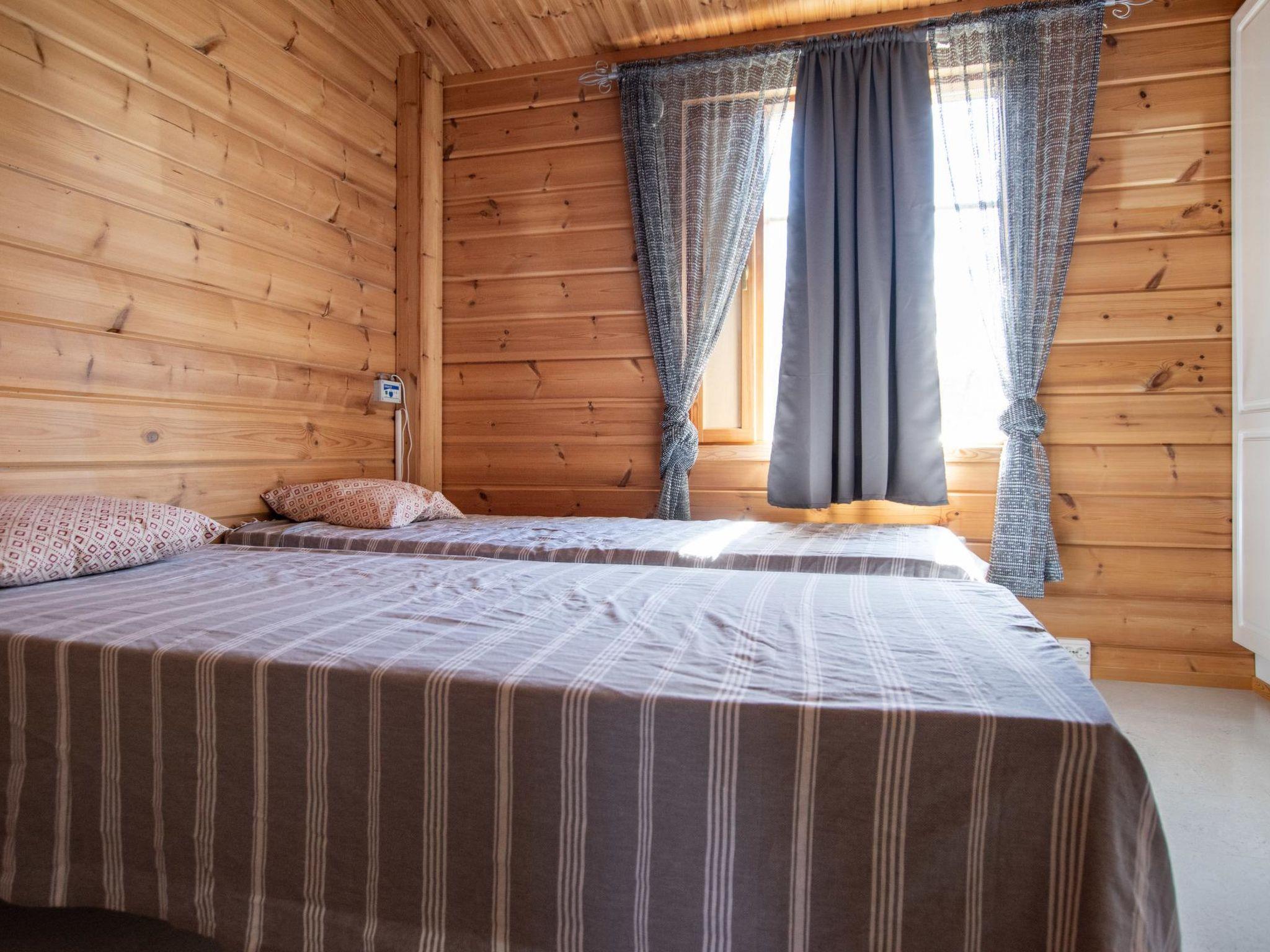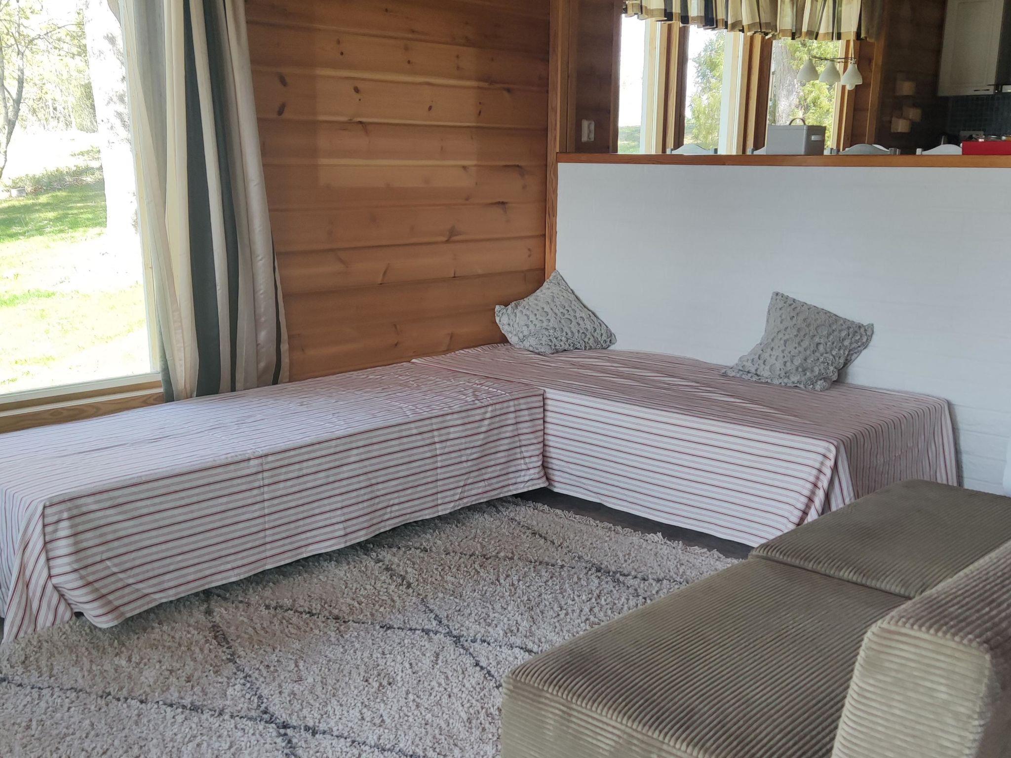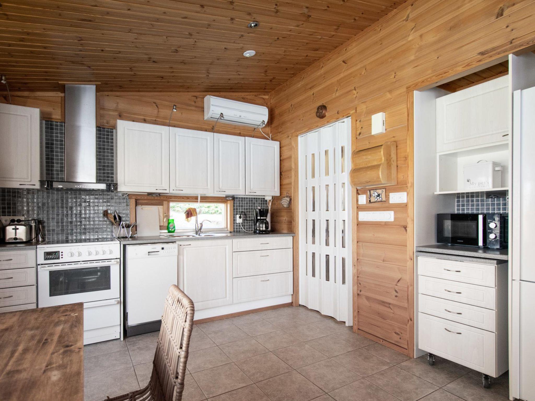 Log-built cabin 2004, well-equipped kitchen, living room (two beds), heat storing fireplace, bedroom 1 with double bed, bedroom 2 with two beds, separate WC, washroom/shower, sauna (immediately ready electric sauna stove), spacious terrace with glazed part.