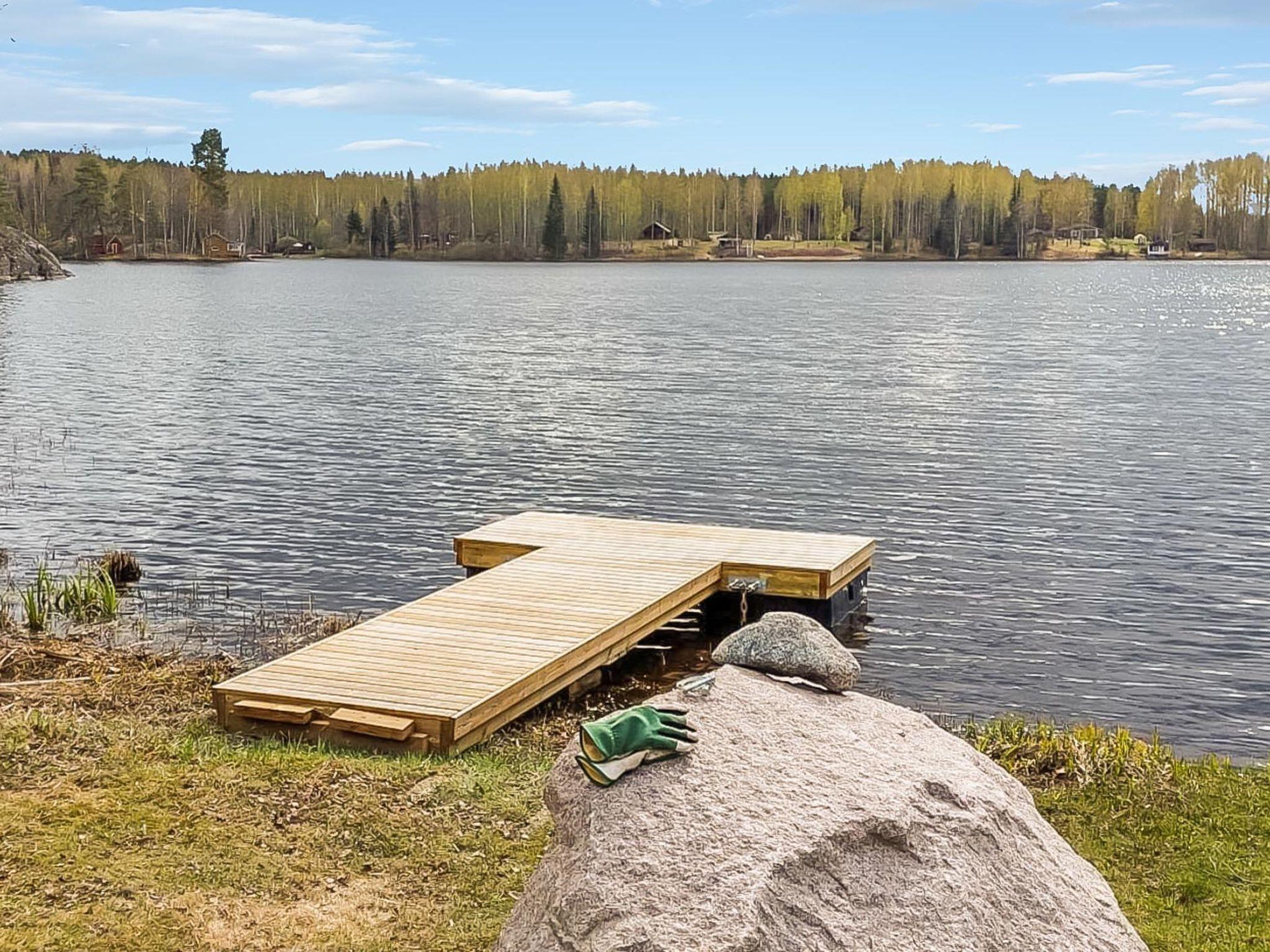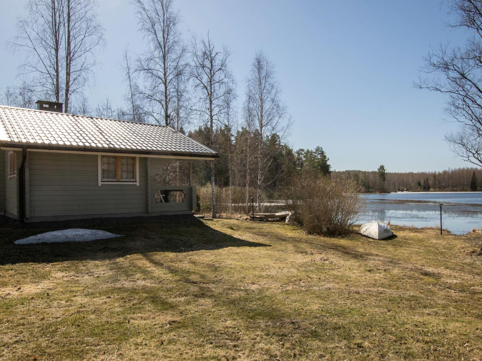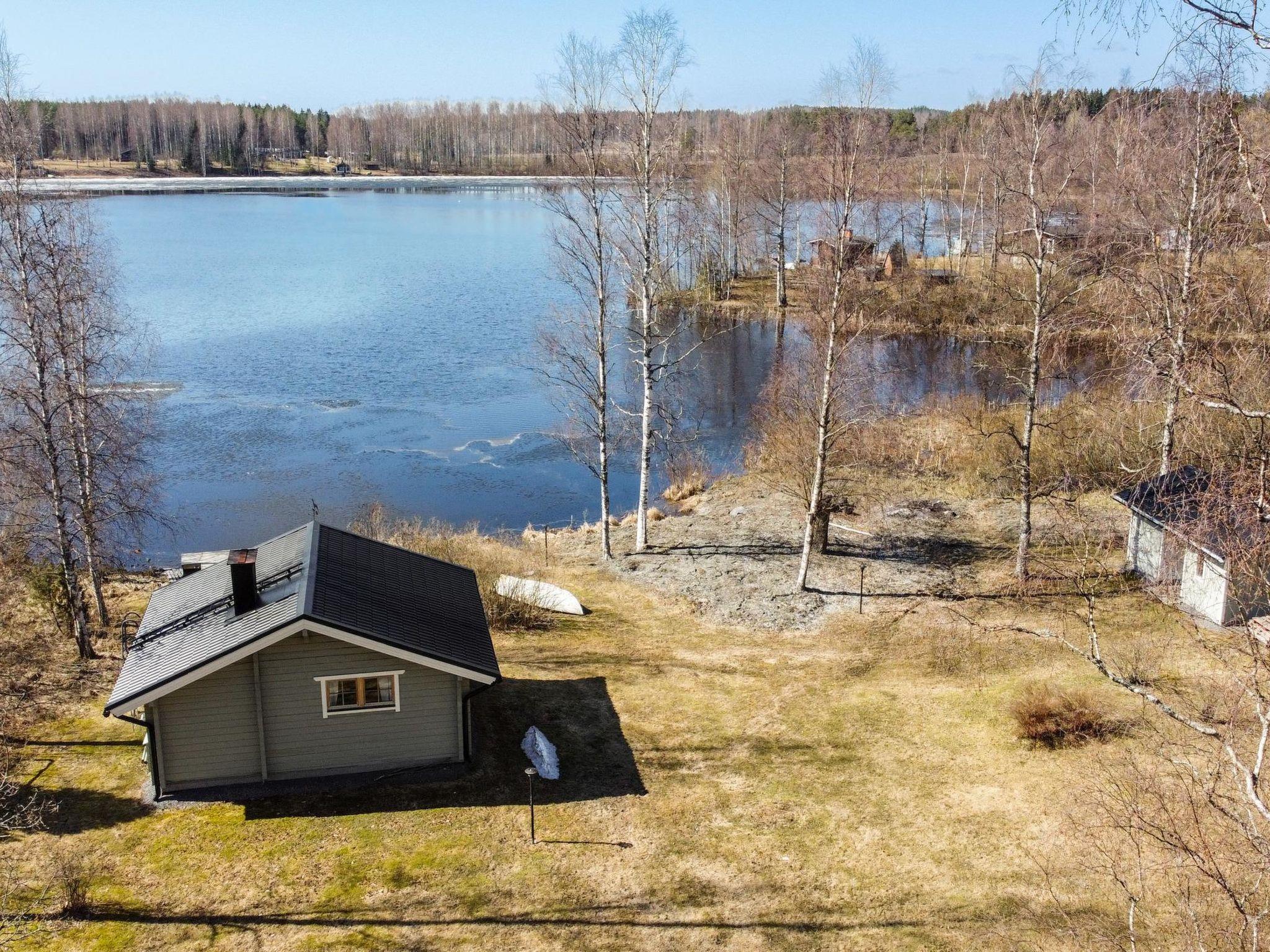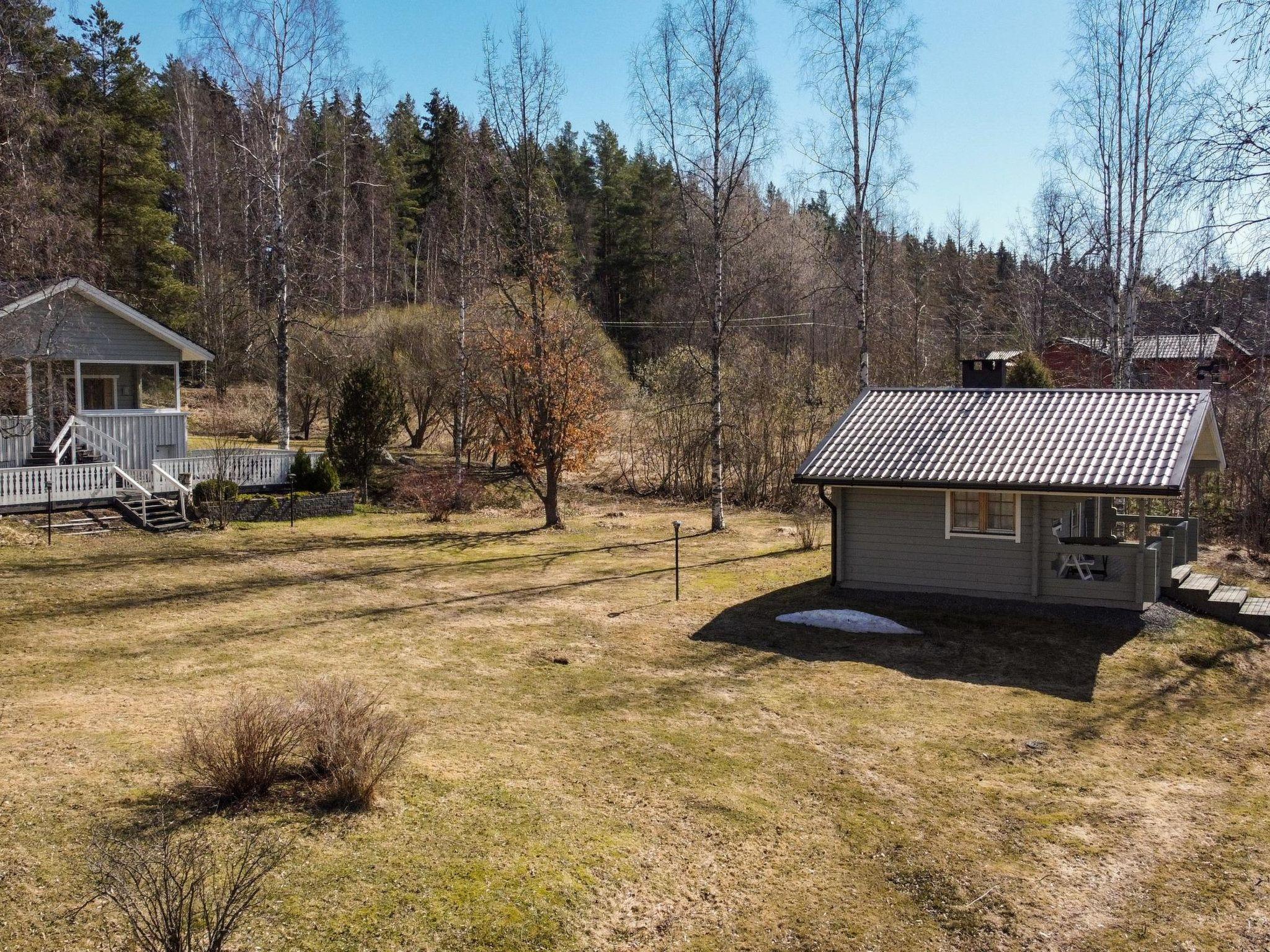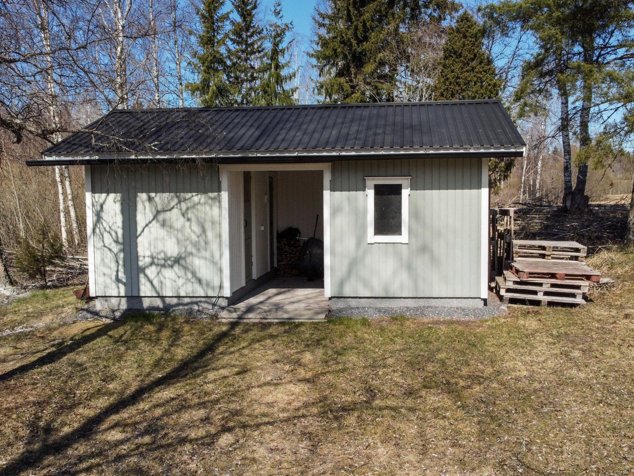 Lakeside sauna with fireplace room, washroom and sauna (wood-burning sauna stove, water pipe in summer use, in winter, water must be carried from the lake or the main cabin). On the beach, separate building with storage space and outdoor toilet. In the yard, there is a carport for two cars and wall outlets for car heating.
