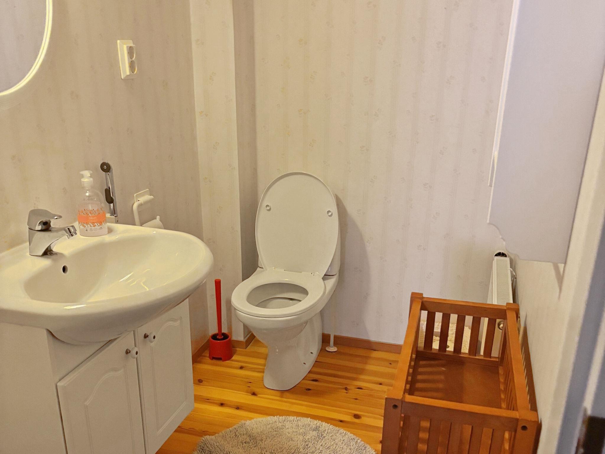 On the ground floor, living room/kitchen, bedroom with 2 beds, conservatory, sauna, wood-burning sauna stove in the sauna, washroom, utility room, large entrance hall and covered terrace.
