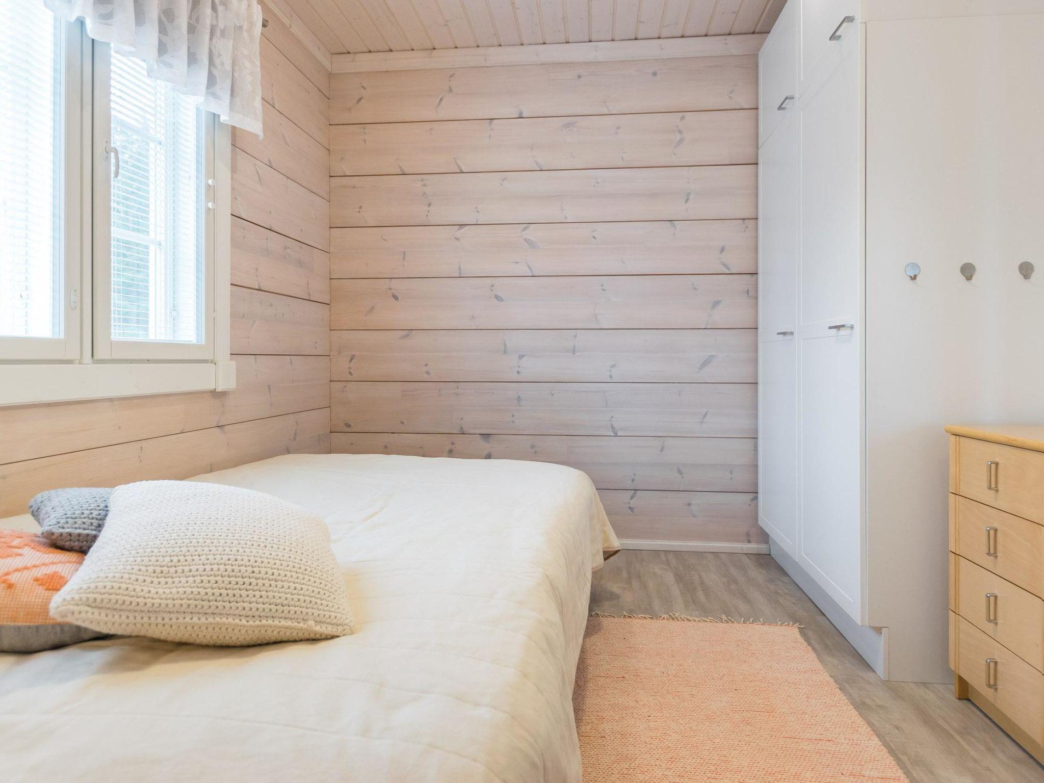 35 km southwest of Tampere, Pyhäjärvi 40 m, deep and hard clay beach. Own pier (the water depth at the end of the pier is 2 m), and rowing boat. Log cabin (2019), kitchen on the living floor, living room with a reserve fireplace, two bedrooms, one with a double bed and the other with a single bed, separate toilet, covered terrace.