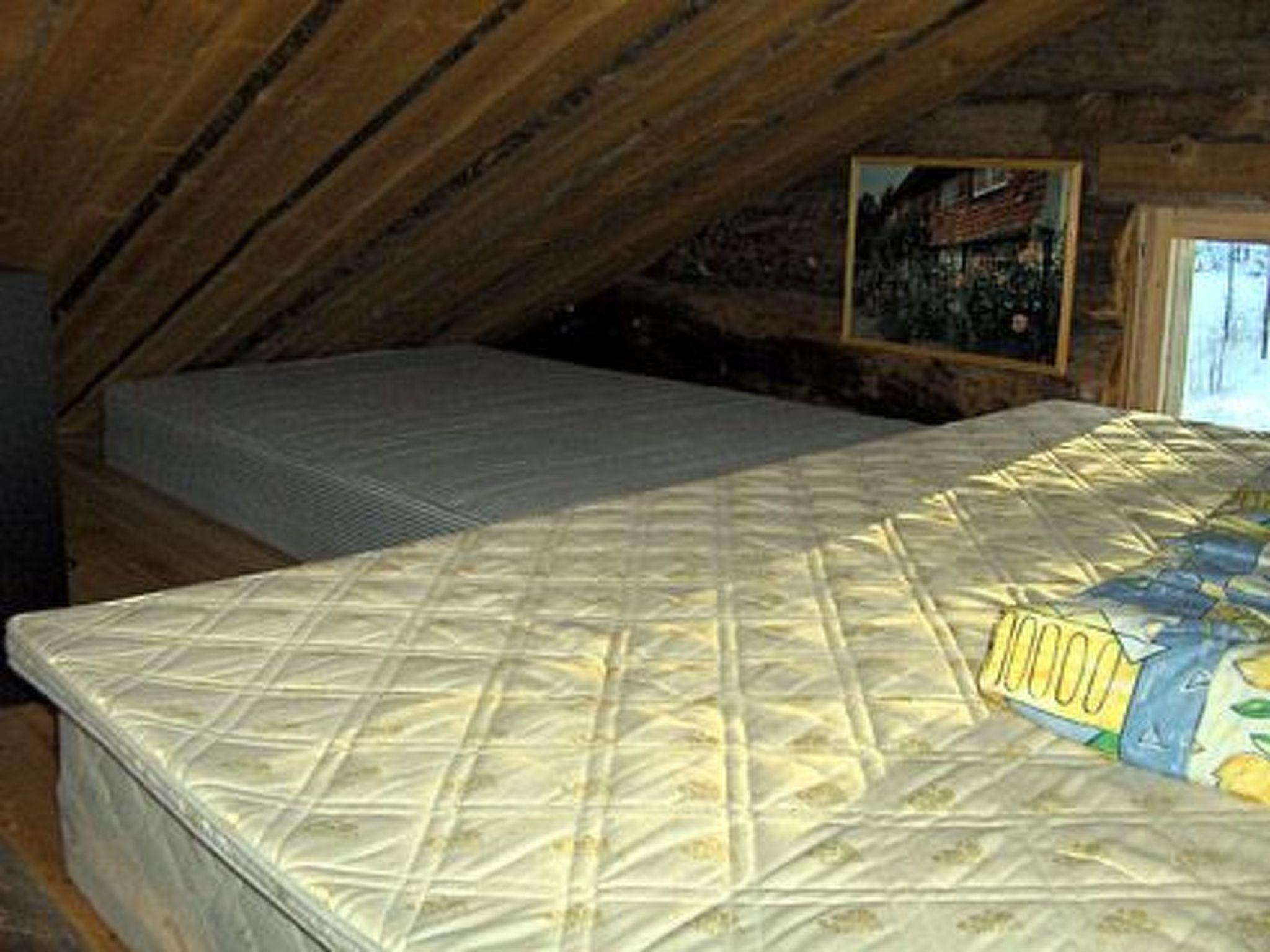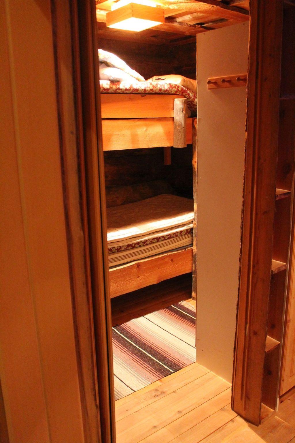The wooden house with reliable electric heating was built in 1989 in a typical rustic and cosy Lapp style. It comprises a main floor and a mezzanine level with a light living and dining room, a fully-equipped small kitchen, two bedrooms and two additional sleeping areas, a bathroom with toilet. The living room provides a comfortable sofa, a wide flatscreen TV and a dining table with chairs. The large, open fireplace built into the wall enhances the cosy atmosphere and exudes pleasant warmth on cooler evenings. Of the bedrooms next to it, one is furnished with a spread double bed (160 x 200cm), the other with a bunk bed (2 x 90 x 190cm). The kitchen is equipped with an electric hob, oven, fridge with freezer compartment, microwave, kettle, toaster and coffee machine. The water has drinking water quality. The bathroom is fitted with a shower , a washbasin with a wall mirror and a toilet. After a long day in nature, you can relax in the wood-fired in-house sauna with ample space for four people. A wide wooden ladder leads up to the mezzanine level and the two additional sleeping areas with two double mattresses (140 x 200cm). Bed linen and towels are provided, but must be ordered in advance and payed in advance, before the arrival to the hut. Plenty of firewood is provided and is included in the rental price.
