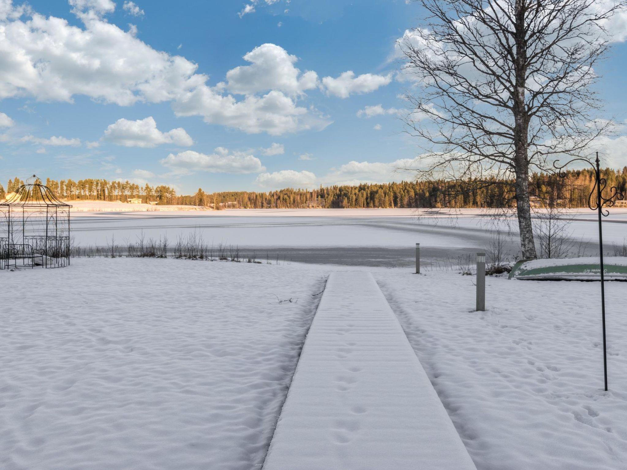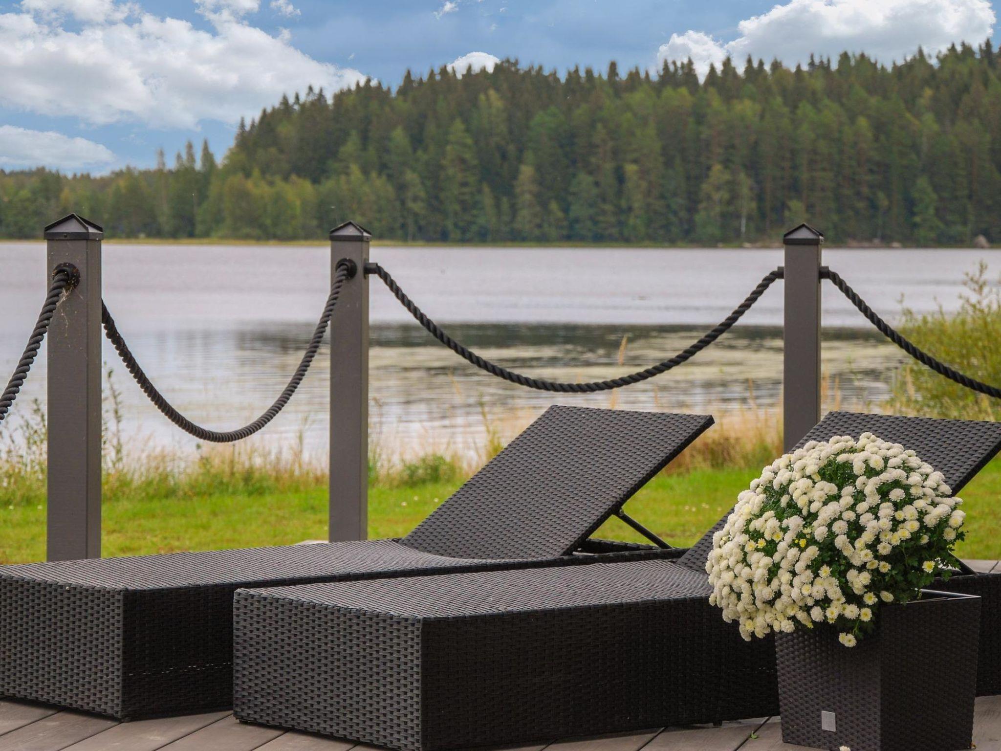 The wood-heated sauna with two lofts provides gentle heat, and the lake is just steps away via a clean, well-maintained wooden path. The hard, gently sloping sandy beach with a dock is only 20 meters from the villa, perfect for swimming.