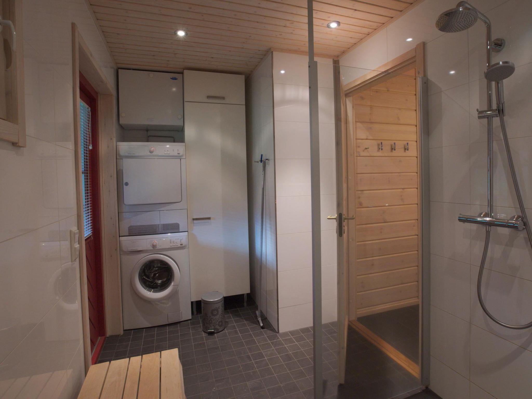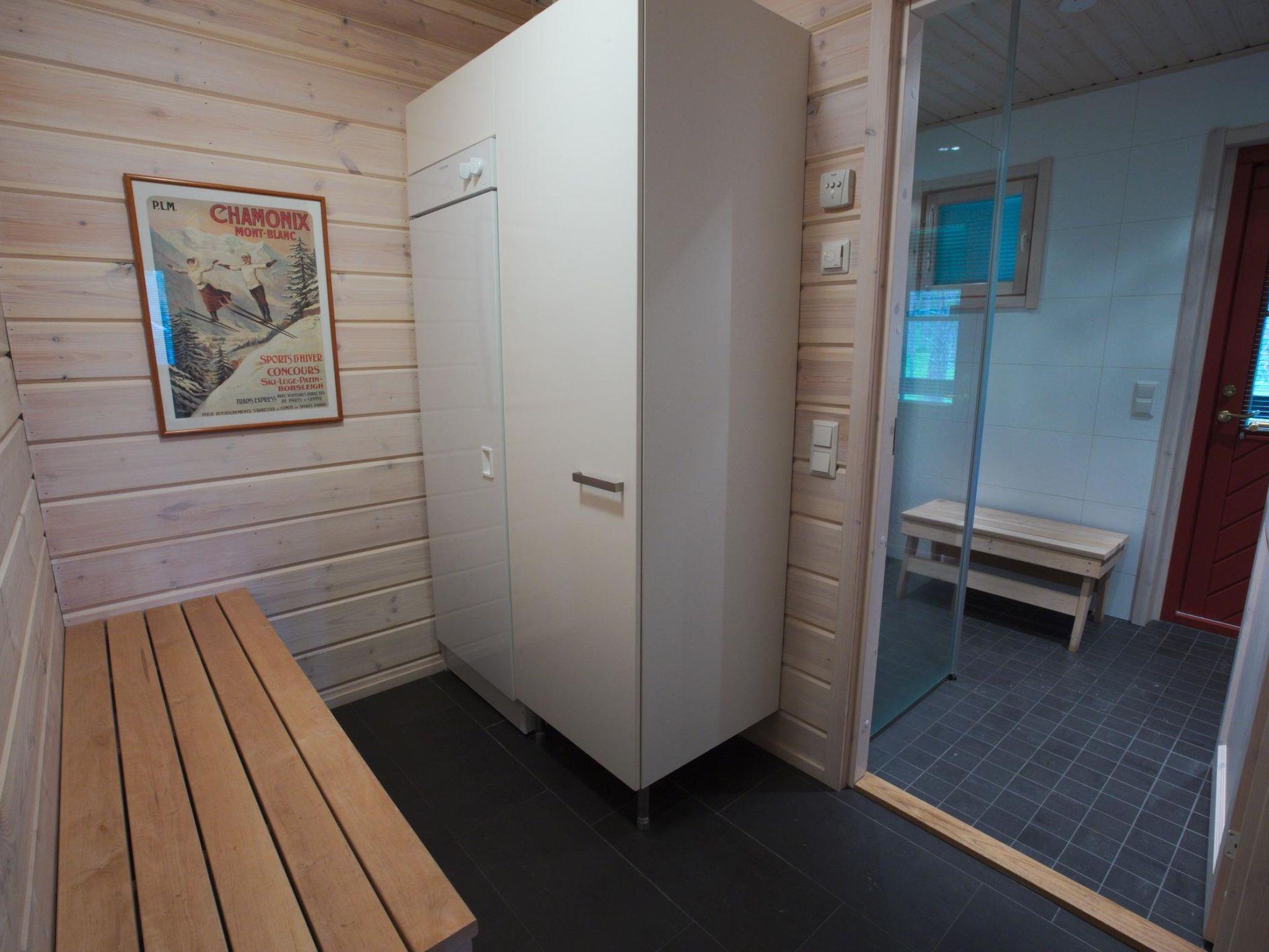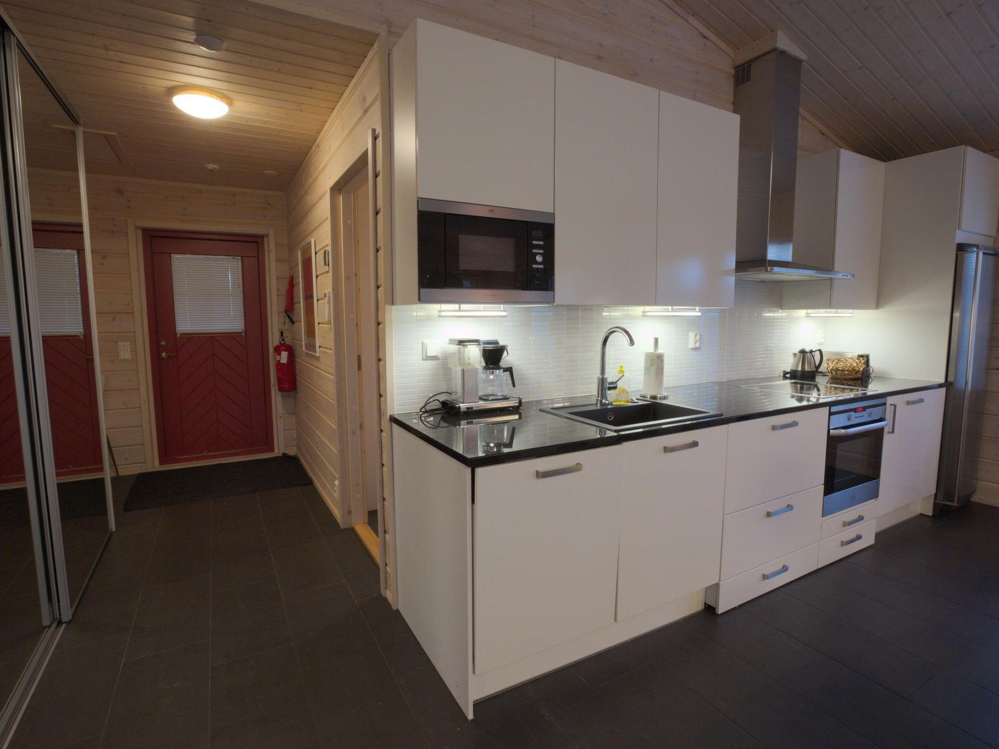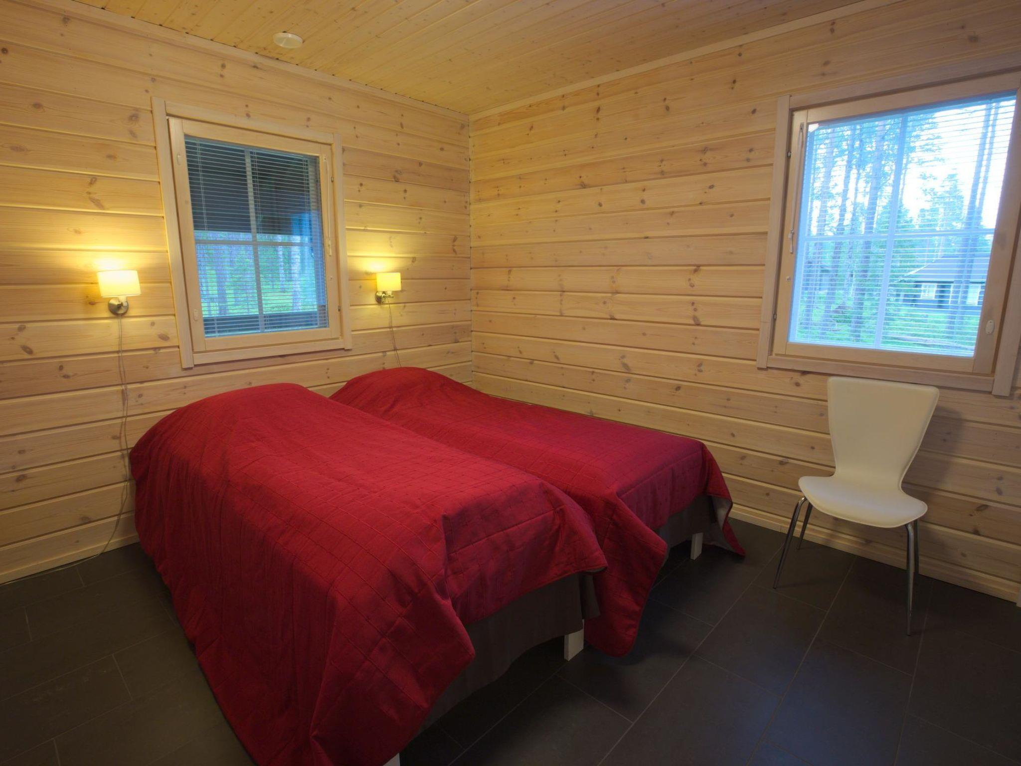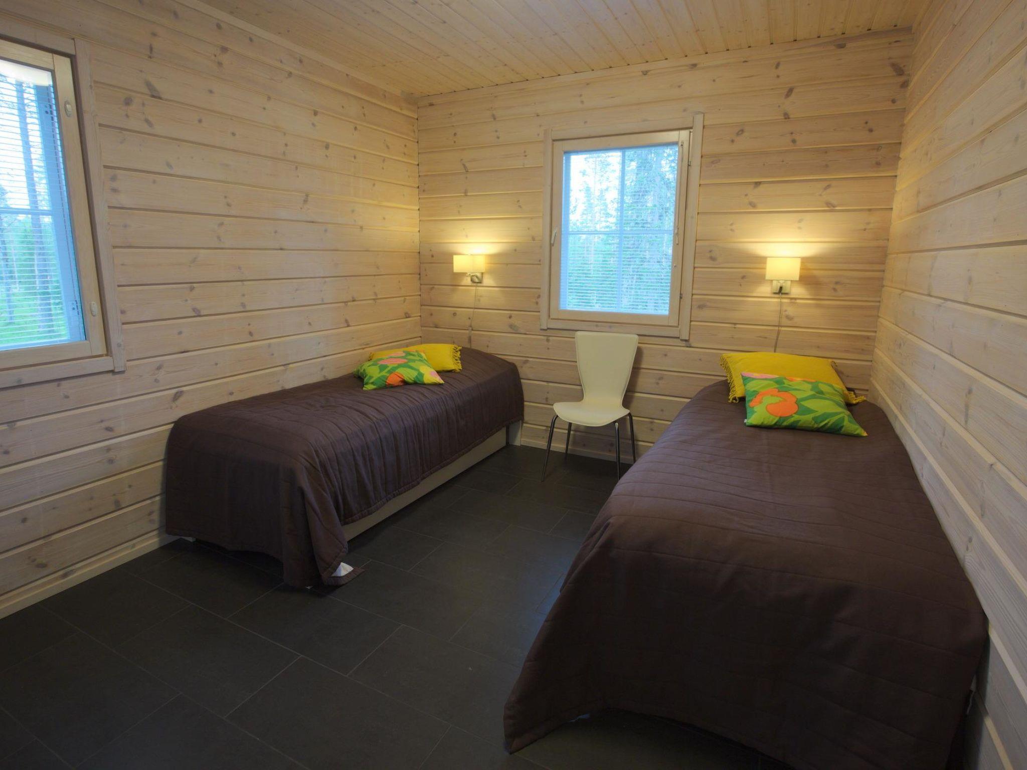 35 km northeast of Kolari, lake Ylläsjärvi approx 3 km, swimming shore approx 4.5 km. A wooden cottage, livingroom/kitchen, 3 bedrooms with 2 separate beds in each room, sauna (electrically heated), 2 showers, washroom, separate wc, ski care room.