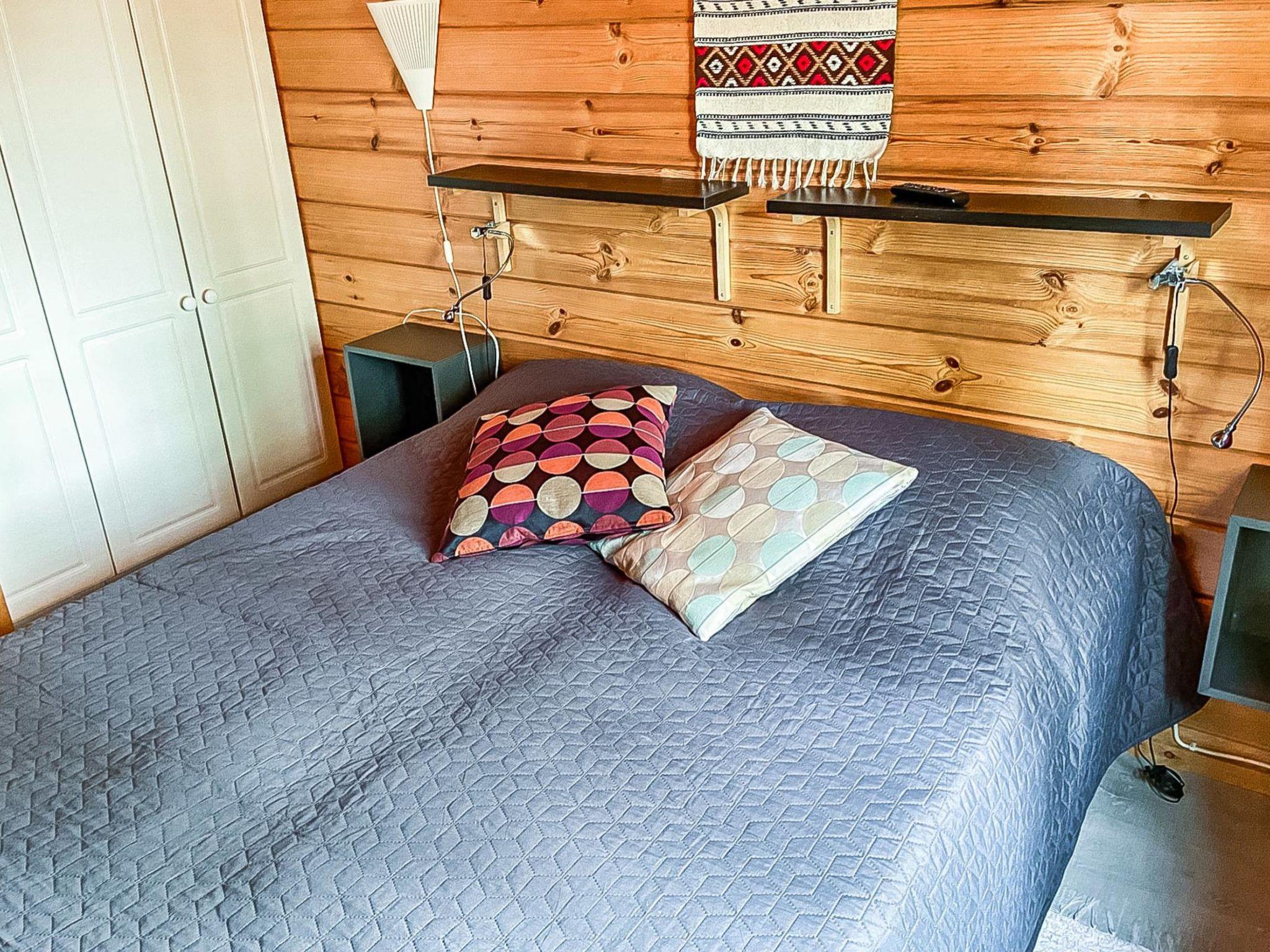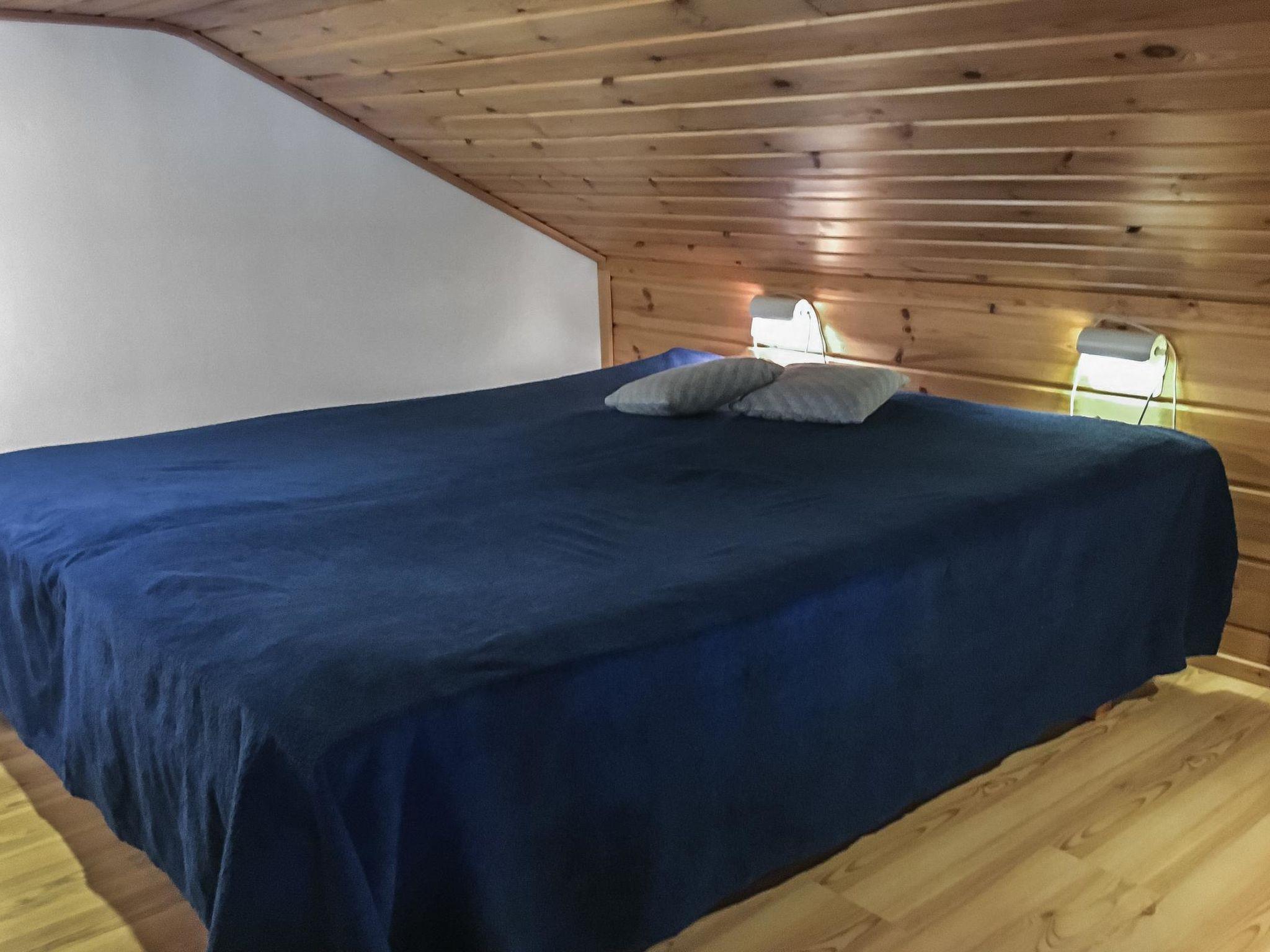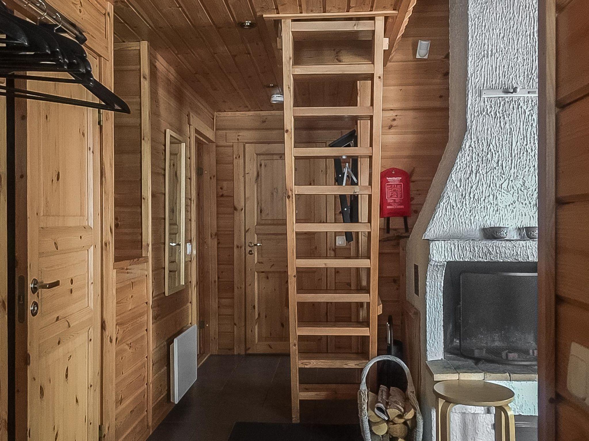 40 km North-East of Kolari, lake Ylläsjärvi 2,5 km, swimming beach 4 km. Log duplex apartment 1988. Livingroom/kitchen, two bedrooms with two beds (can be put together in other), loft (low, 15 m²) with 2 beds (steep stairs). Electric sauna, shower/toilet. Open porch, fridge with freezer locker.