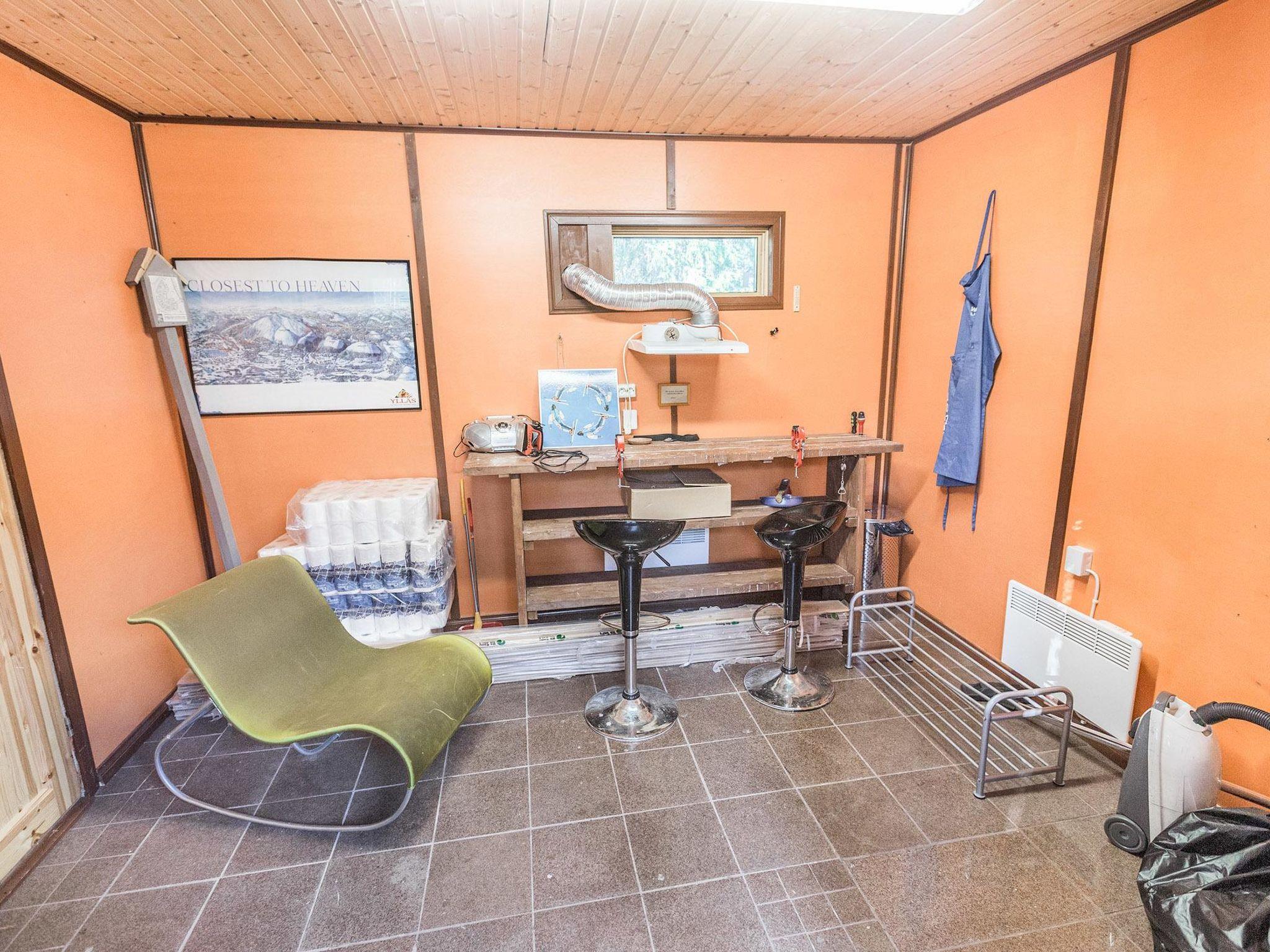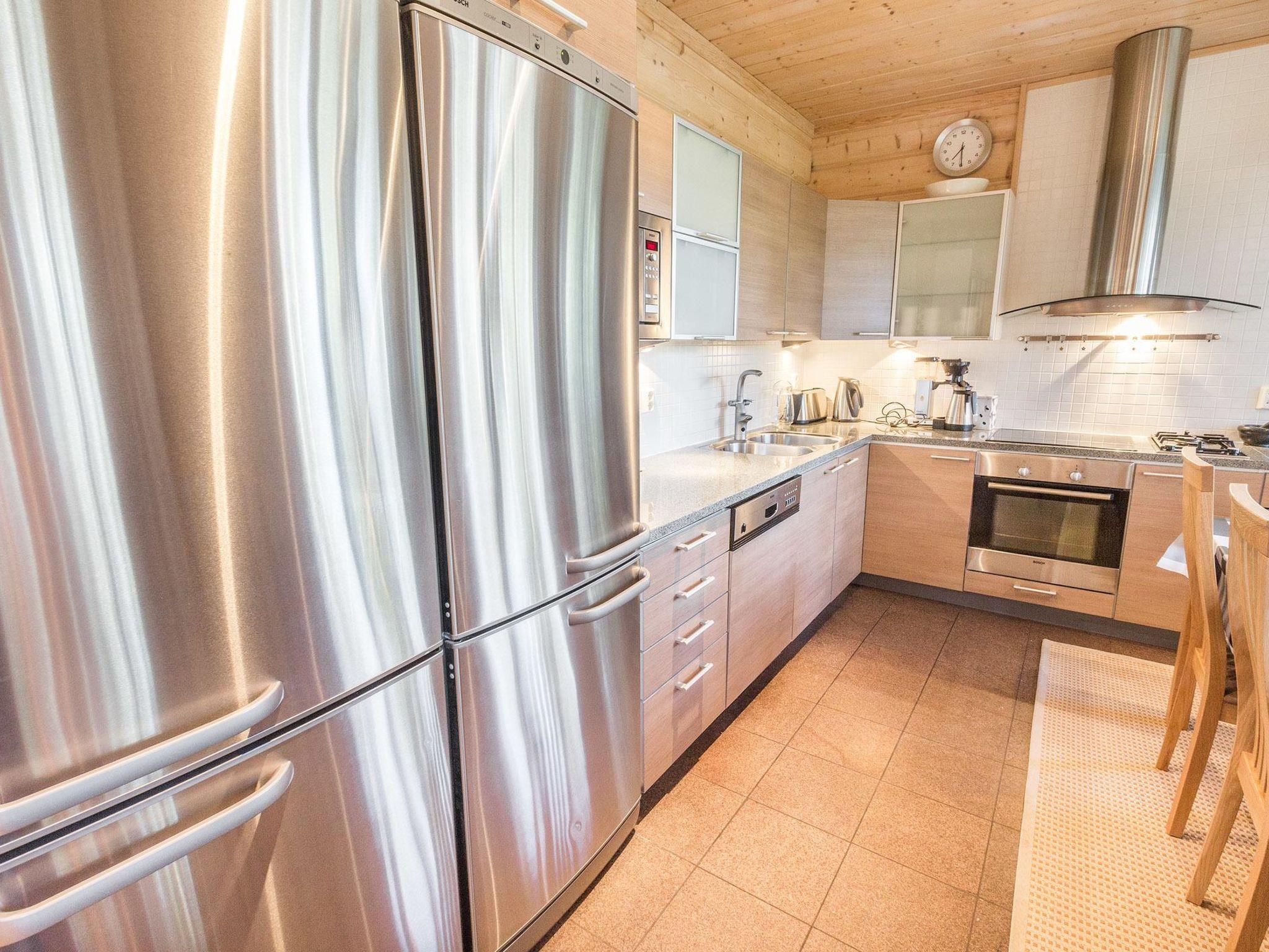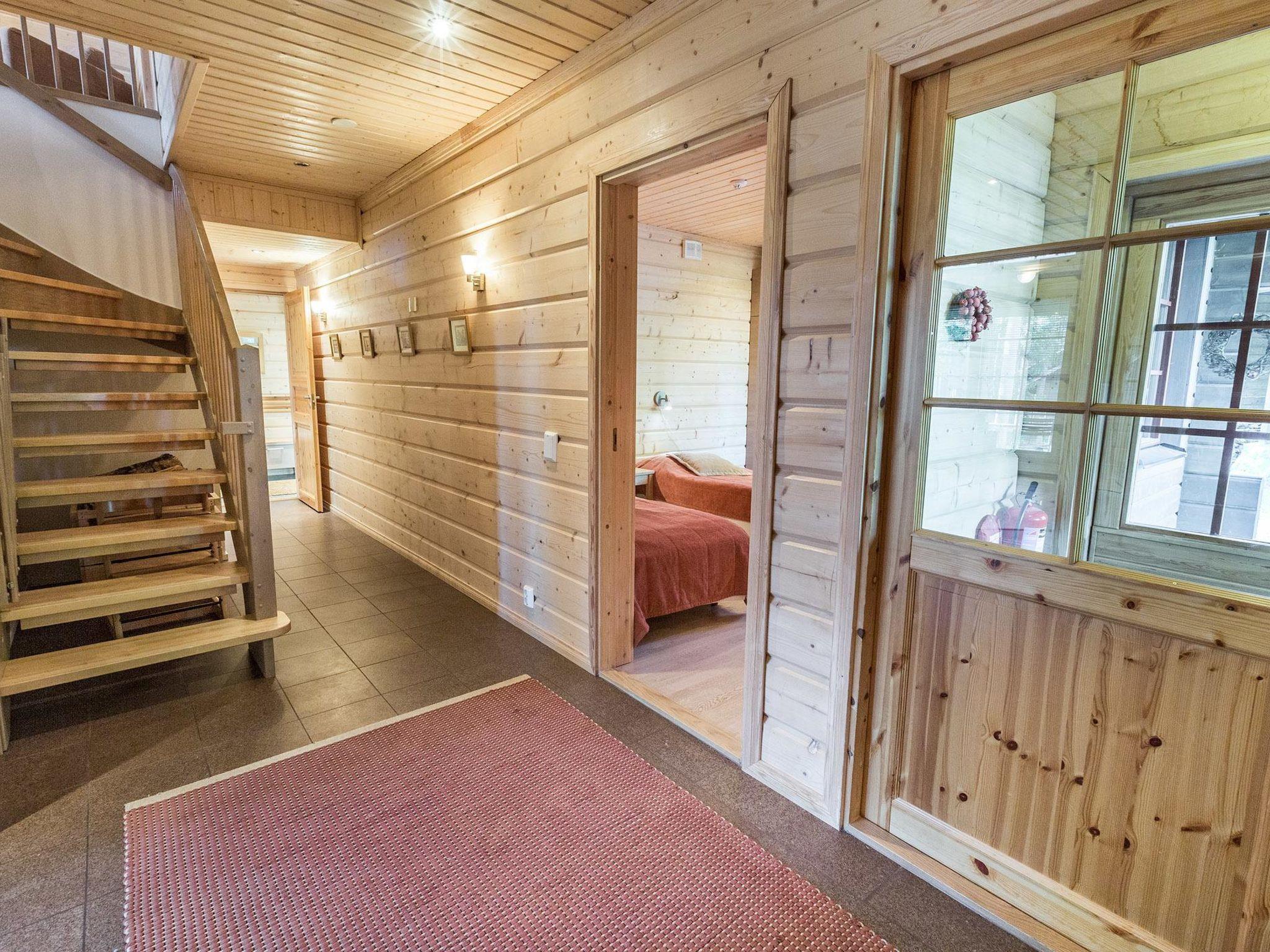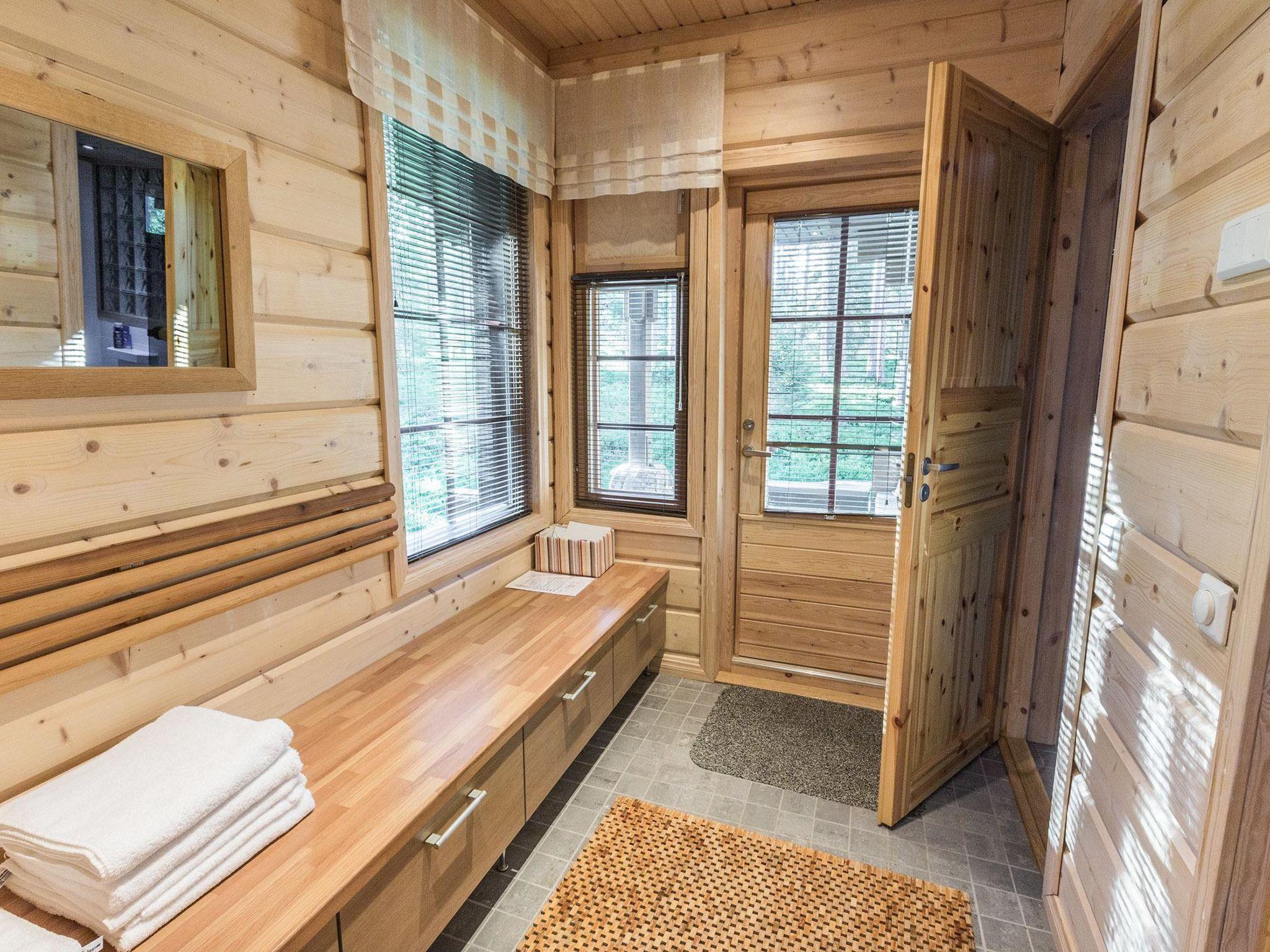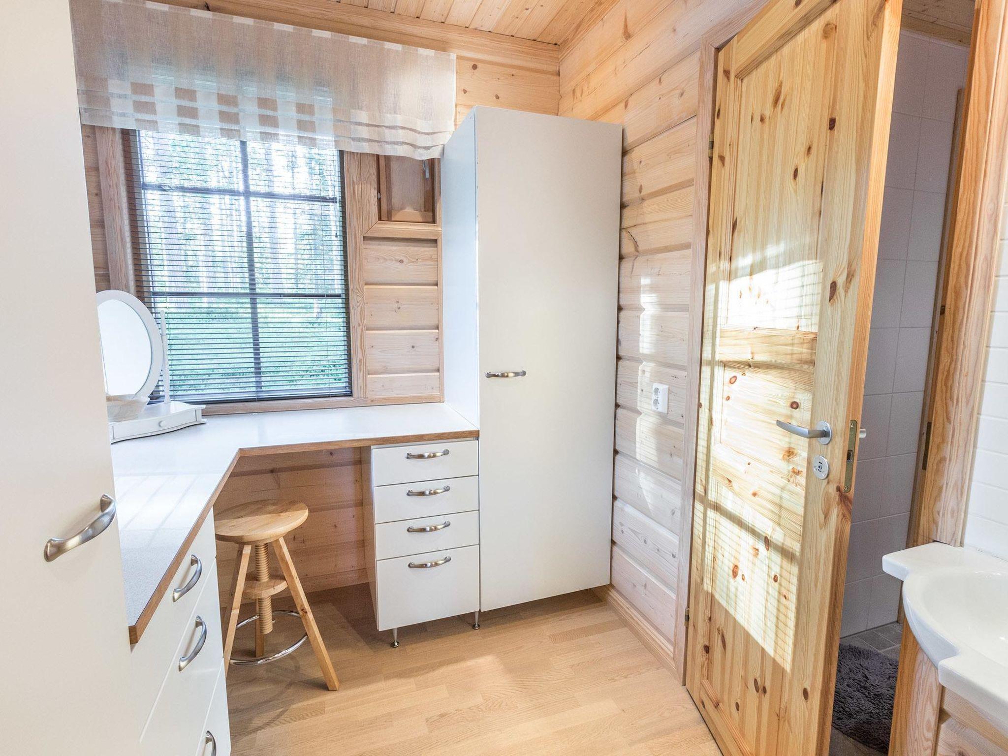 Downstairs: 2 bedrooms (one with a double bed and the other with two separate beds that can be combined), with a separate wardrobe/dressing room in the other. Large living room kitchen. Spacious and high living room, utility room, 2 x toilets. Sauna department: dressing room, bathroom and sauna room (heater ready immediately). 2 outdoor terraces. Fireplace.